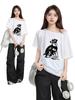 Playera Americana Sexy Blanca de Hombro Inclinado Descubierto de Hombro Manga Corta para Mujer Verano Manga Media Diseño Niche Holgada Adelgazante