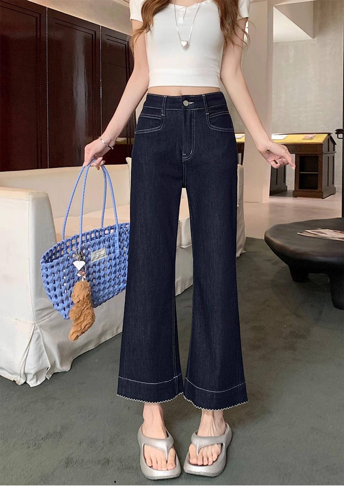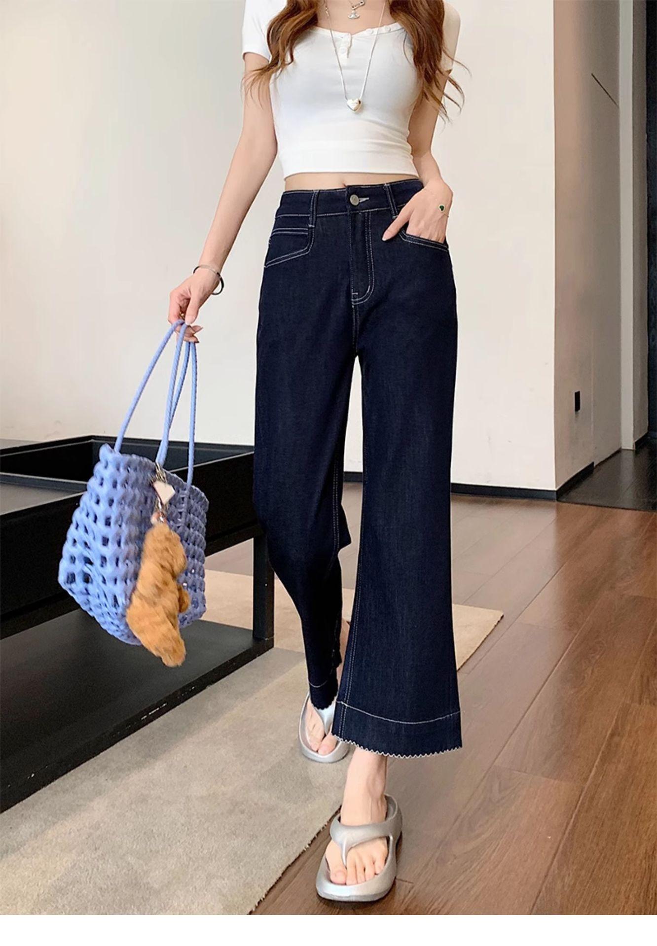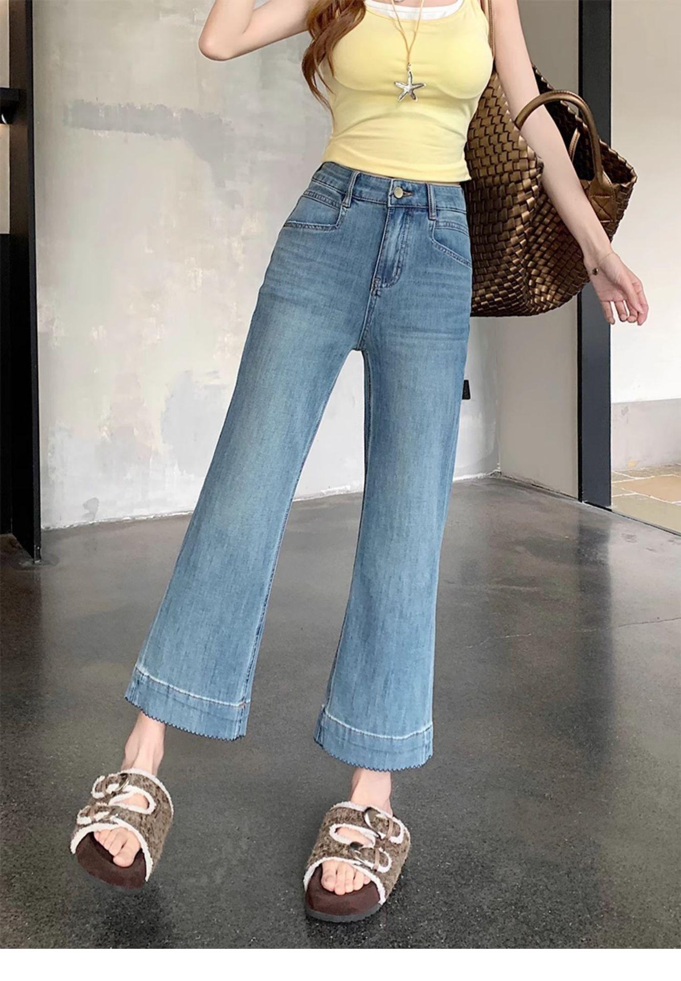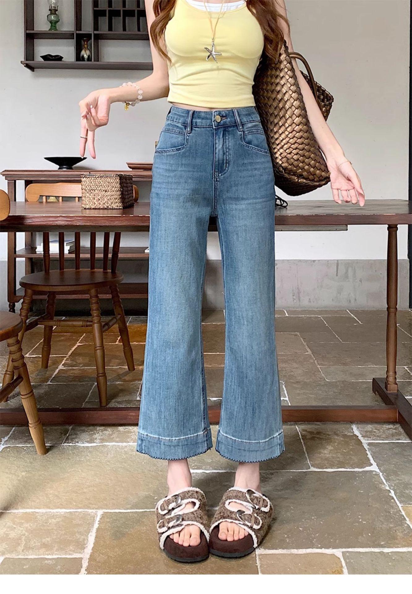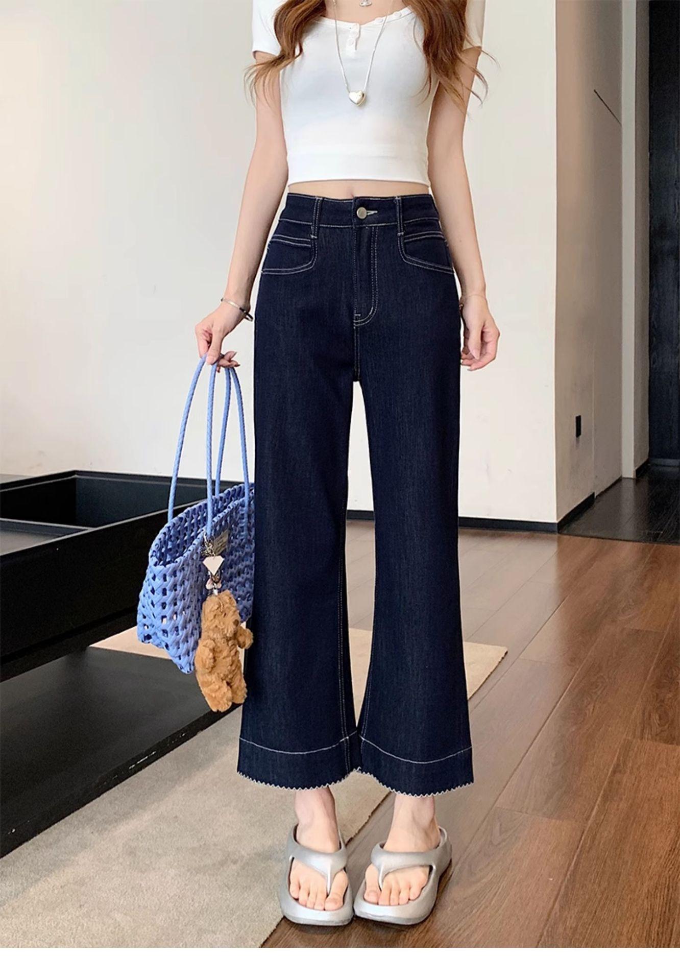 Jeans Retro Elásticos de Talla Grande para Mujer, Estilo Delgado de Verano, Pantalones Recortados Acampanados de Pierna Recta Adelgazantes de Cintura Alta Sueltos para Mujeres Curvilíneas