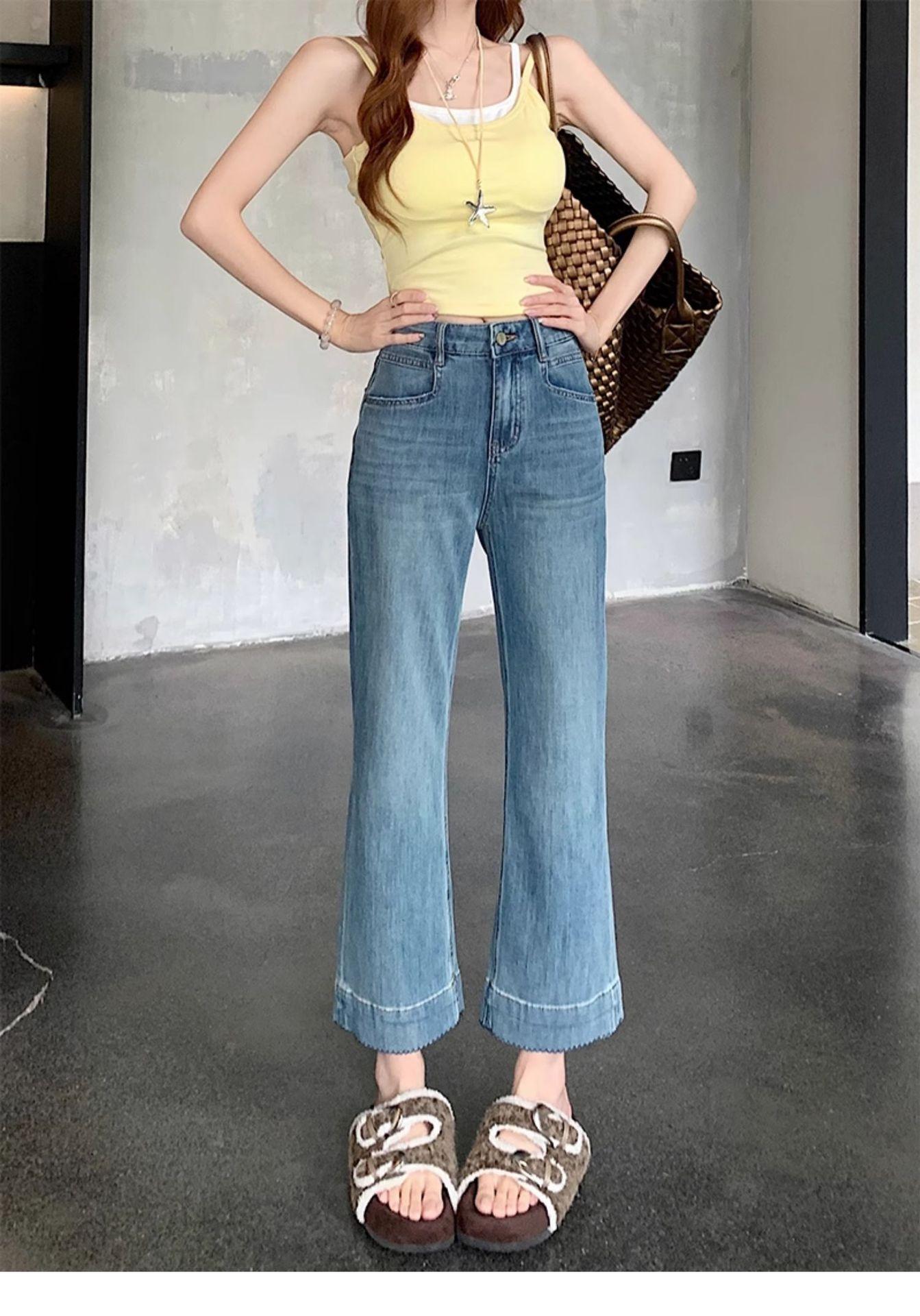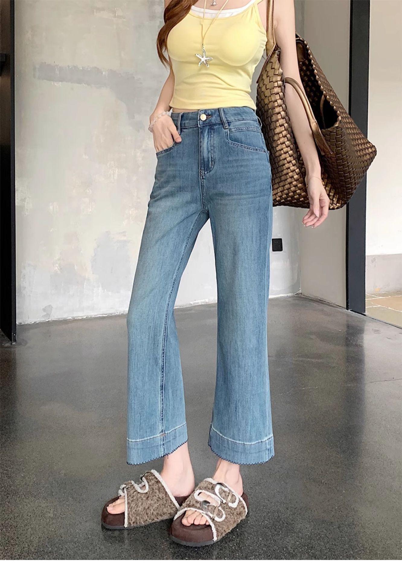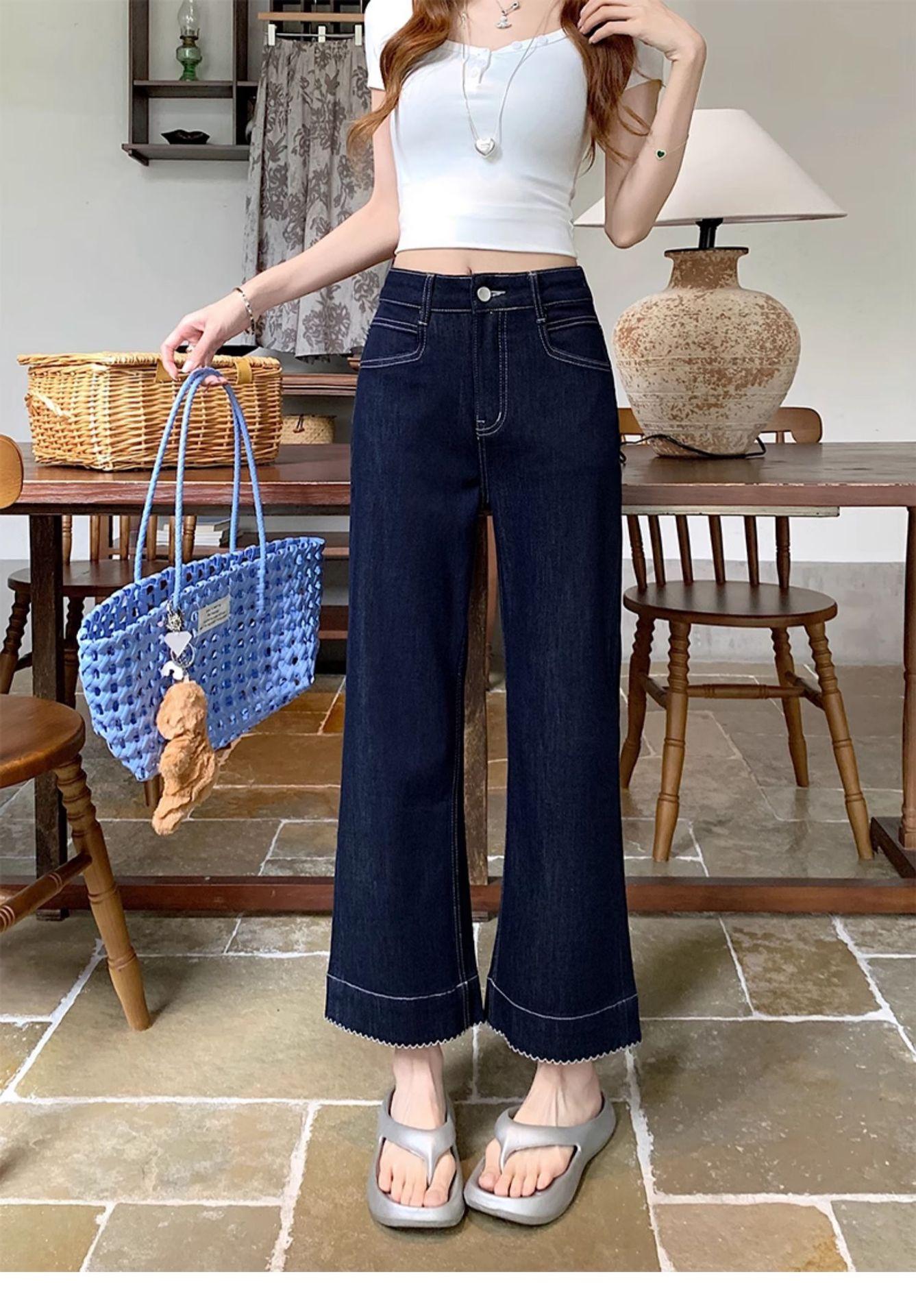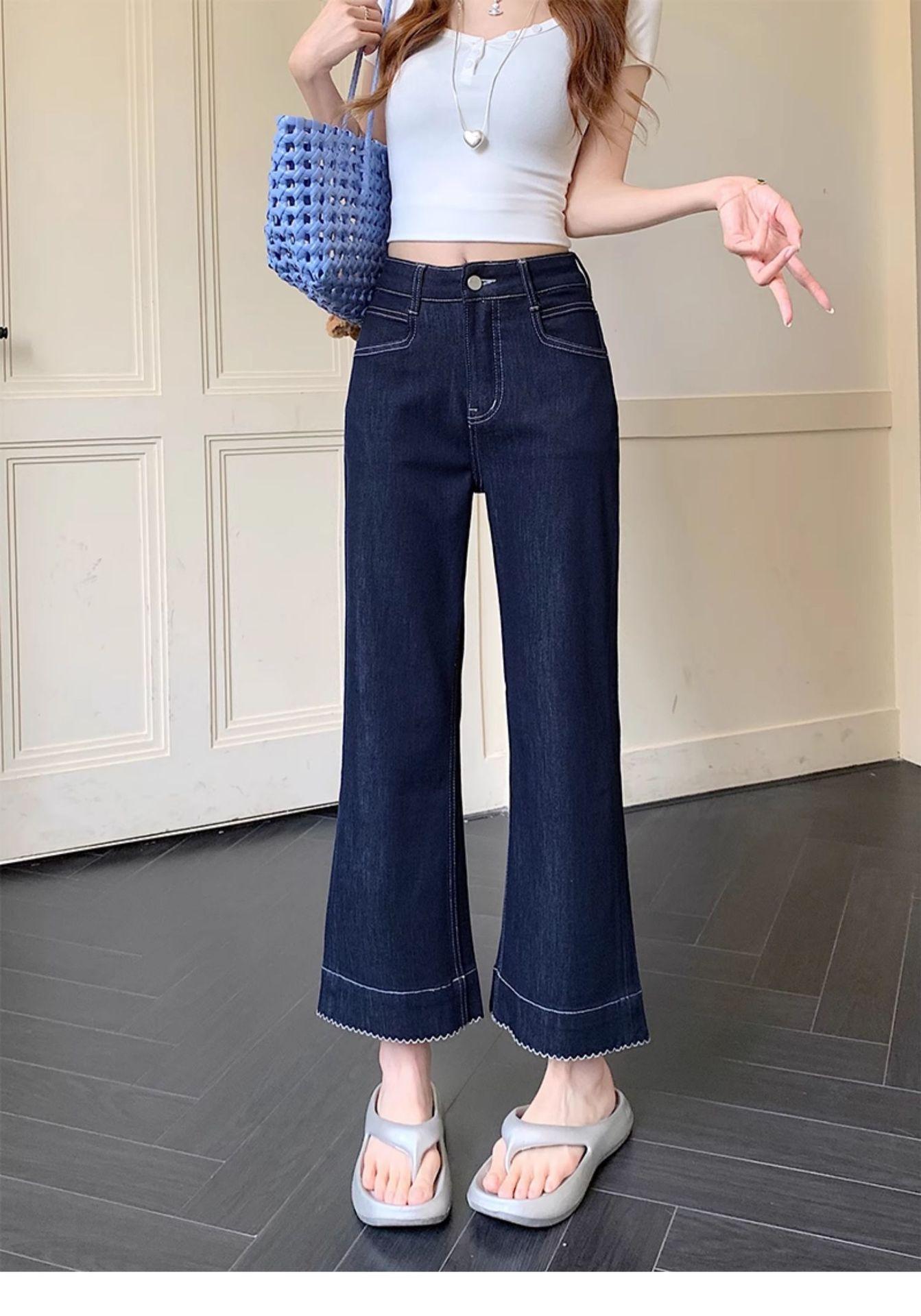 Jeans Retro Elásticos de Talla Grande para Mujer, Estilo Delgado de Verano, Pantalones Recortados Acampanados de Pierna Recta Adelgazantes de Cintura Alta Sueltos para Mujeres Curvilíneas