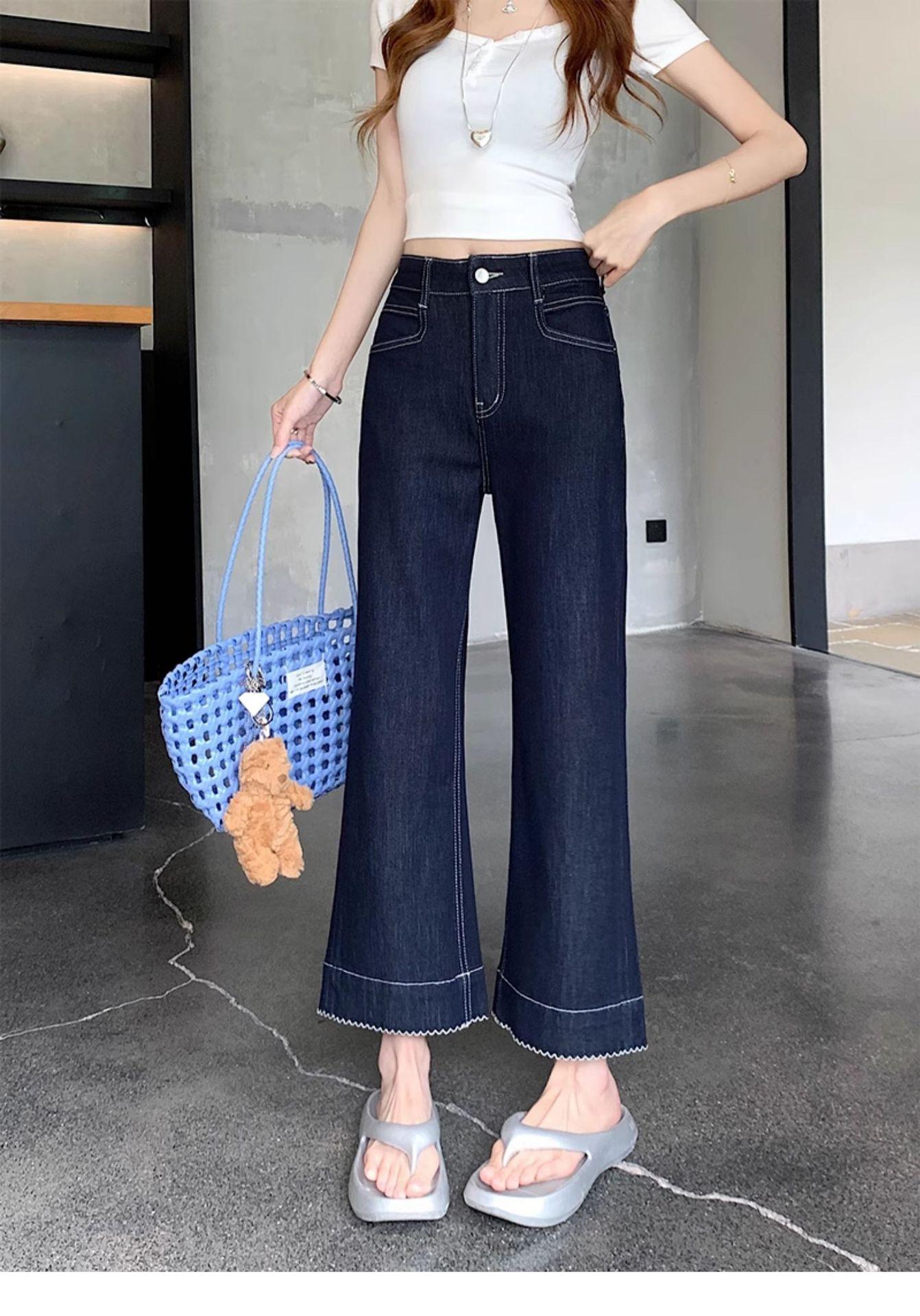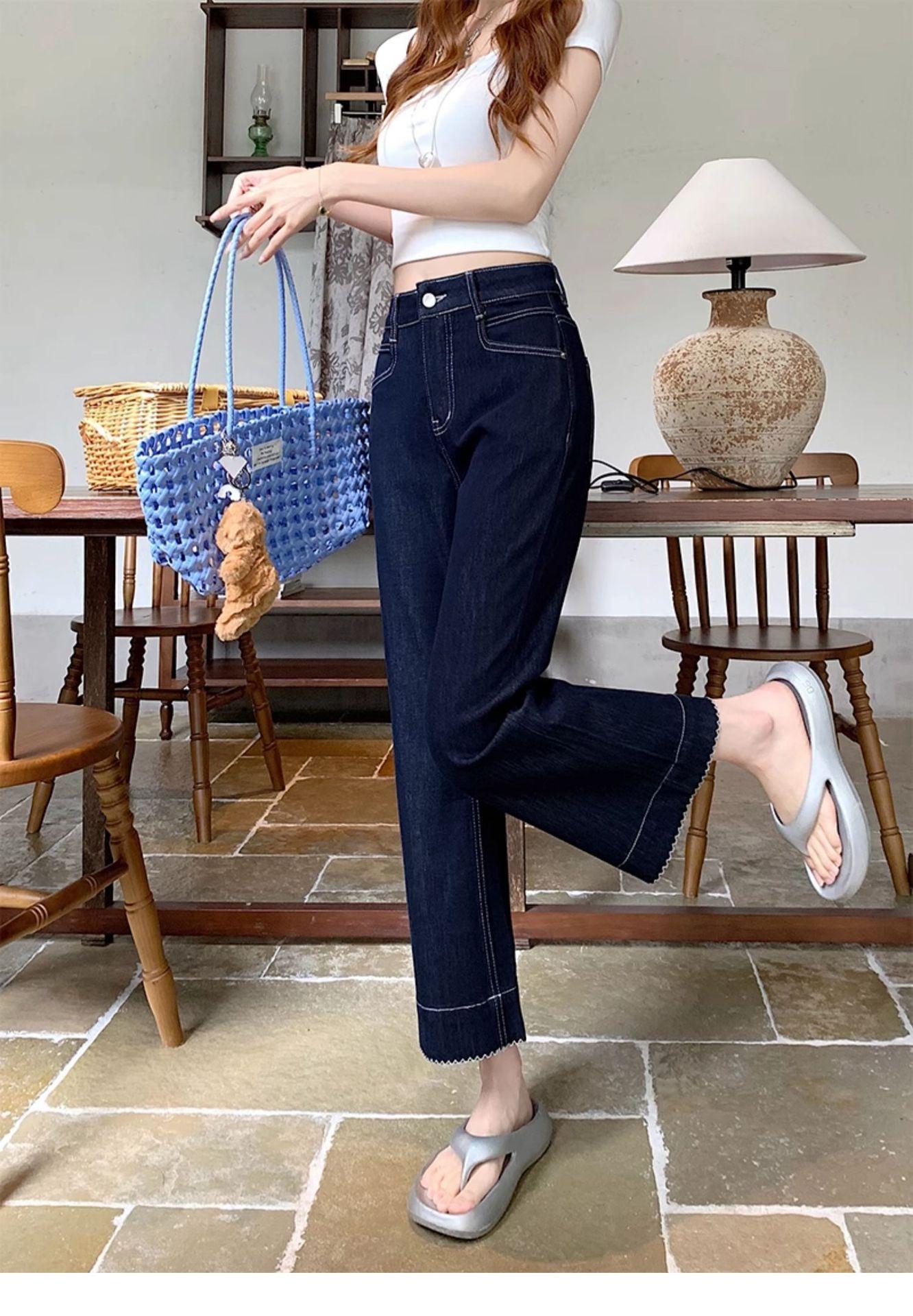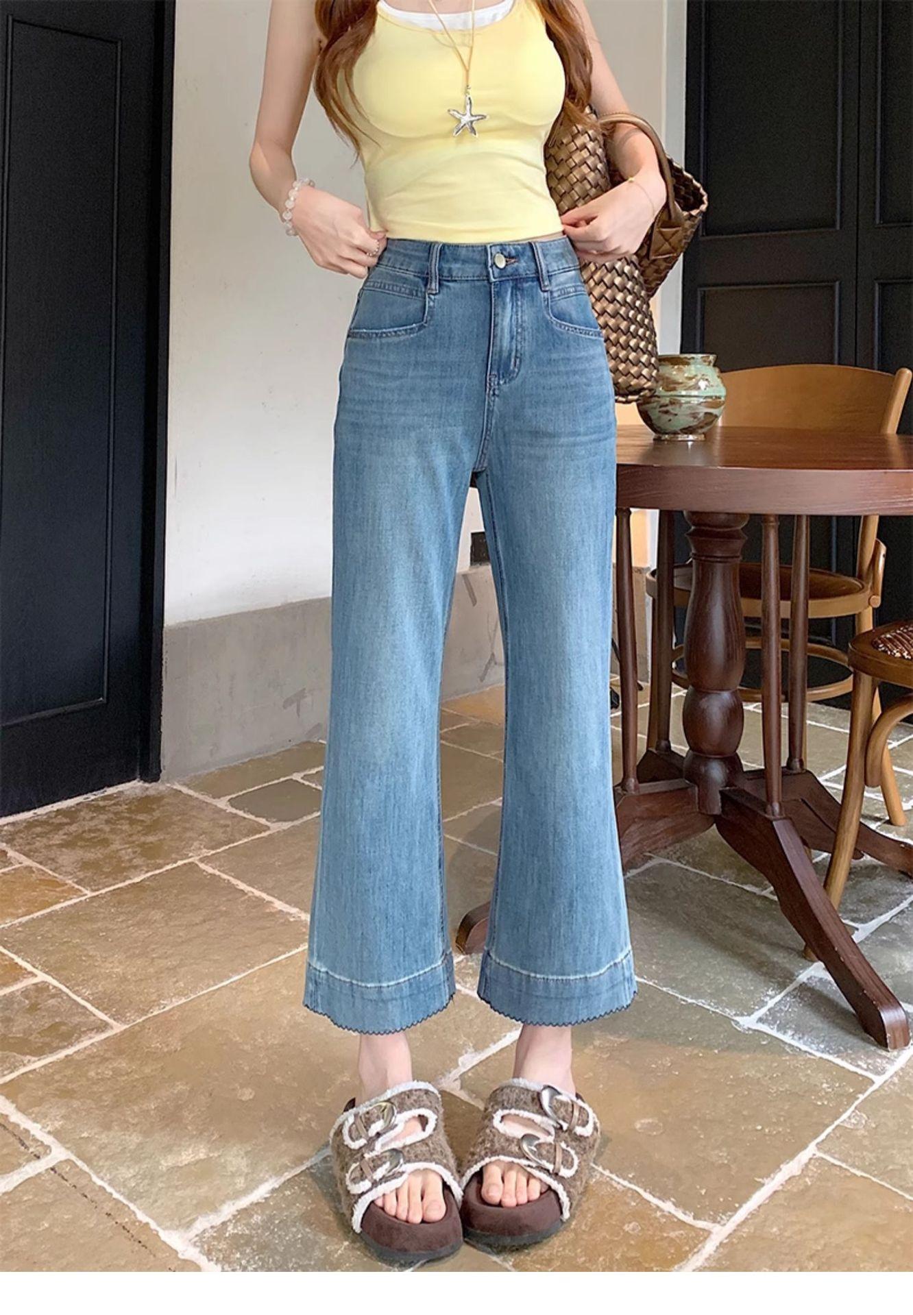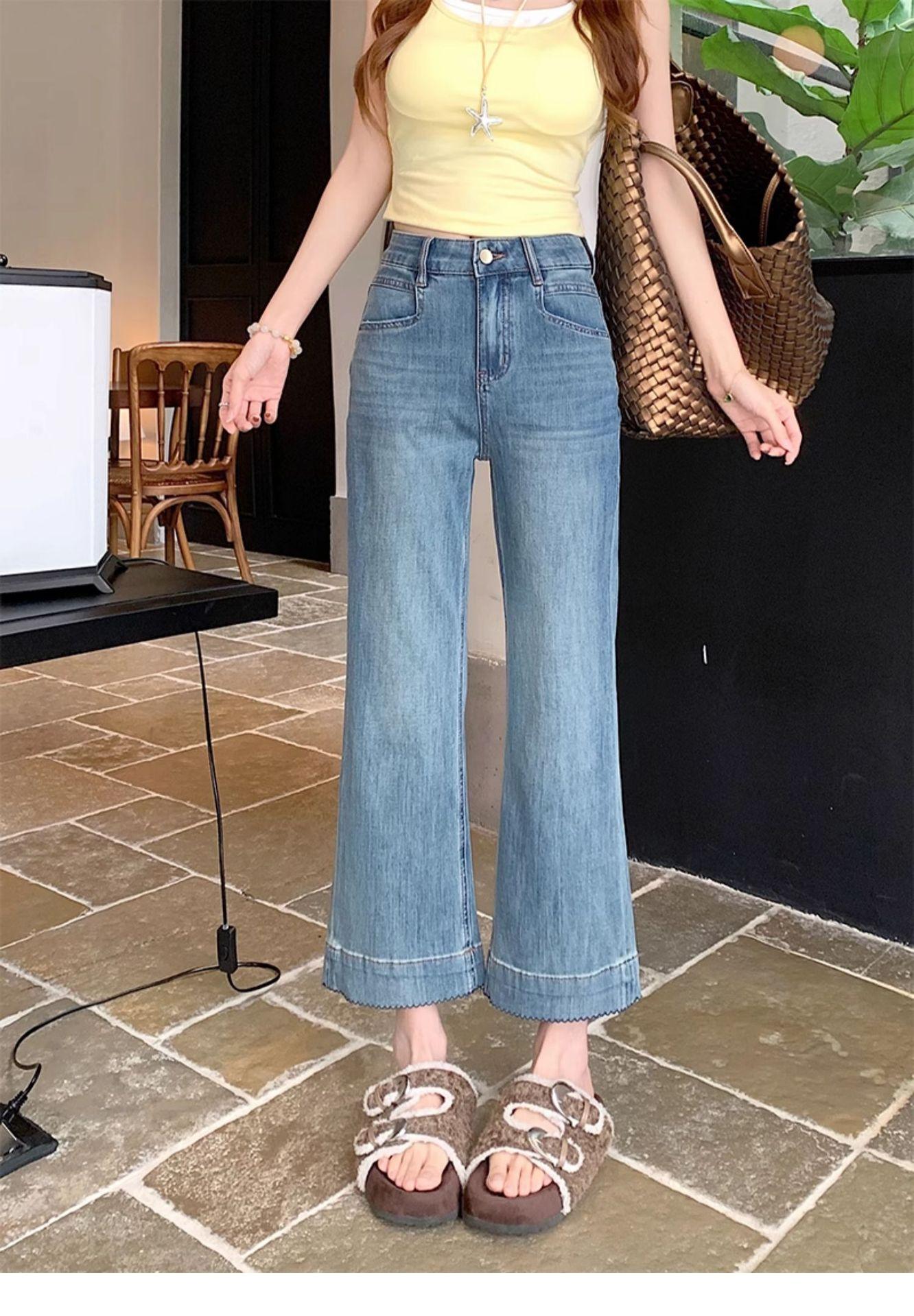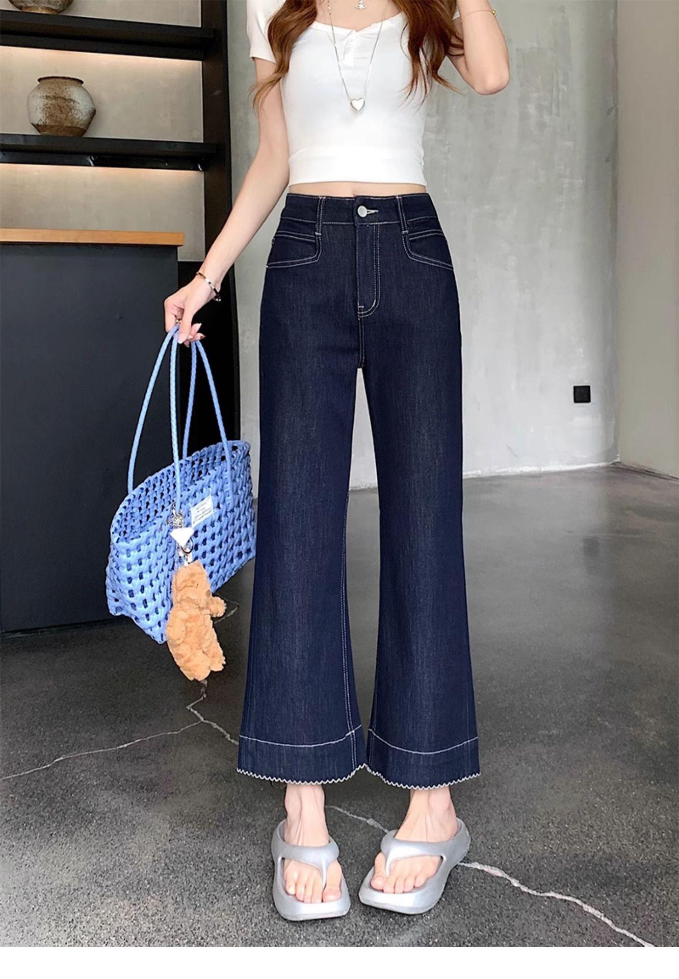 Jeans Retro Elásticos de Talla Grande para Mujer, Estilo Delgado de Verano, Pantalones Recortados Acampanados de Pierna Recta Adelgazantes de Cintura Alta Sueltos para Mujeres Curvilíneas