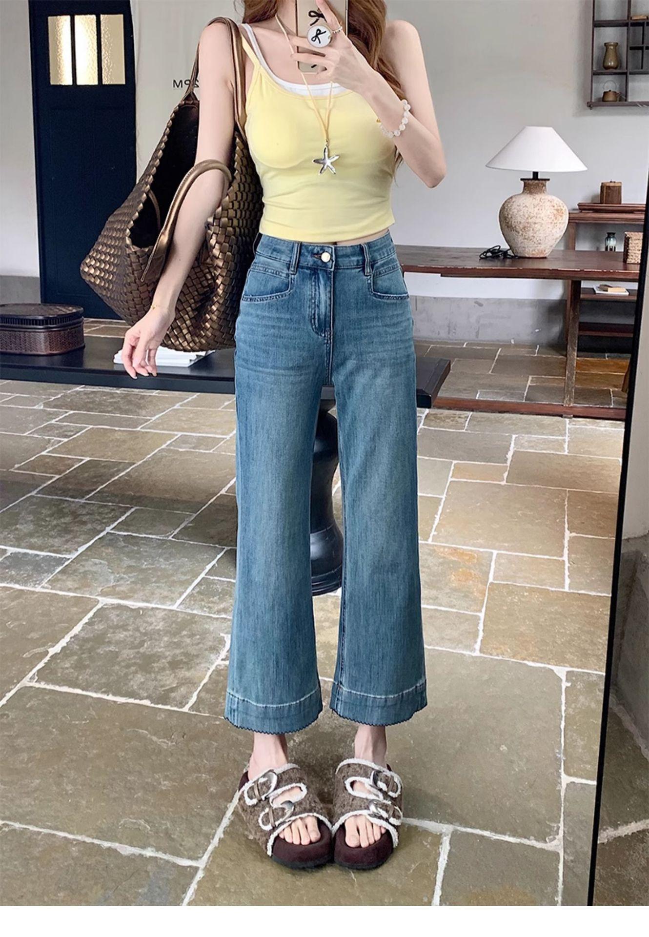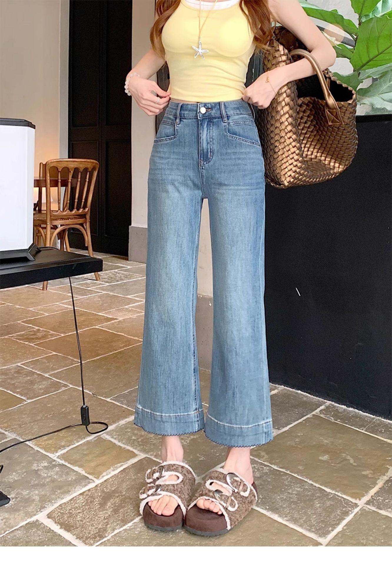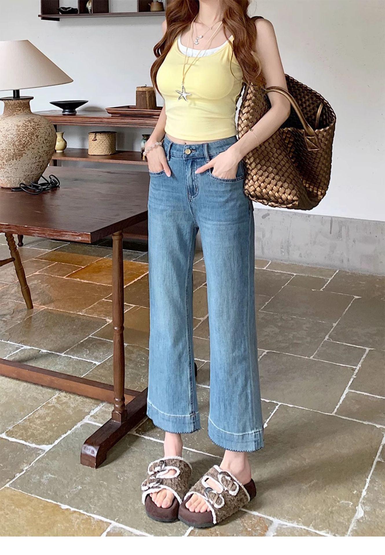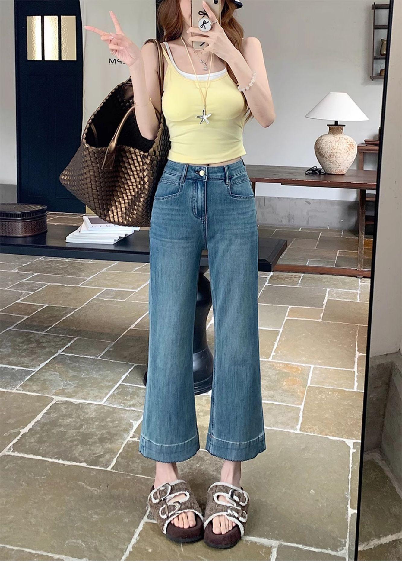Jeans Retro Elásticos de Talla Grande para Mujer, Estilo Delgado de Verano, Pantalones Recortados Acampanados de Pierna Recta Adelgazantes de Cintura Alta Sueltos para Mujeres Curvilíneas