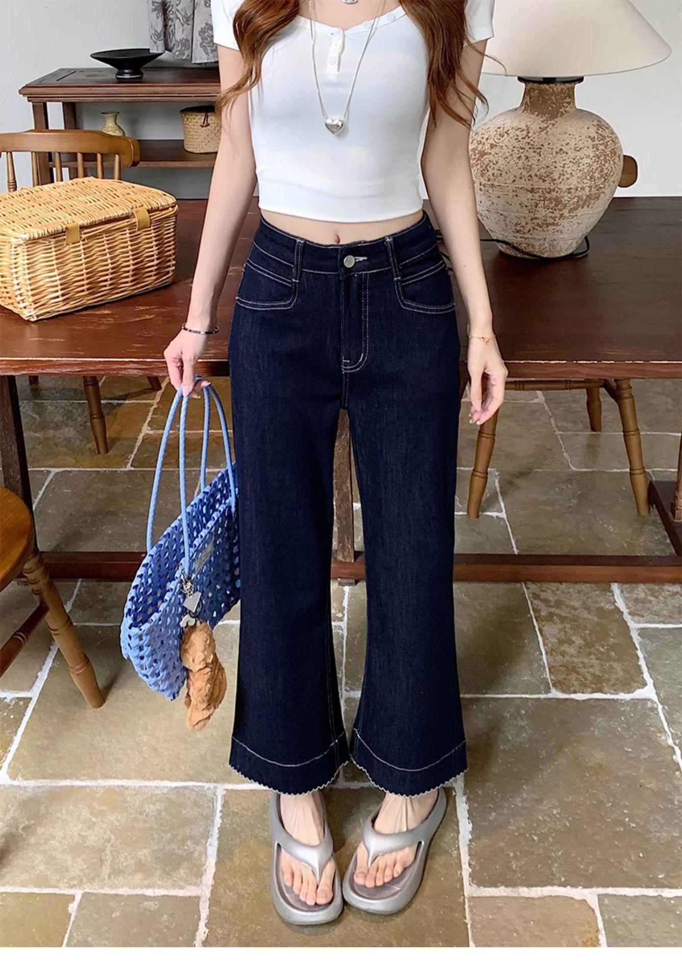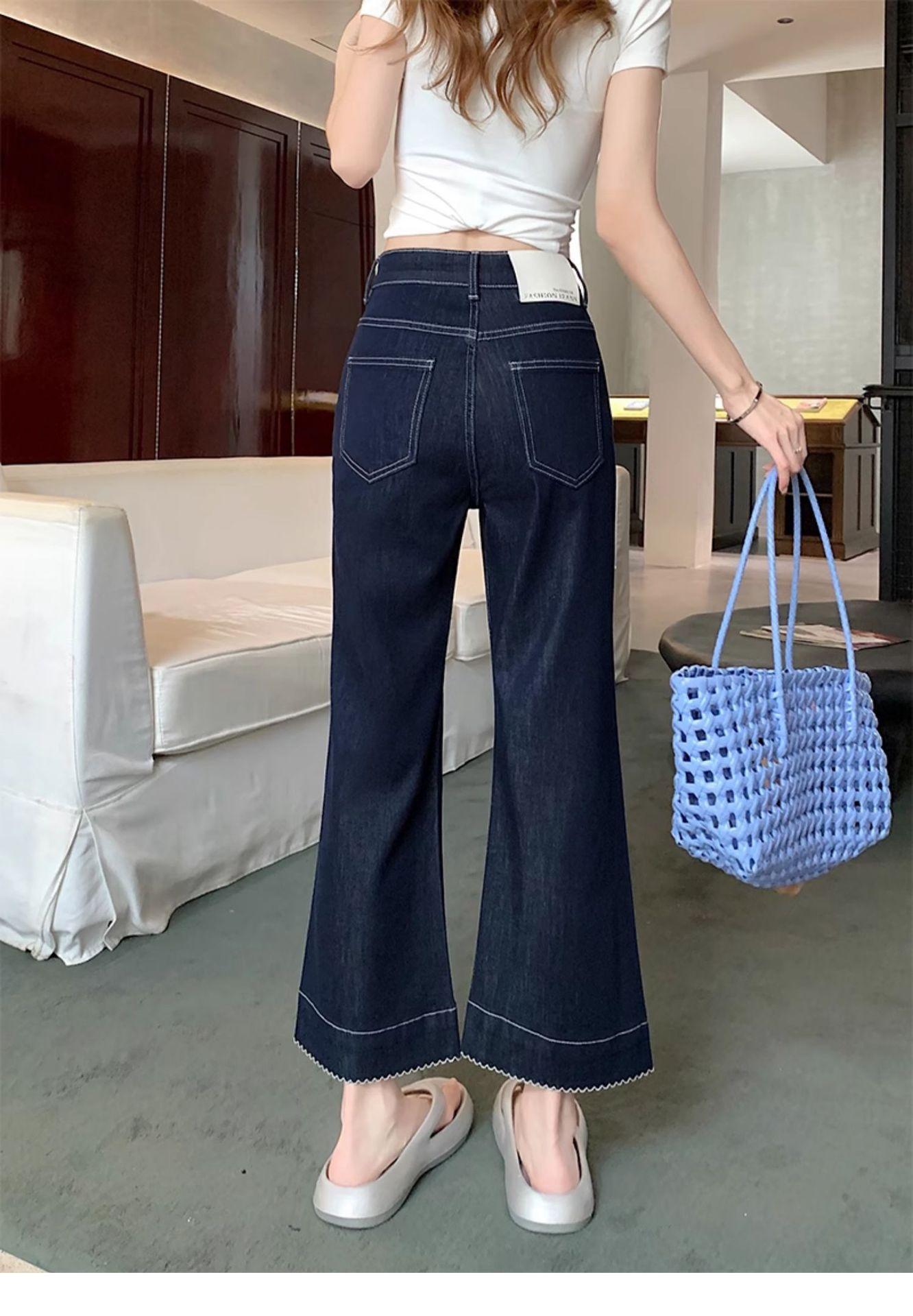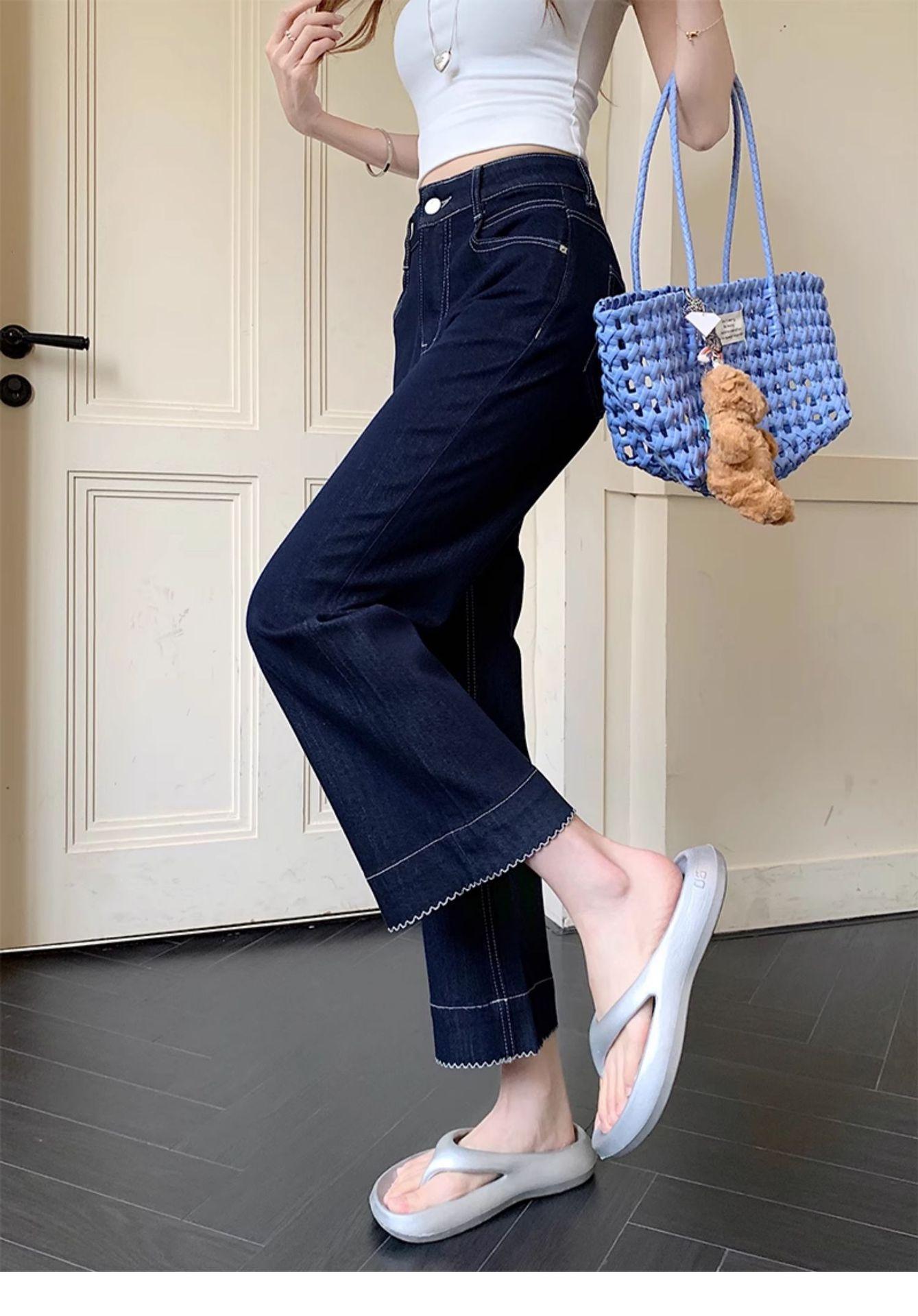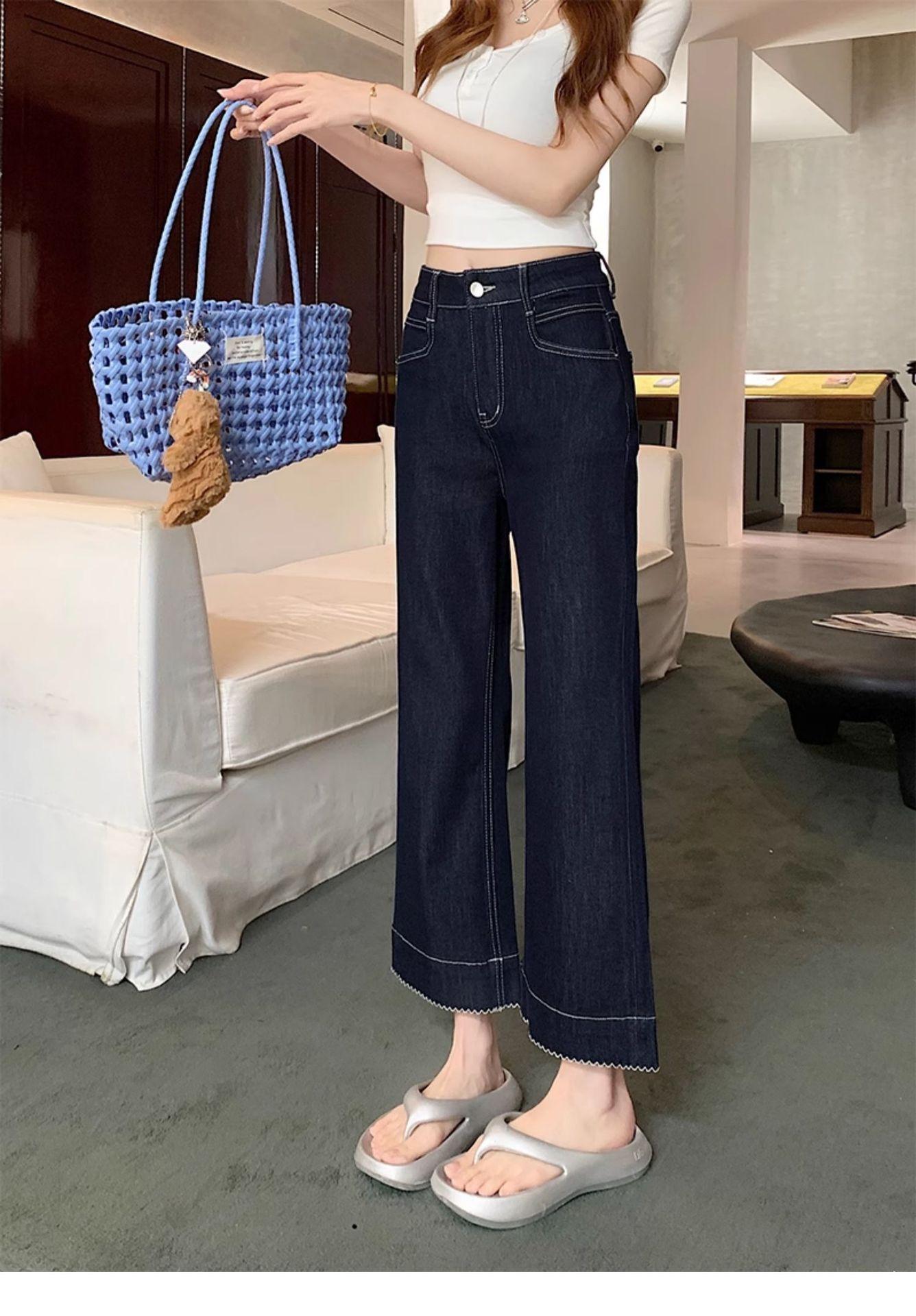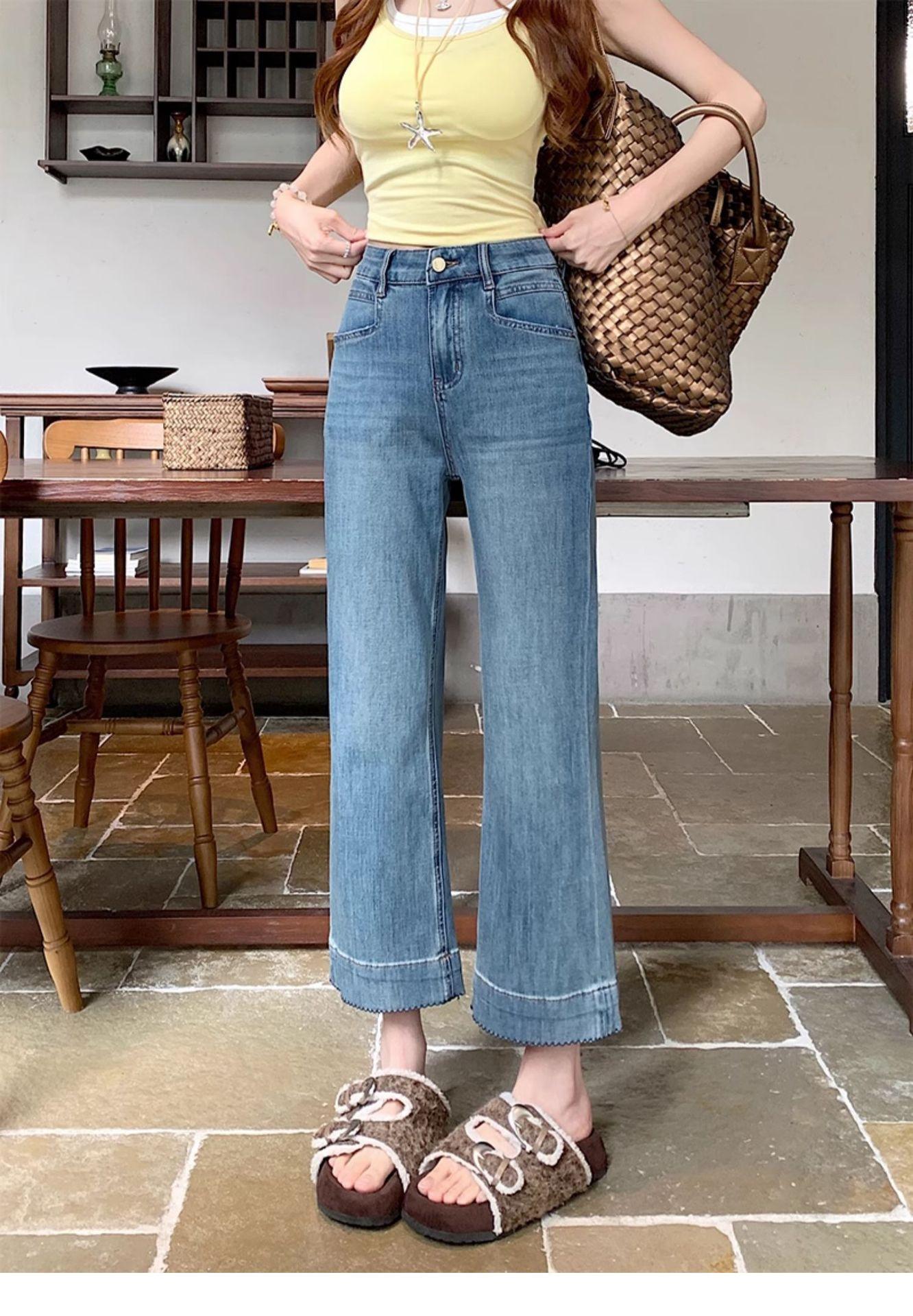 Jeans Retro Elásticos de Talla Grande para Mujer, Estilo Delgado de Verano, Pantalones Recortados Acampanados de Pierna Recta Adelgazantes de Cintura Alta Sueltos para Mujeres Curvilíneas