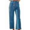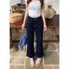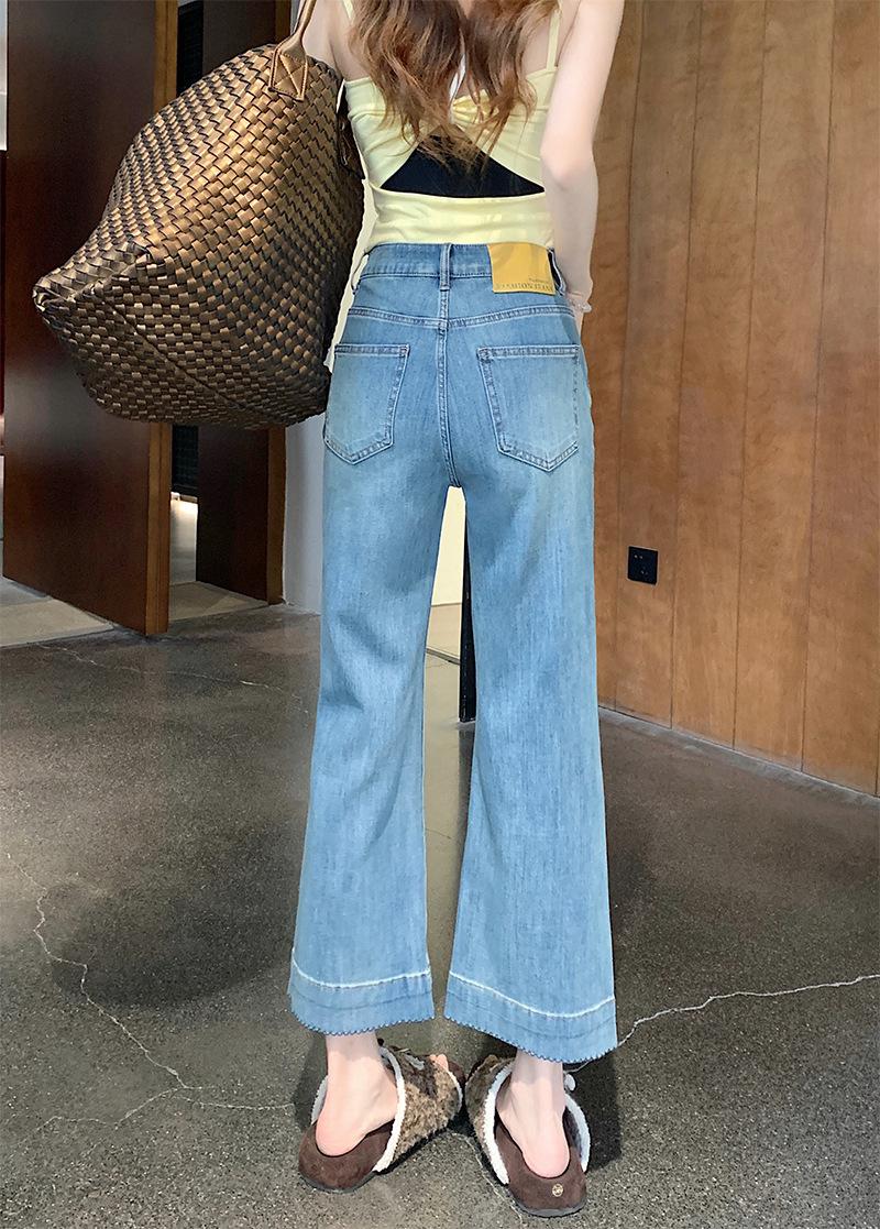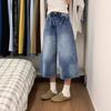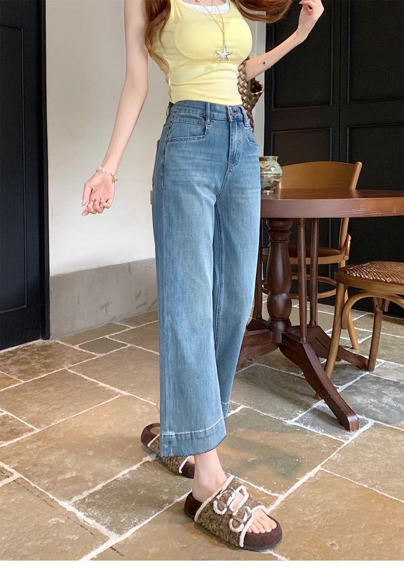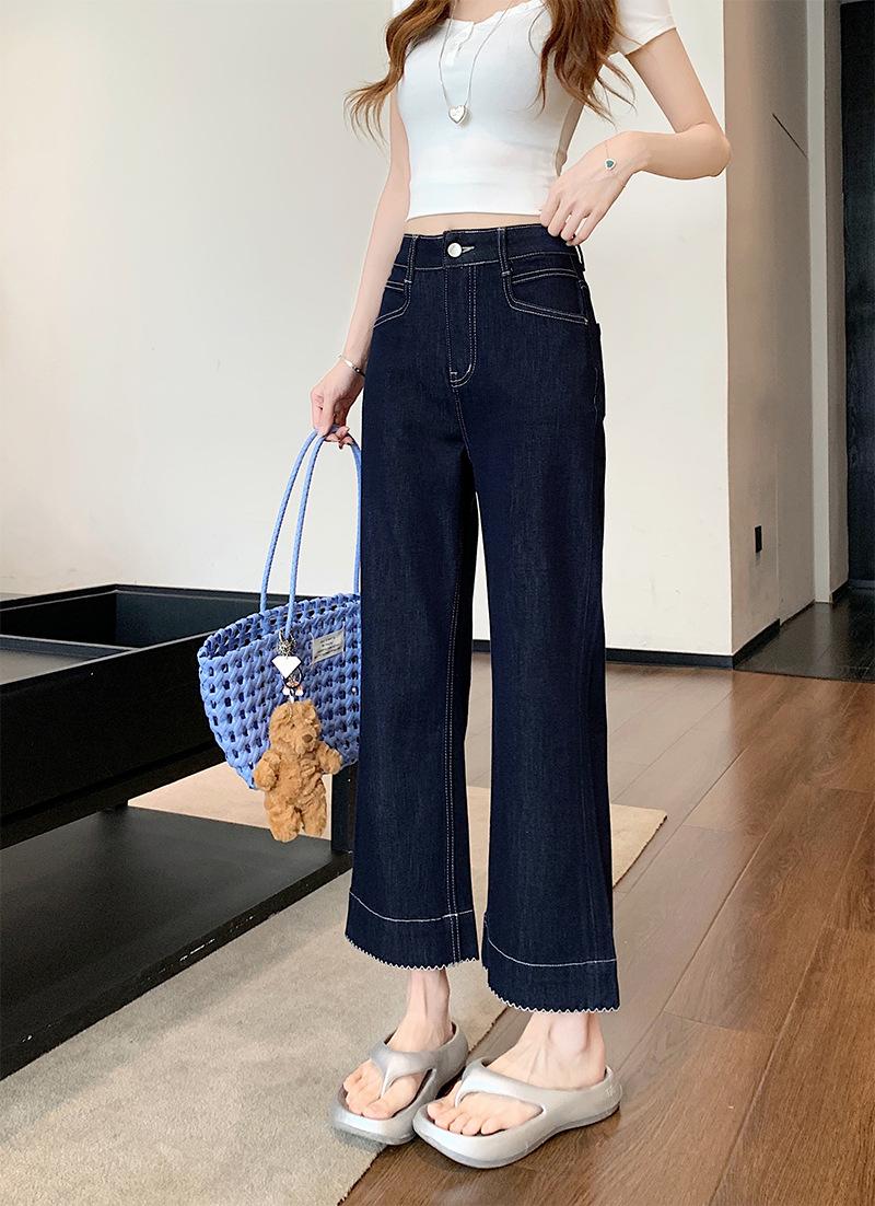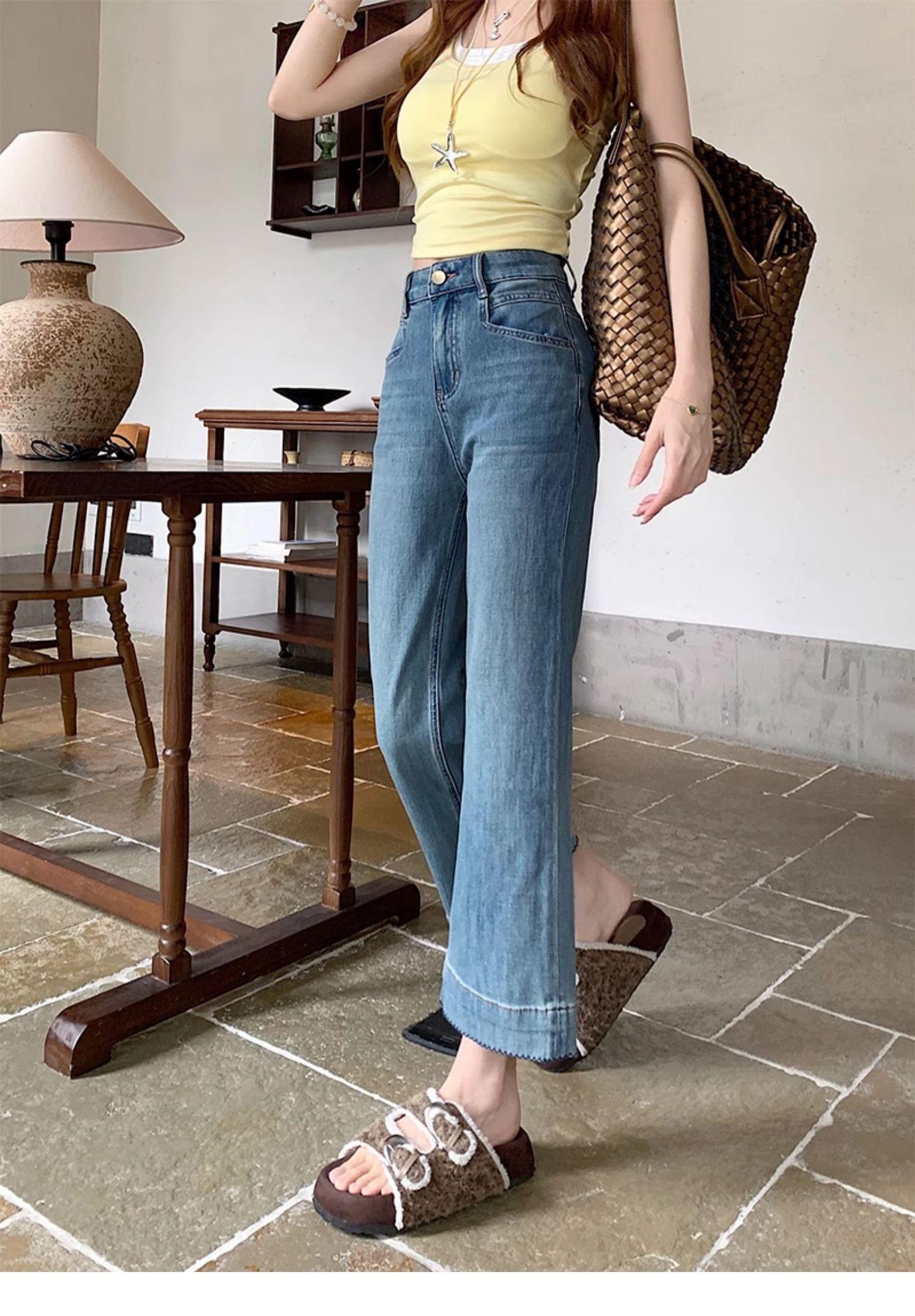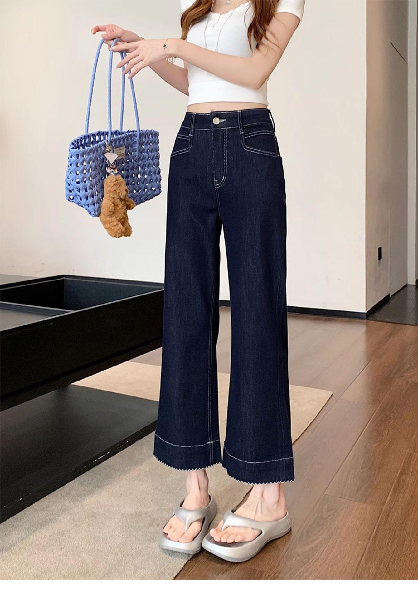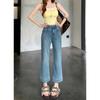 Jeans Retro Elásticos de Talla Grande para Mujer, Estilo Delgado de Verano, Pantalones Recortados Acampanados de Pierna Recta Adelgazantes de Cintura Alta Sueltos para Mujeres Curvilíneas