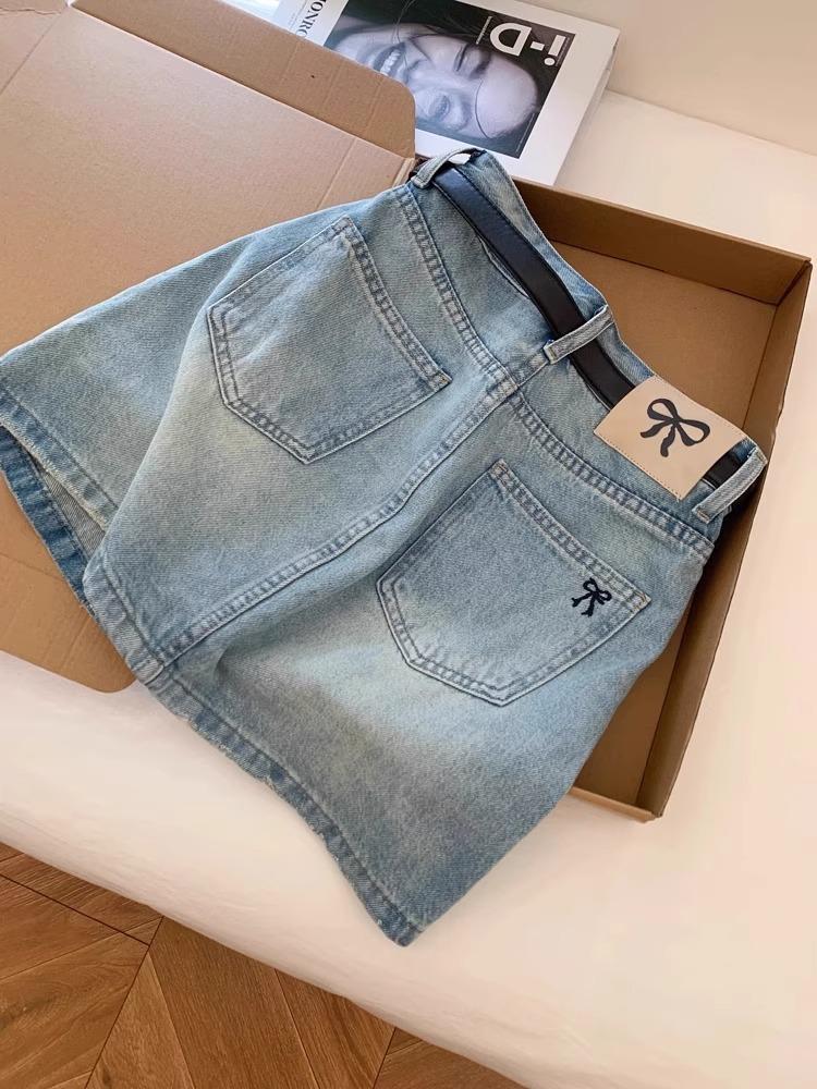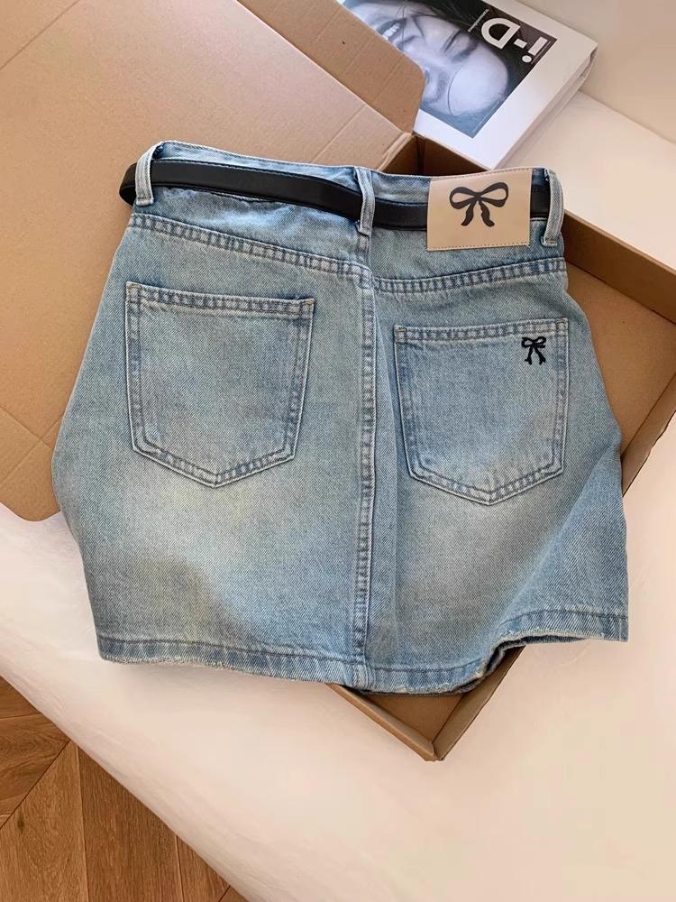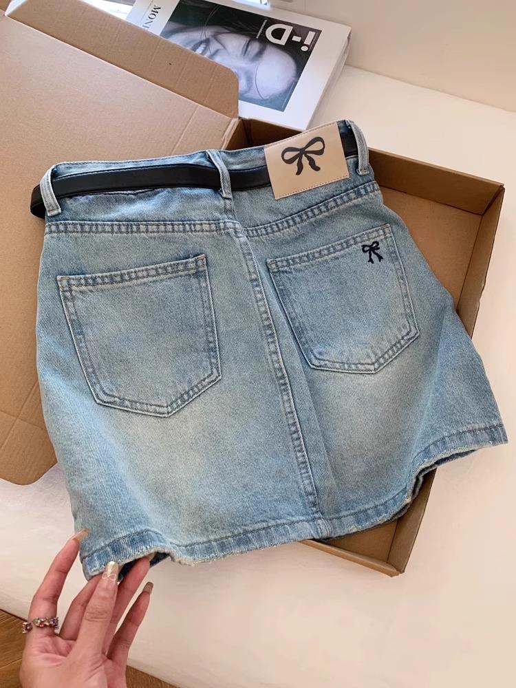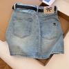 Falda de mezclilla azul claro para mujer 2025 Verano Nuevo Cintura alta Aspecto adelgazante Línea A Versátil Sexy Falda corta ajustada a las caderas