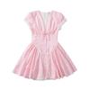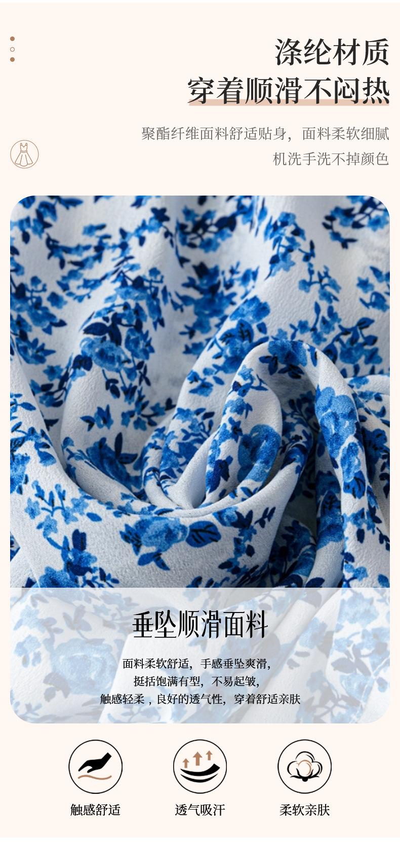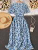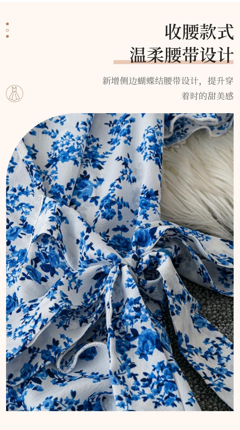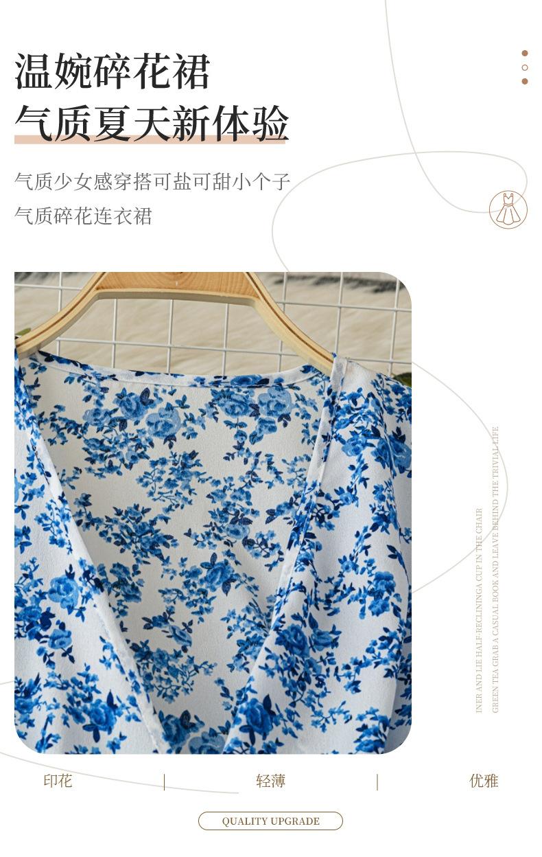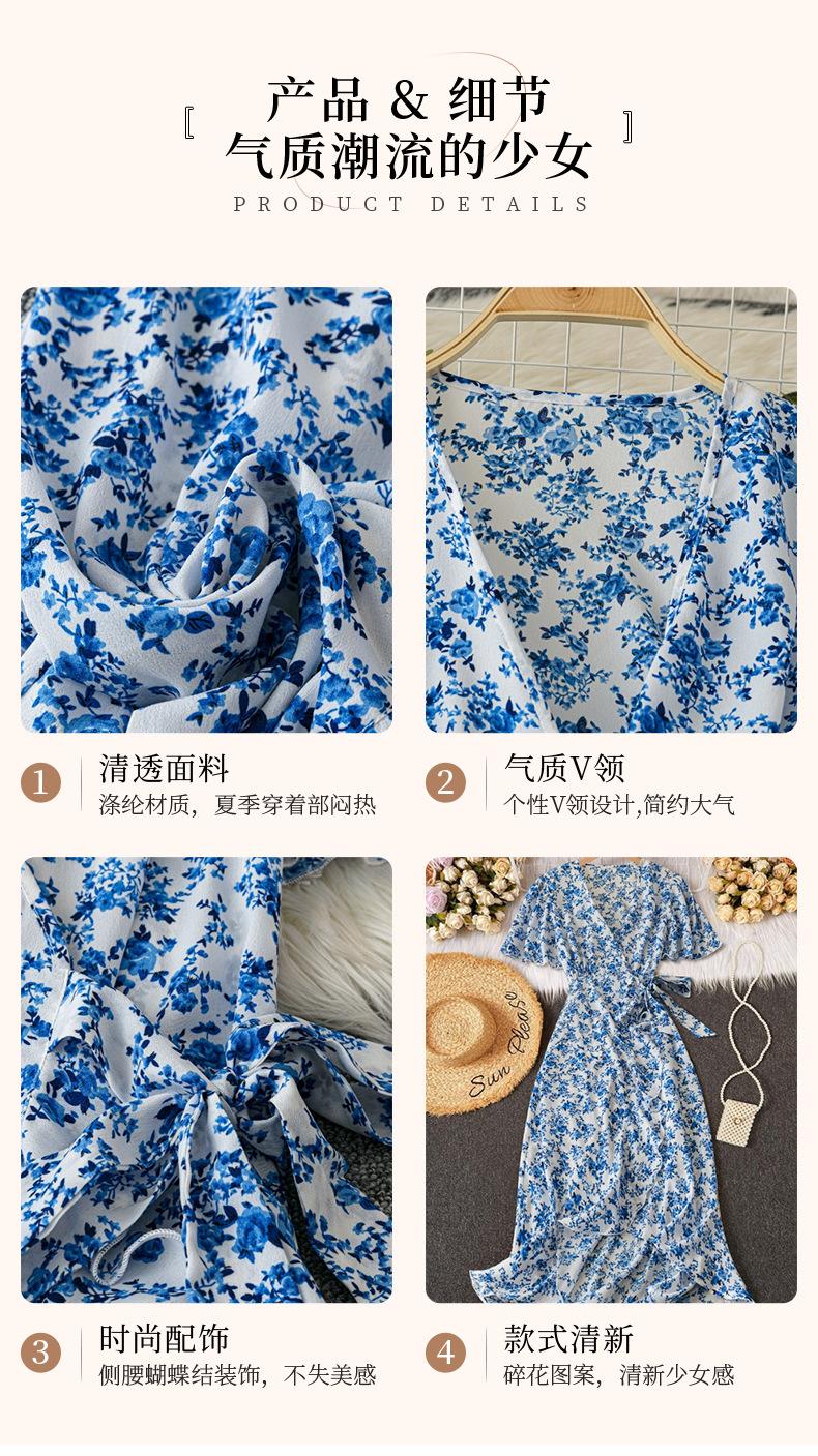 Vestido Floral Estilo Retro Comercio Exterior 2025 Verano Nuevo Manga Corta Cuello en V Adelgazante de Cintura Línea A Acampanado