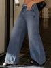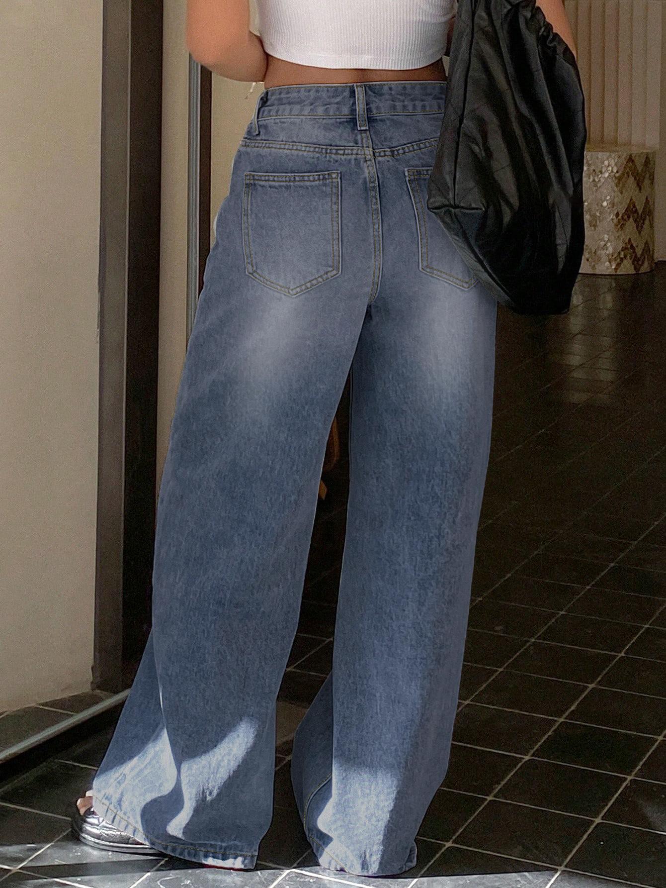 Comercio Exterior Transfronterizo Amazon Diseño de Moda Europeo y Americano Casual Recto Versátil Casual Suelto Botón Diagonal Jeans para Mujer