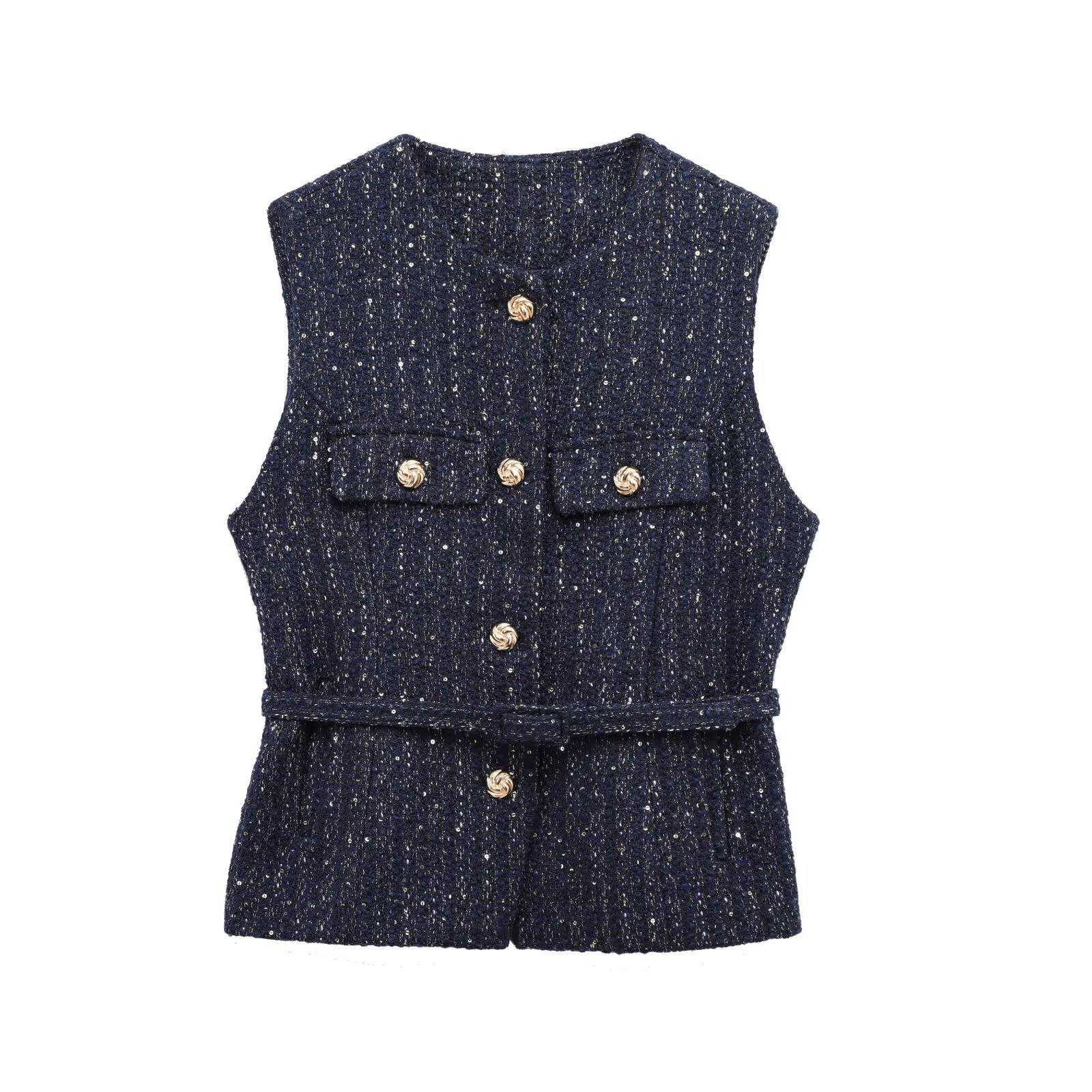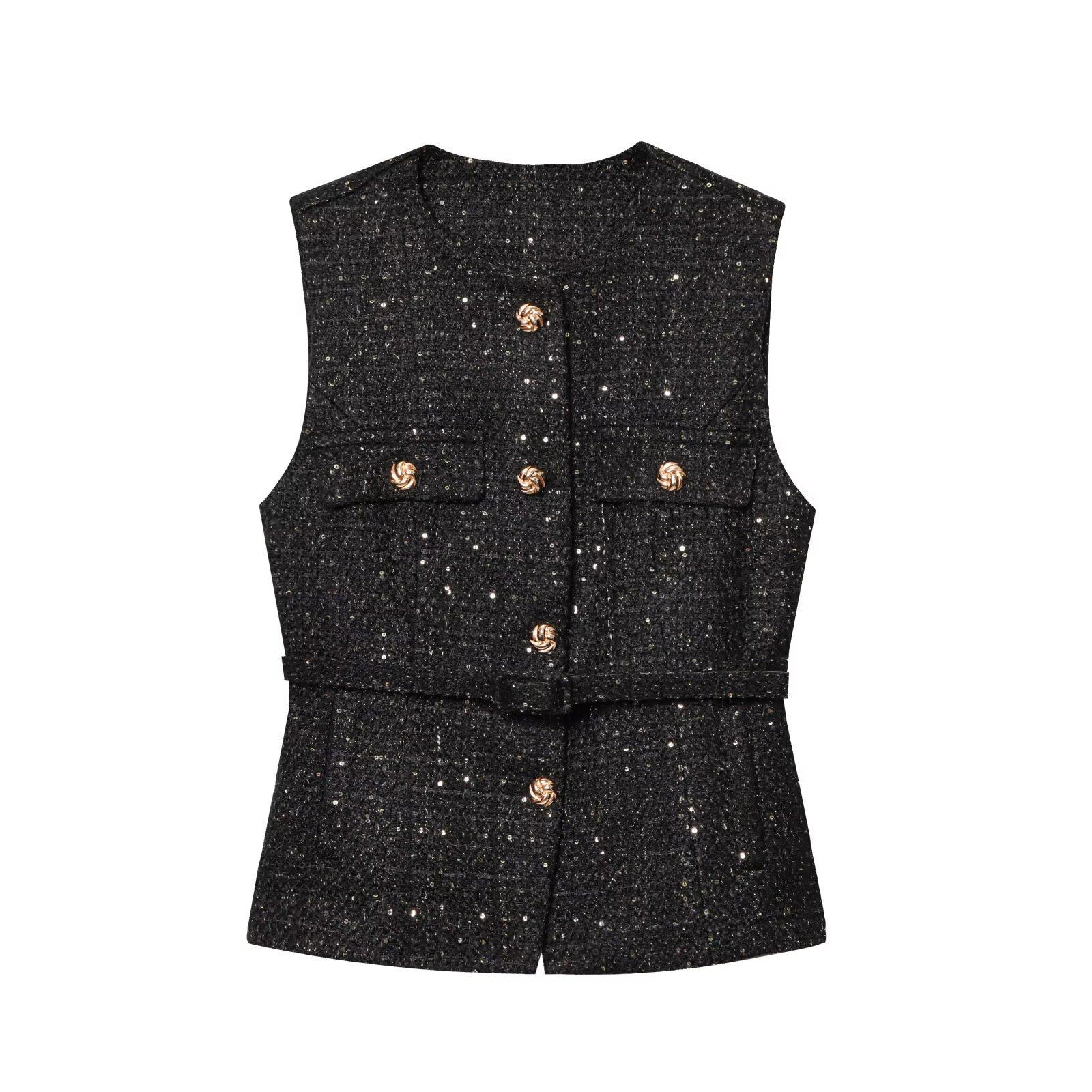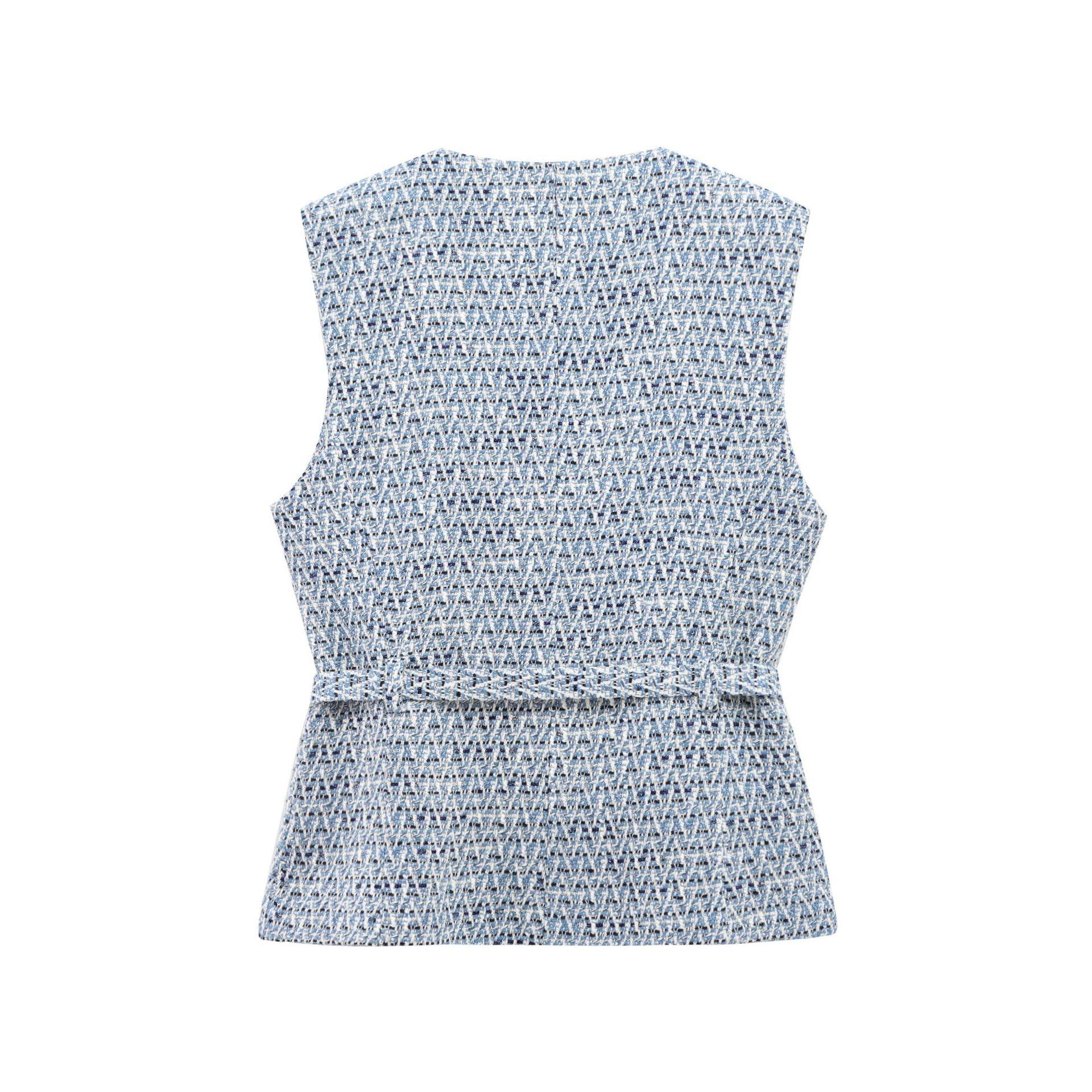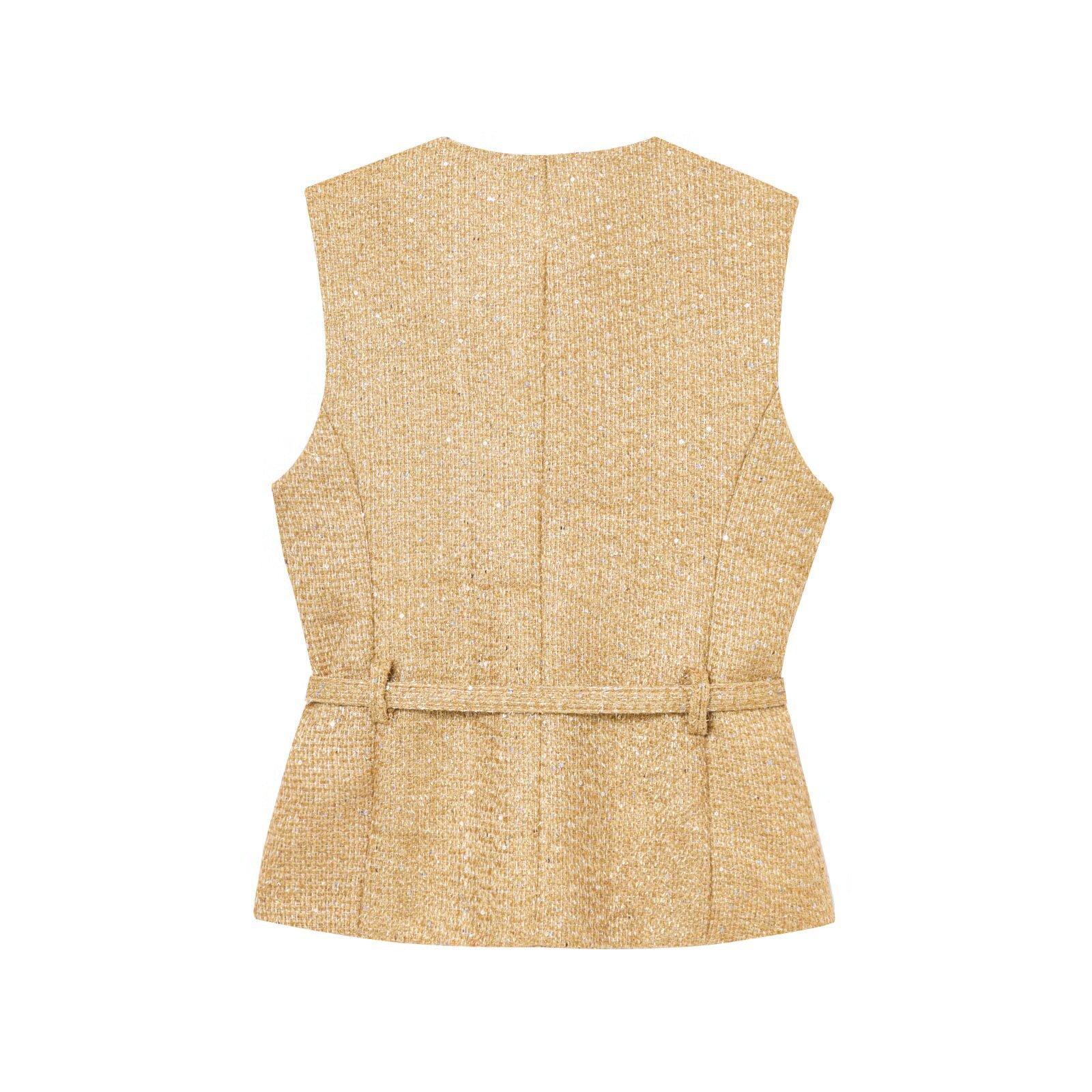 Primavera 2025 nuevo estilo europeo y americano para mujer con cinturón chaleco de textura de línea color metal 2132116