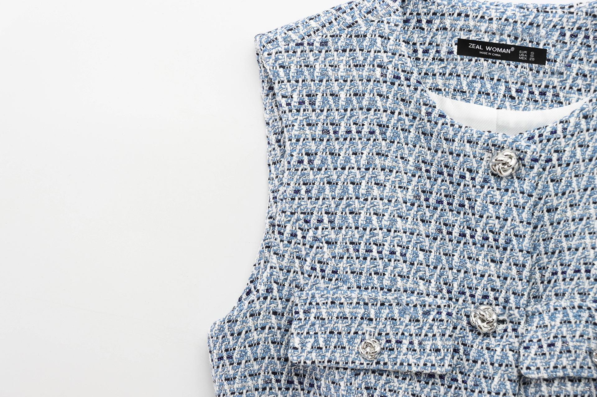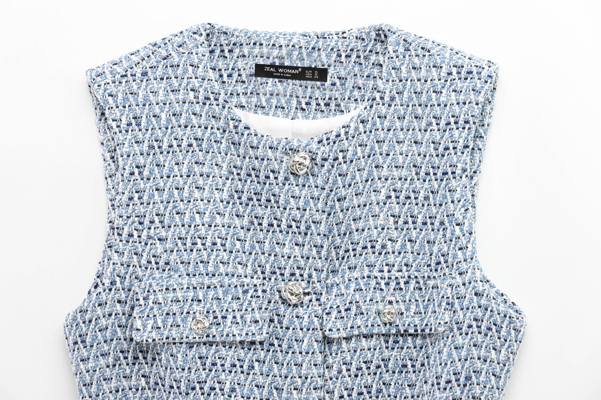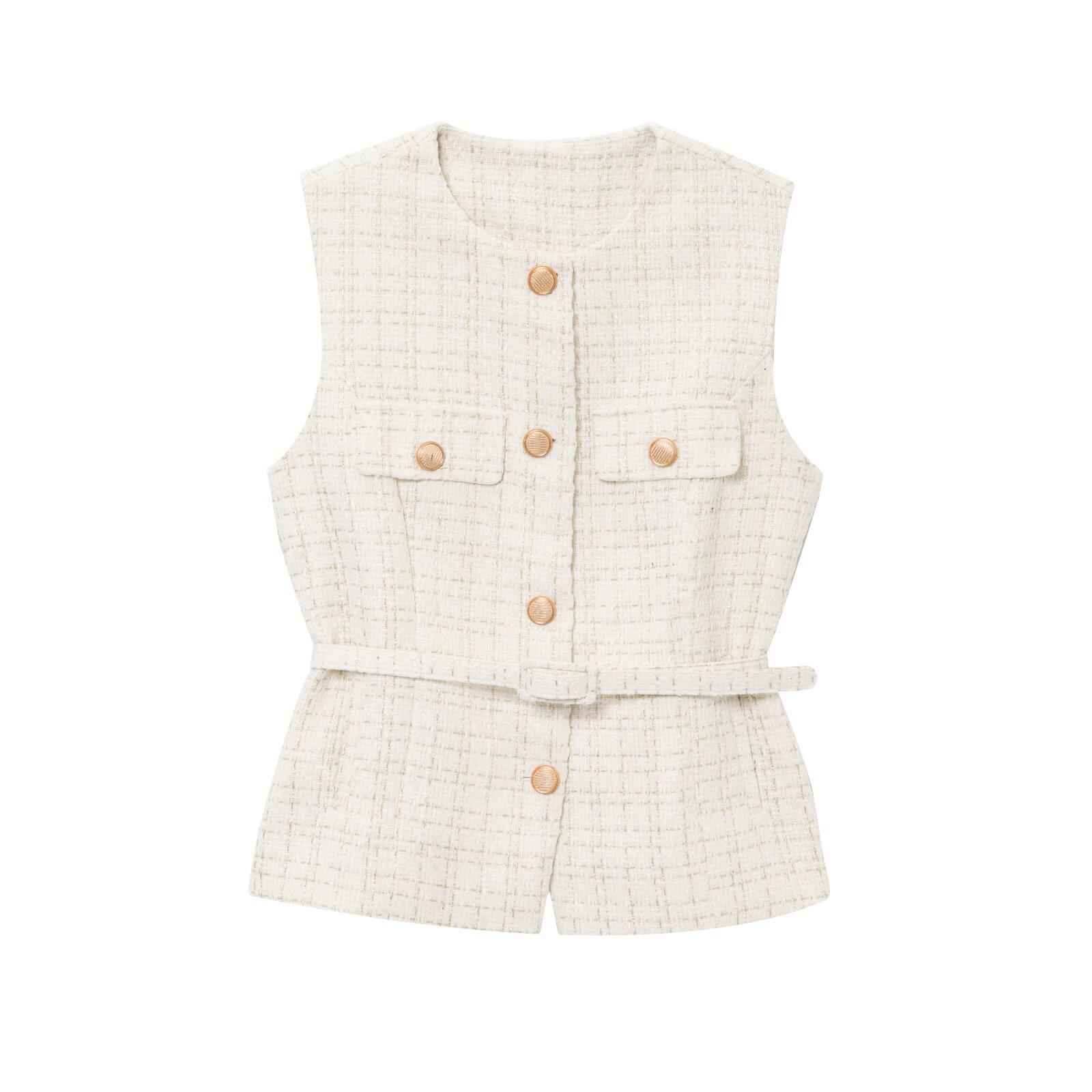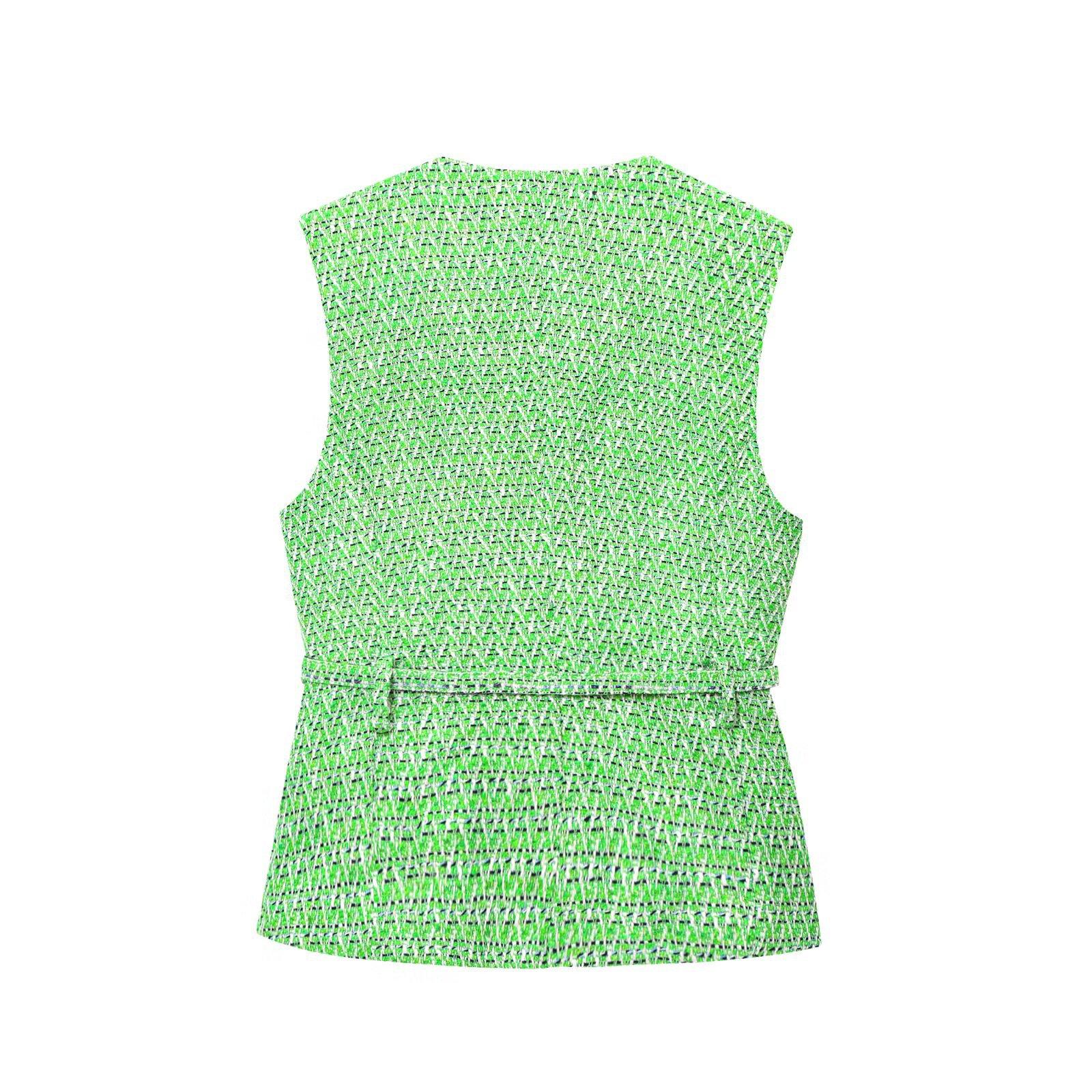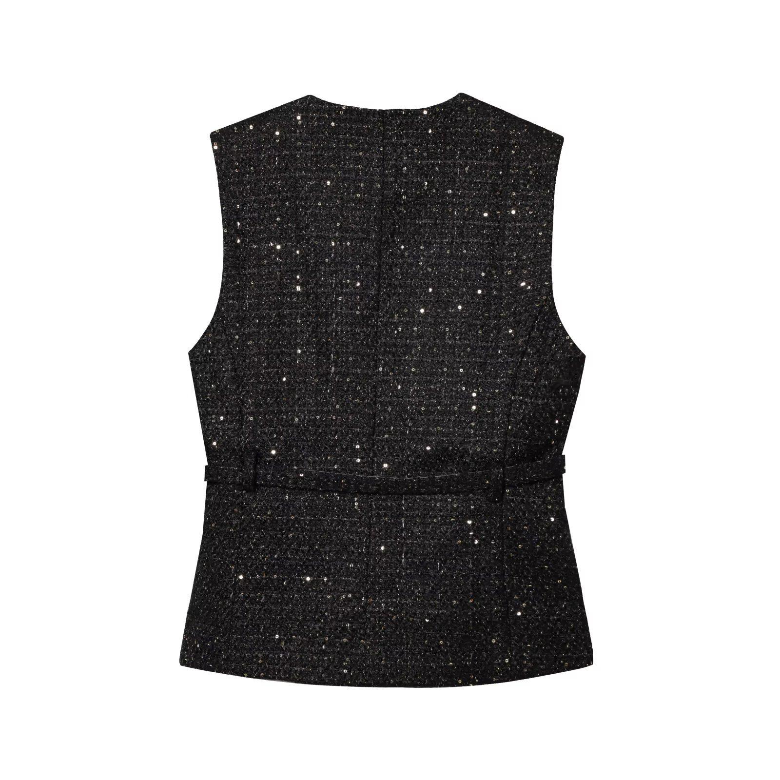 Primavera 2025 nuevo estilo europeo y americano para mujer con cinturón chaleco de textura de línea color metal 2132116