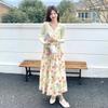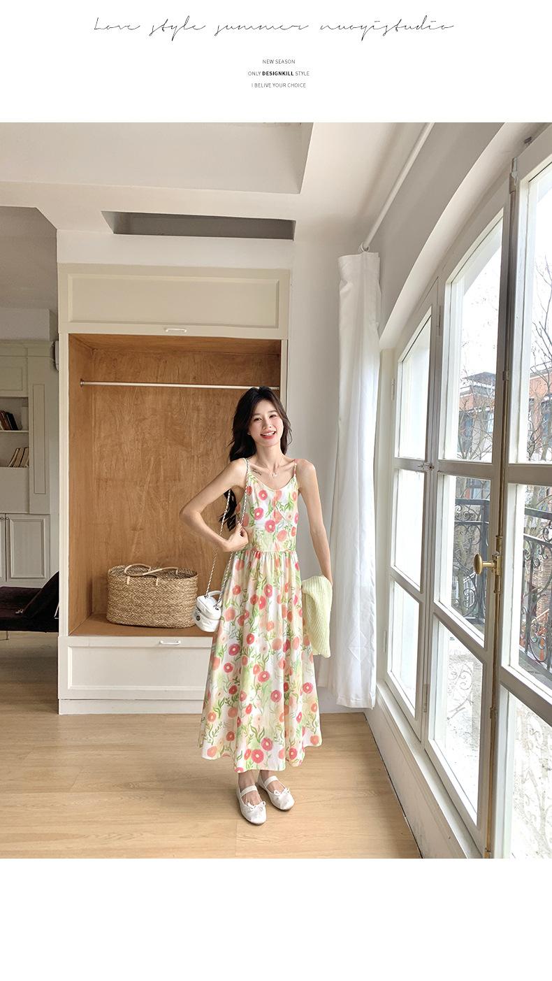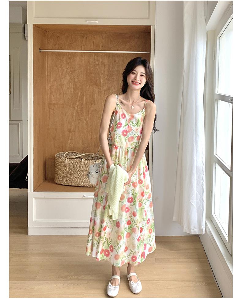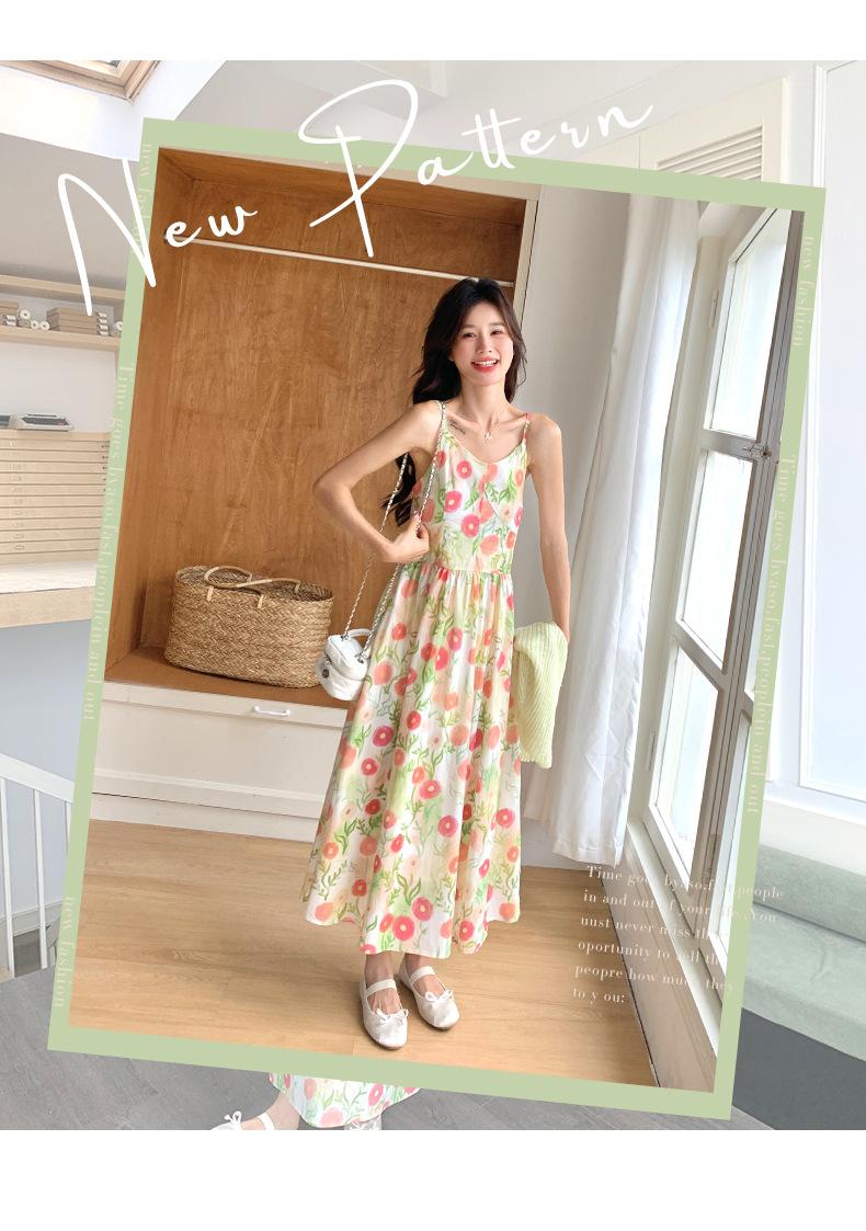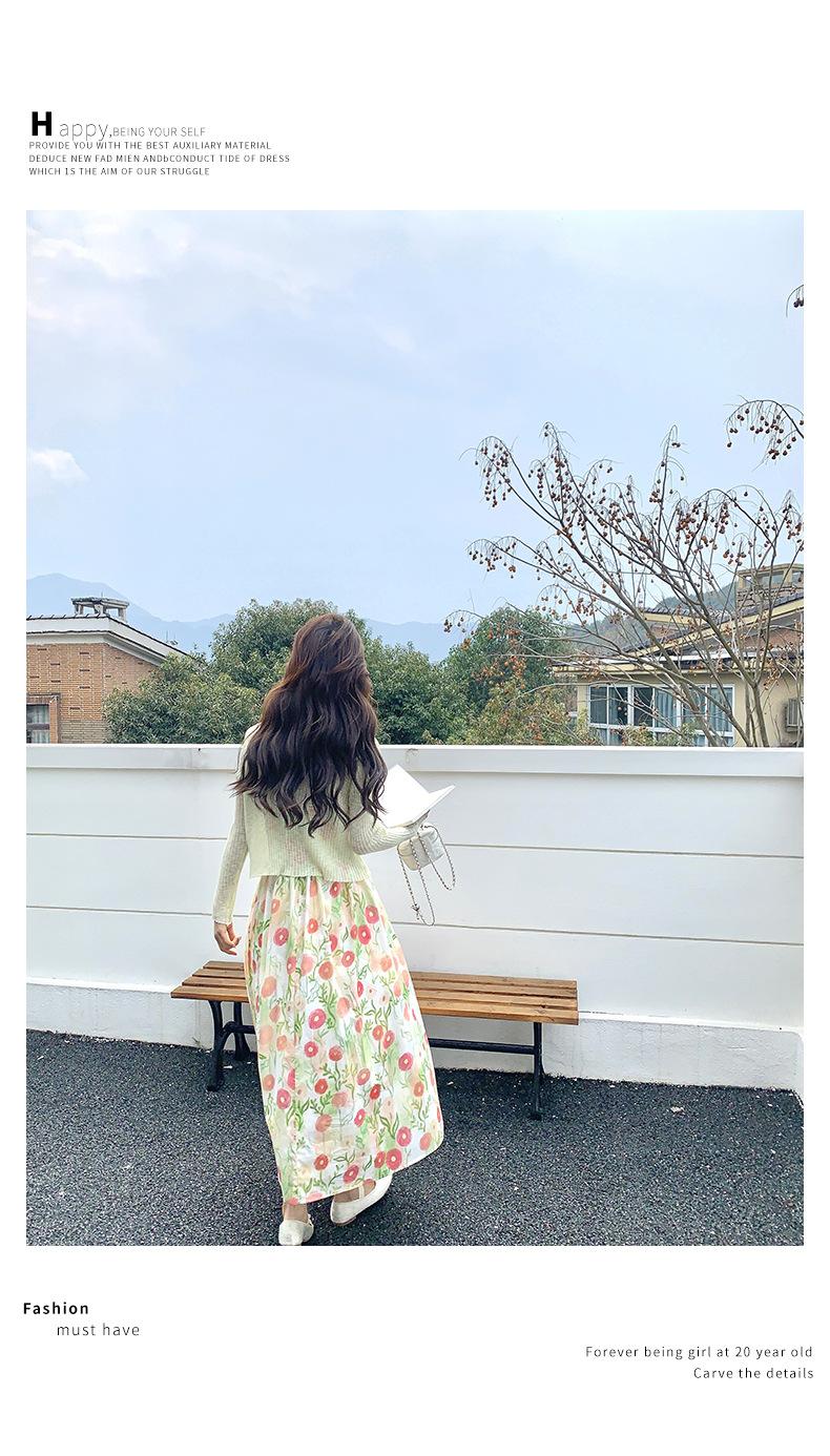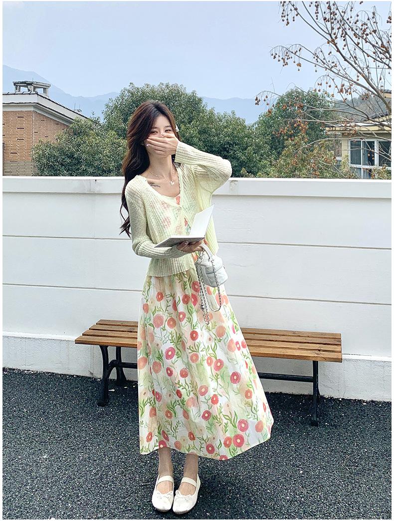 Conjunto de Vestido de Tirantes Florales Franceses Nuevos 2025 para Mujer, Conjunto de Dos Piezas de Cárdigan de Punto de Estilo Suave de Verano Otro