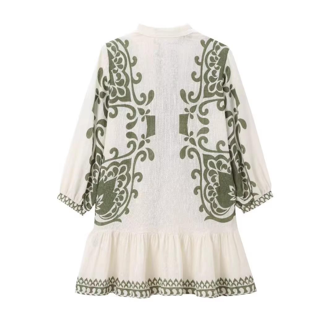 2025 Nueva Ropa de Verano para Mujer Estilo Europeo y Americano Moda Estampado Estilo Resort Mini Vestido 9878141