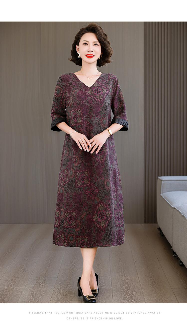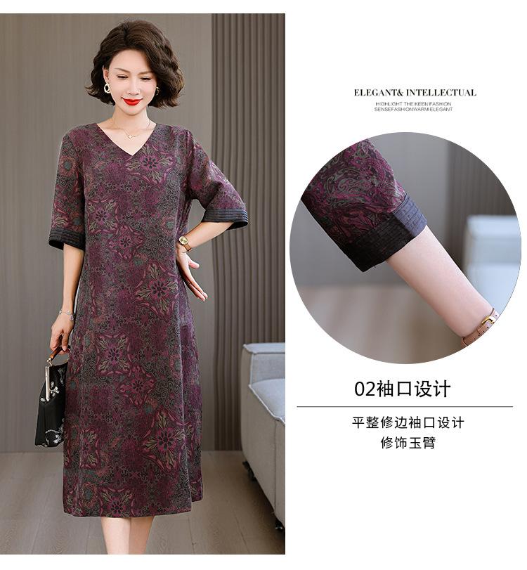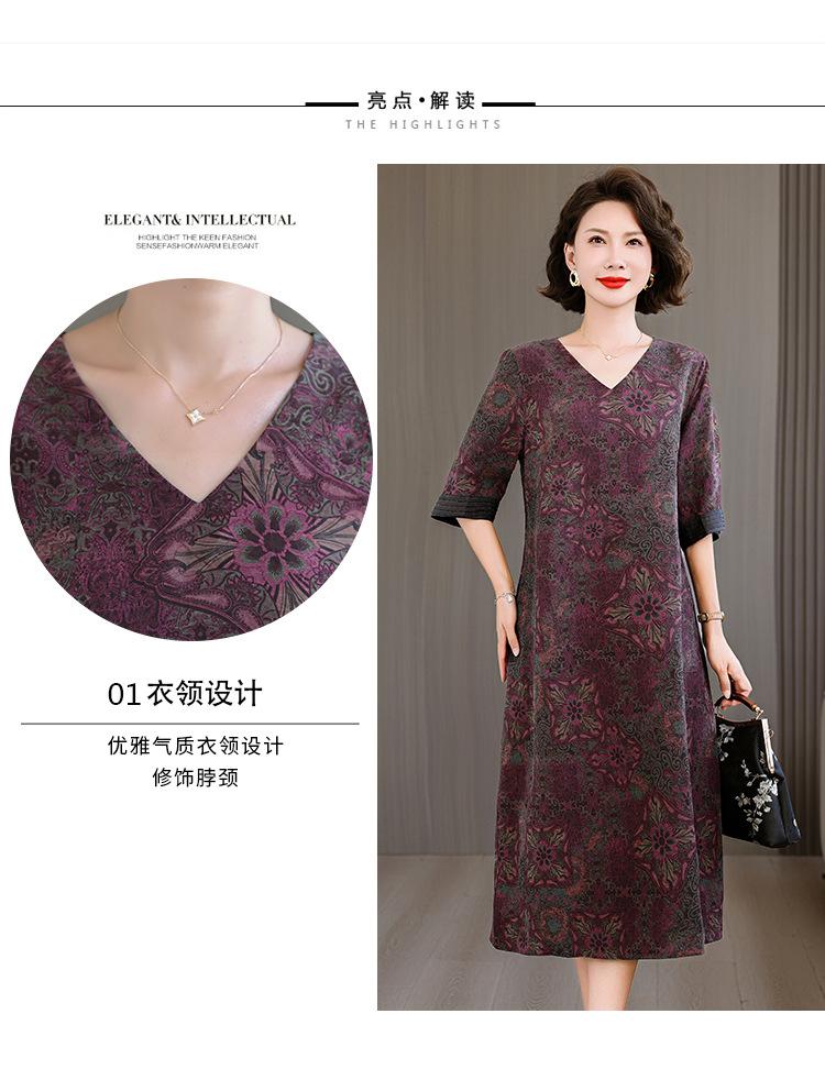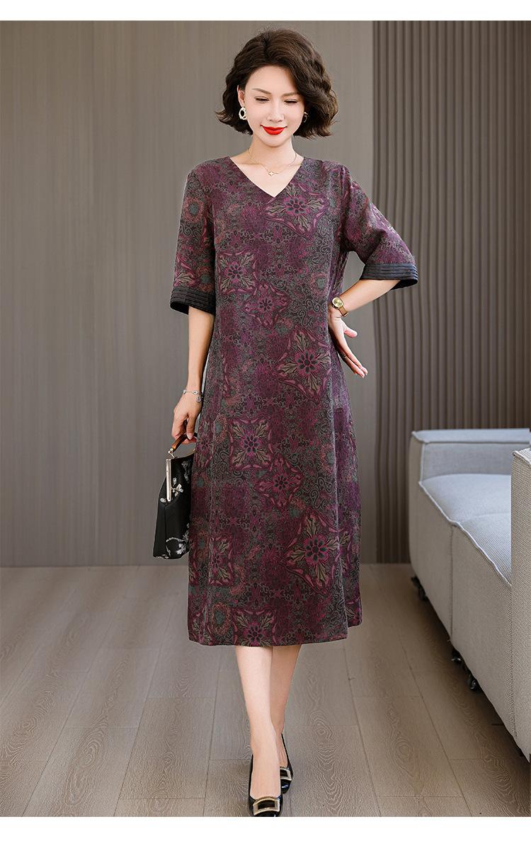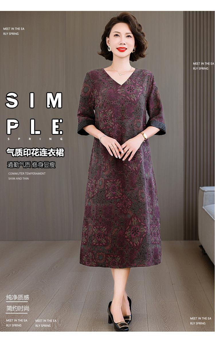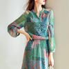 Vestido estampado con cuello en V, moderno, de lujo ligero, de alta gama, largo hasta la pantorrilla, temperamento elegante, seda de morera, falda línea A