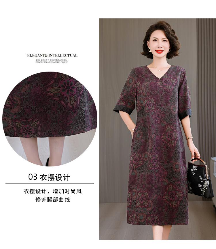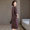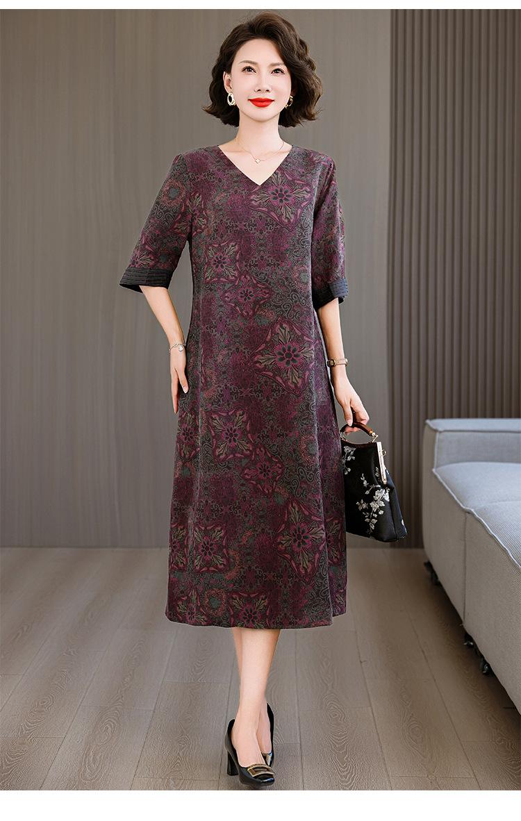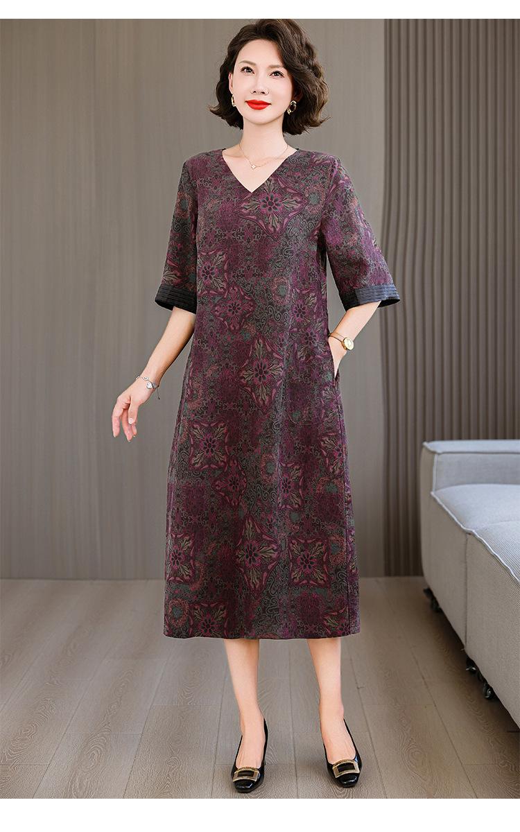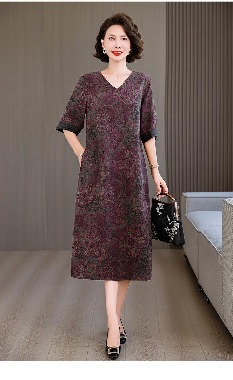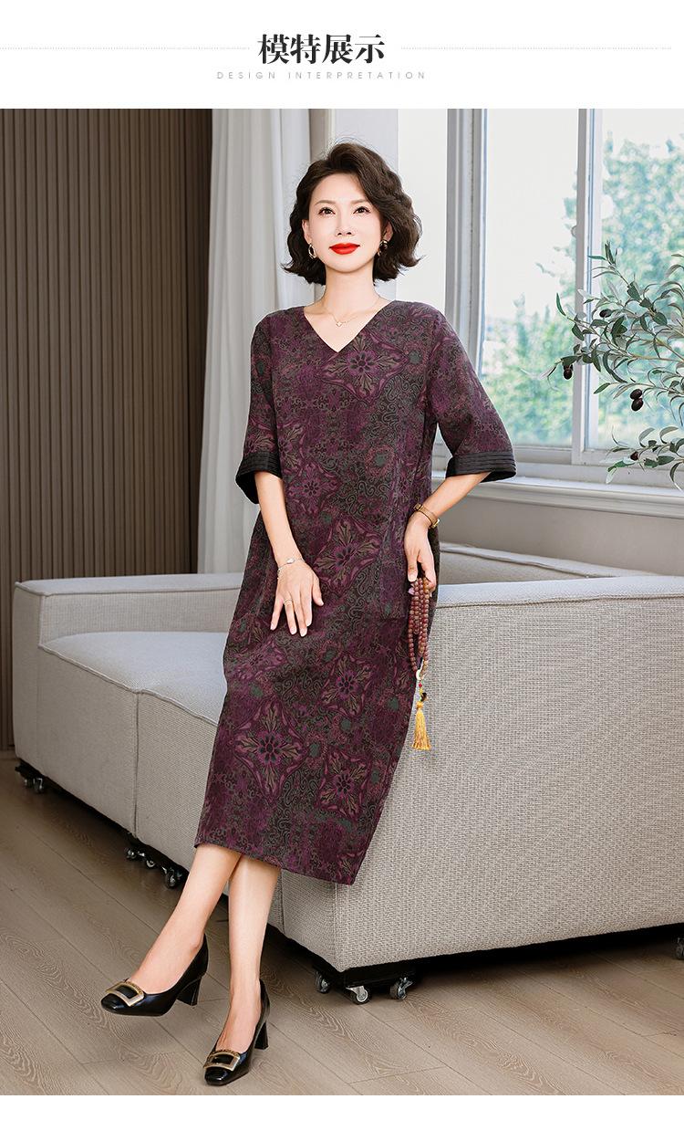 Vestido estampado con cuello en V, moderno, de lujo ligero, de alta gama, largo hasta la pantorrilla, temperamento elegante, seda de morera, falda línea A