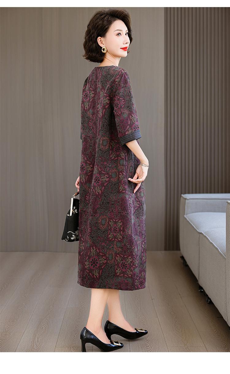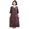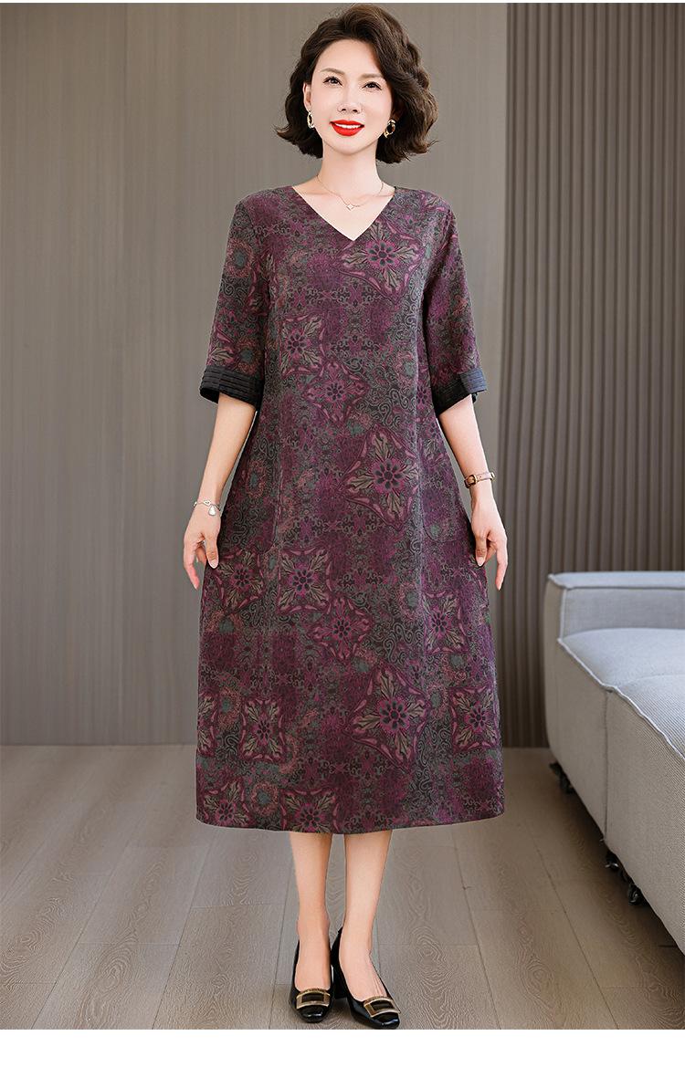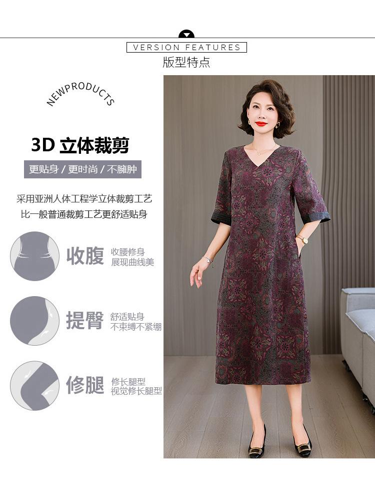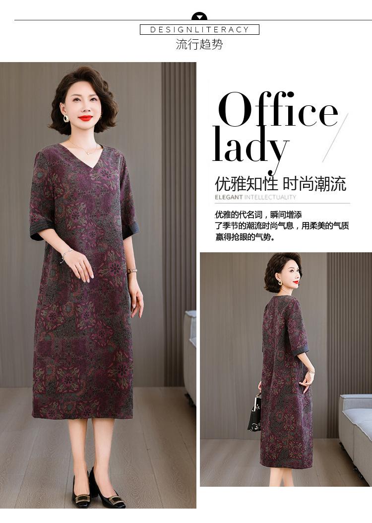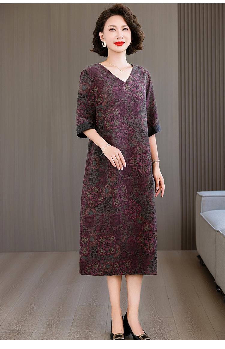 Vestido estampado con cuello en V, moderno, de lujo ligero, de alta gama, largo hasta la pantorrilla, temperamento elegante, seda de morera, falda línea A
