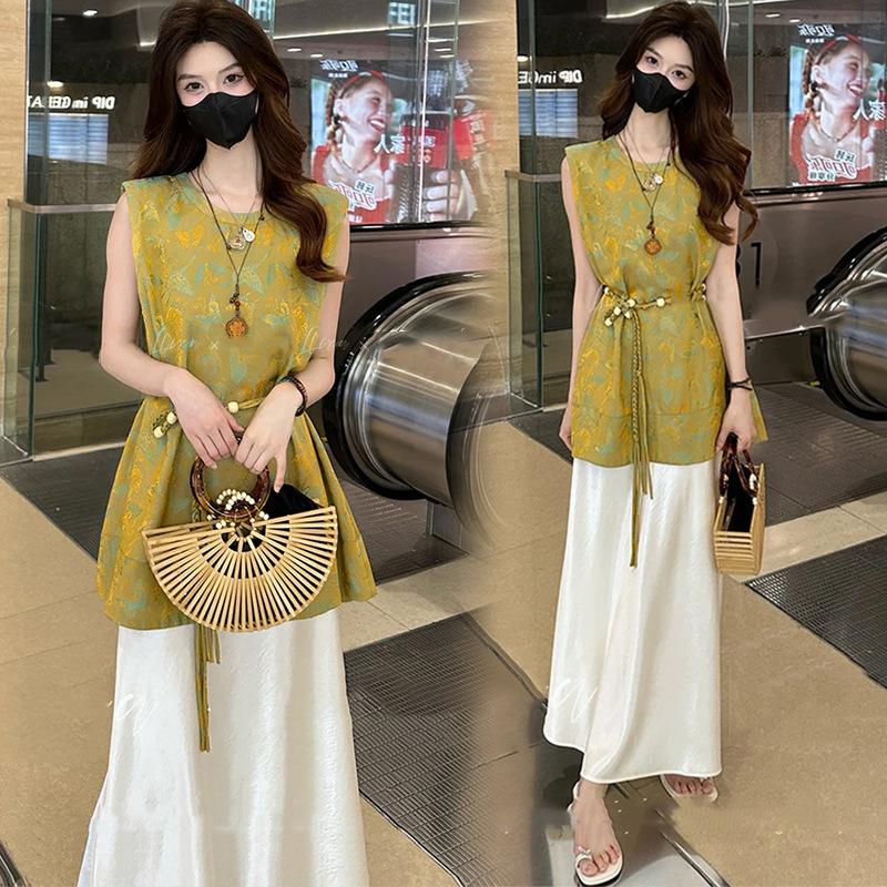 2025 Verano Nuevo Nuevo Traje de Moda China Falda Chaleco Delgado Estilo Extranjero Falda Conjunto de Dos Piezas para Mujer