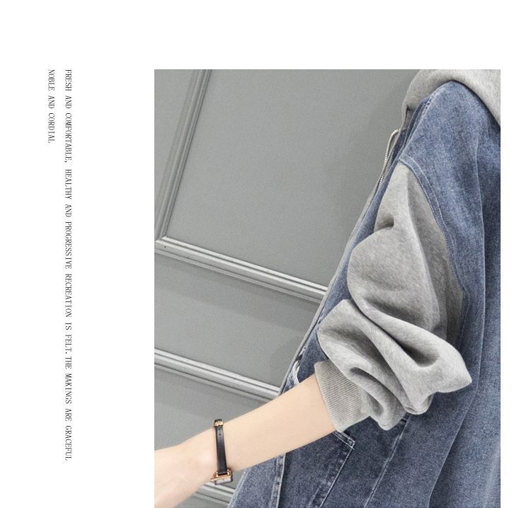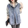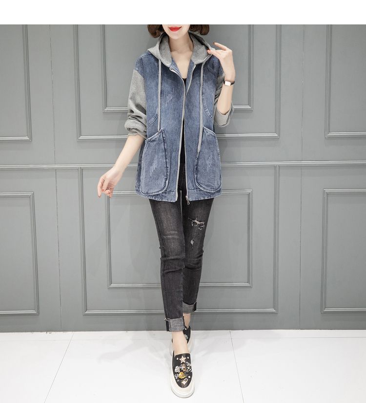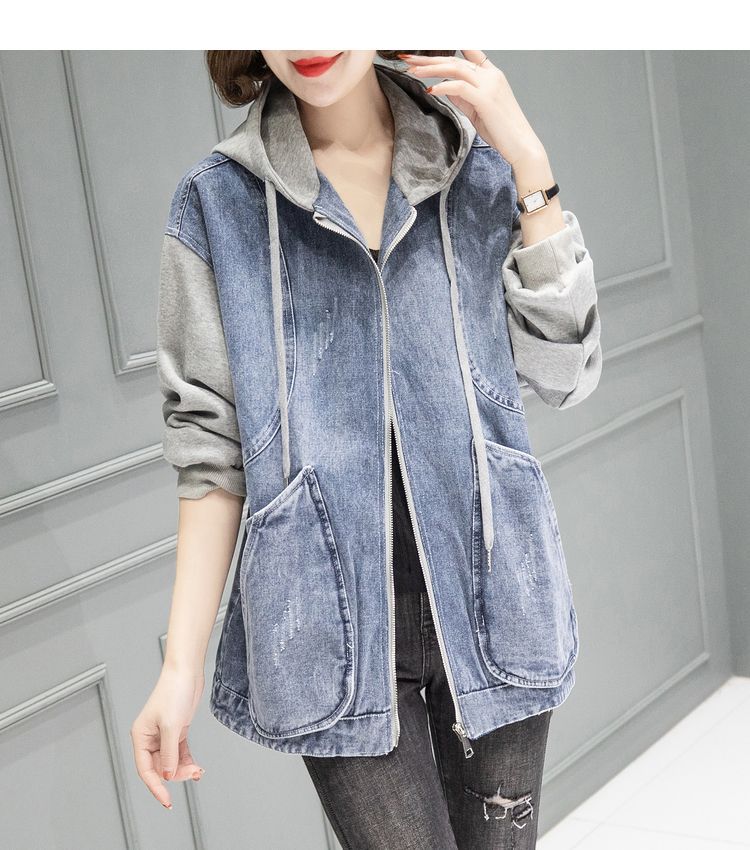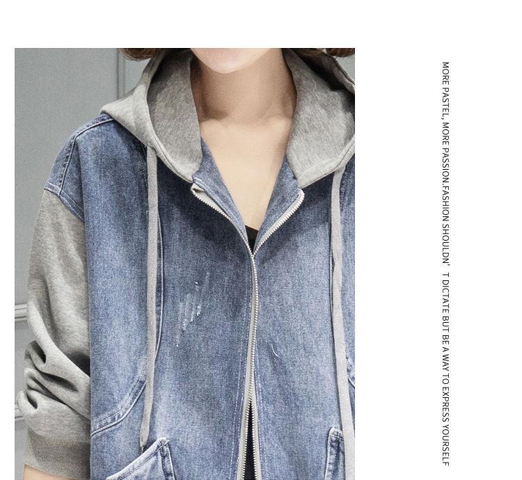 Chaqueta de mezclilla con capucha para mujer Primavera y Otoño Nuevo Talla Grande Moda Corta Empalmada Suelta Versátil Top de Primavera para Personas Pequeñas