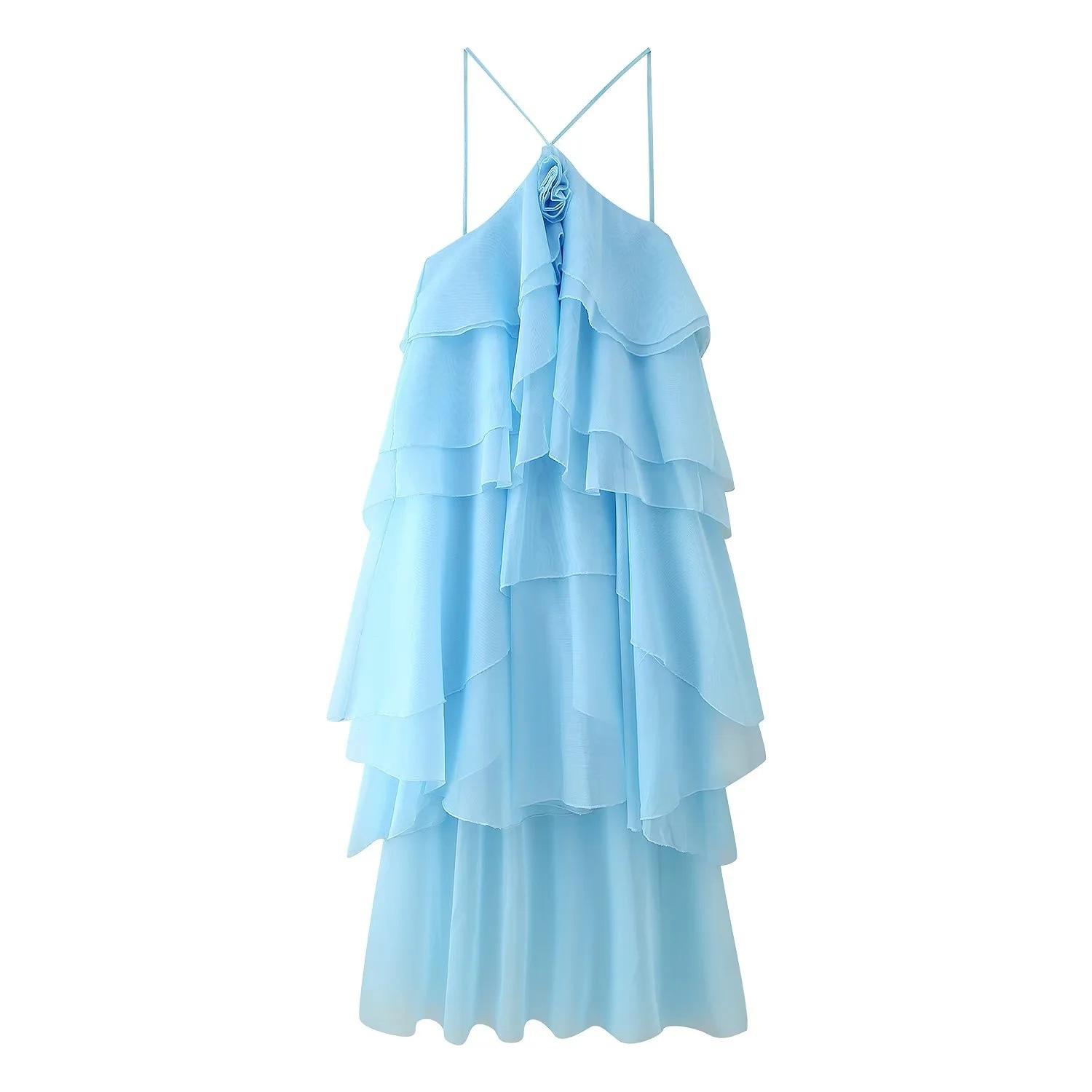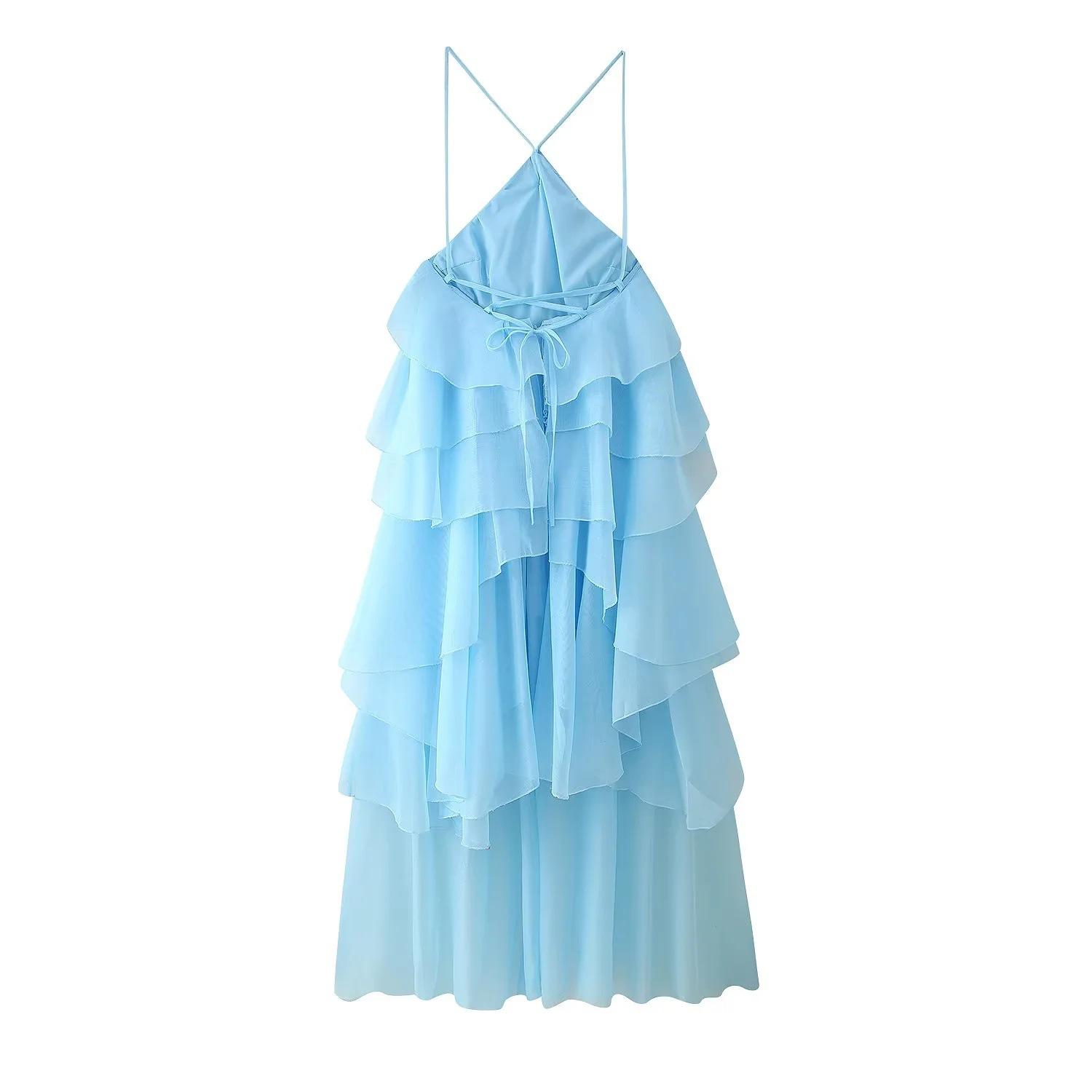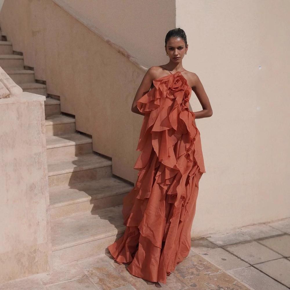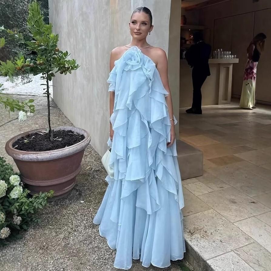 Ropa de Mujer Estilo Europeo y Americano Comercio Exterior Transfronterizo Tendencia de Moda Popular Fiesta Multicolor Cuello Halter Volantes Vestido Pomposo