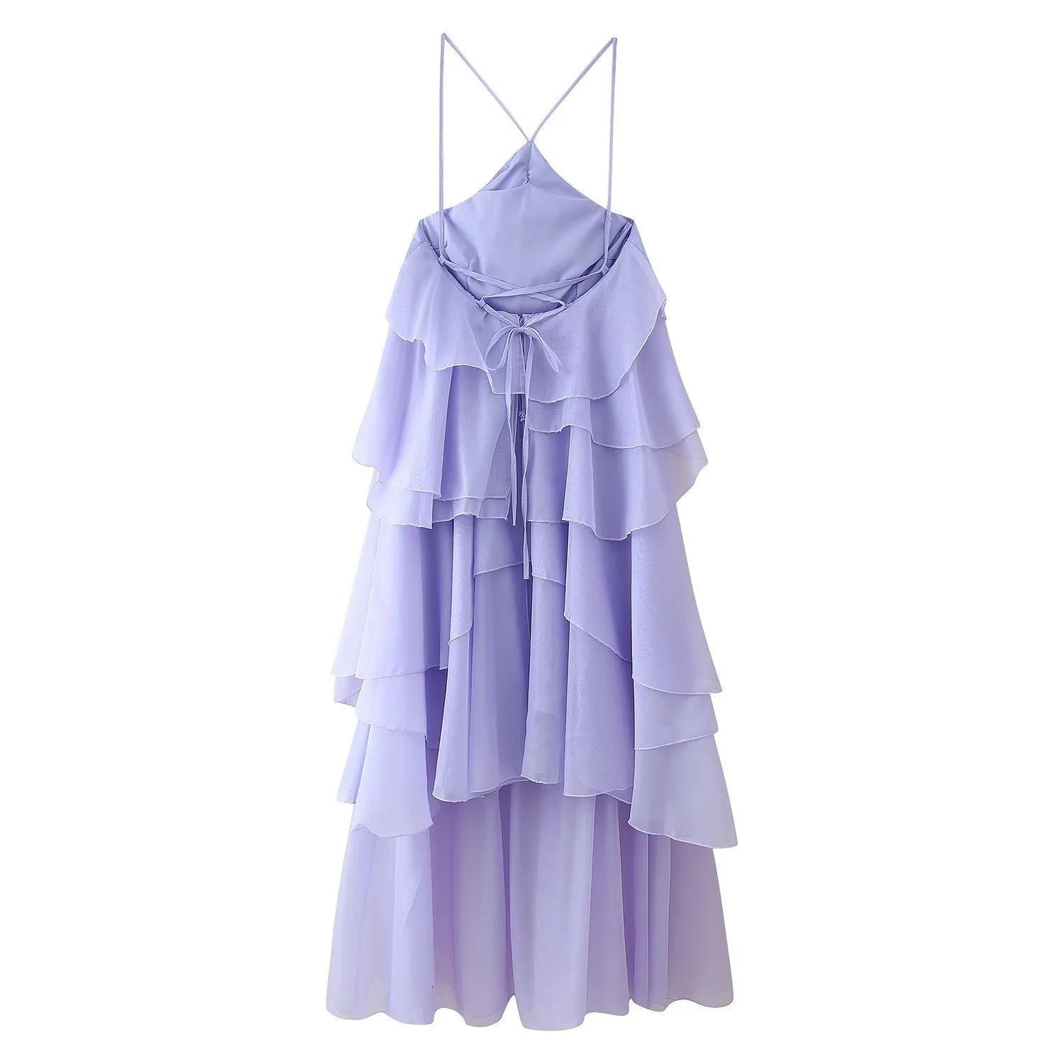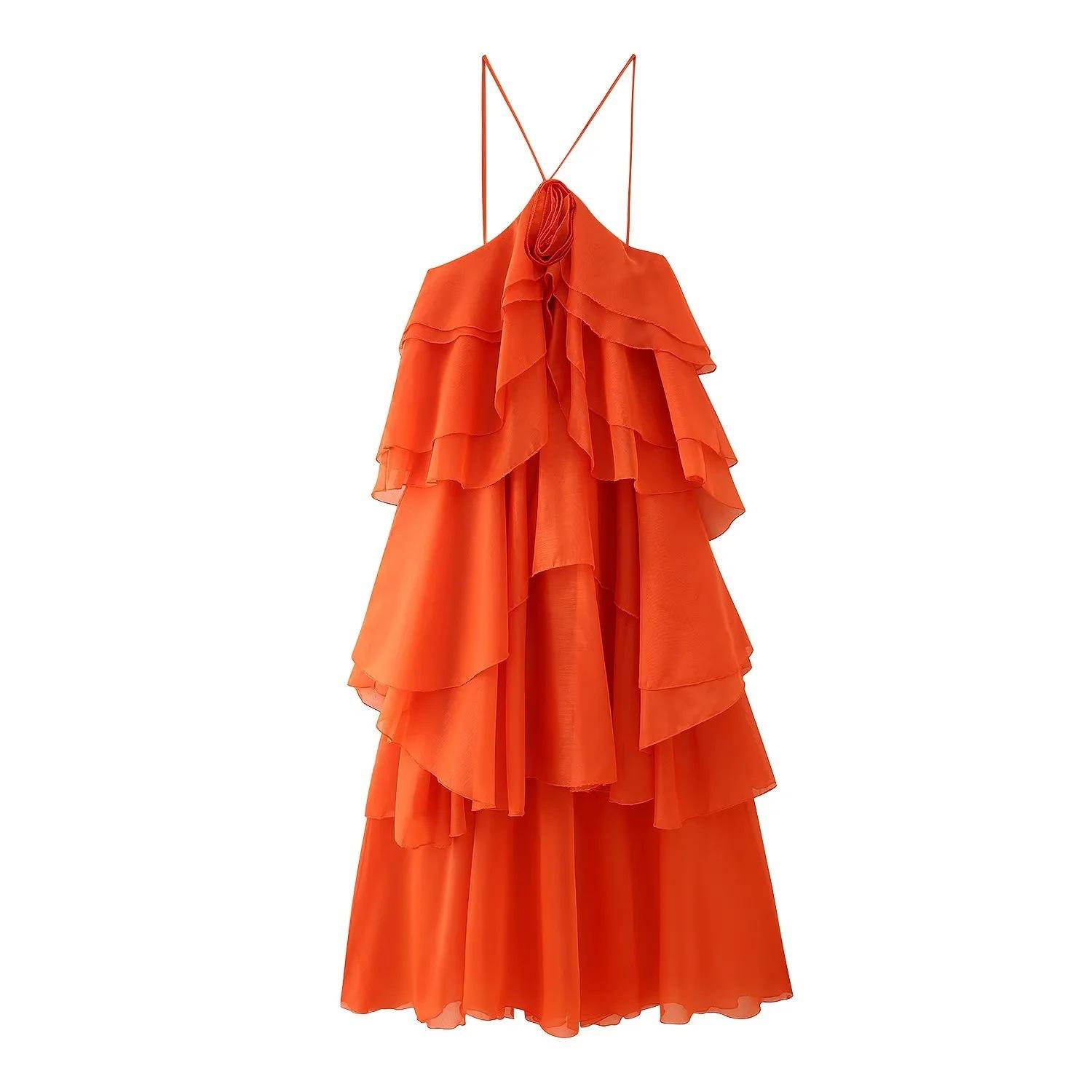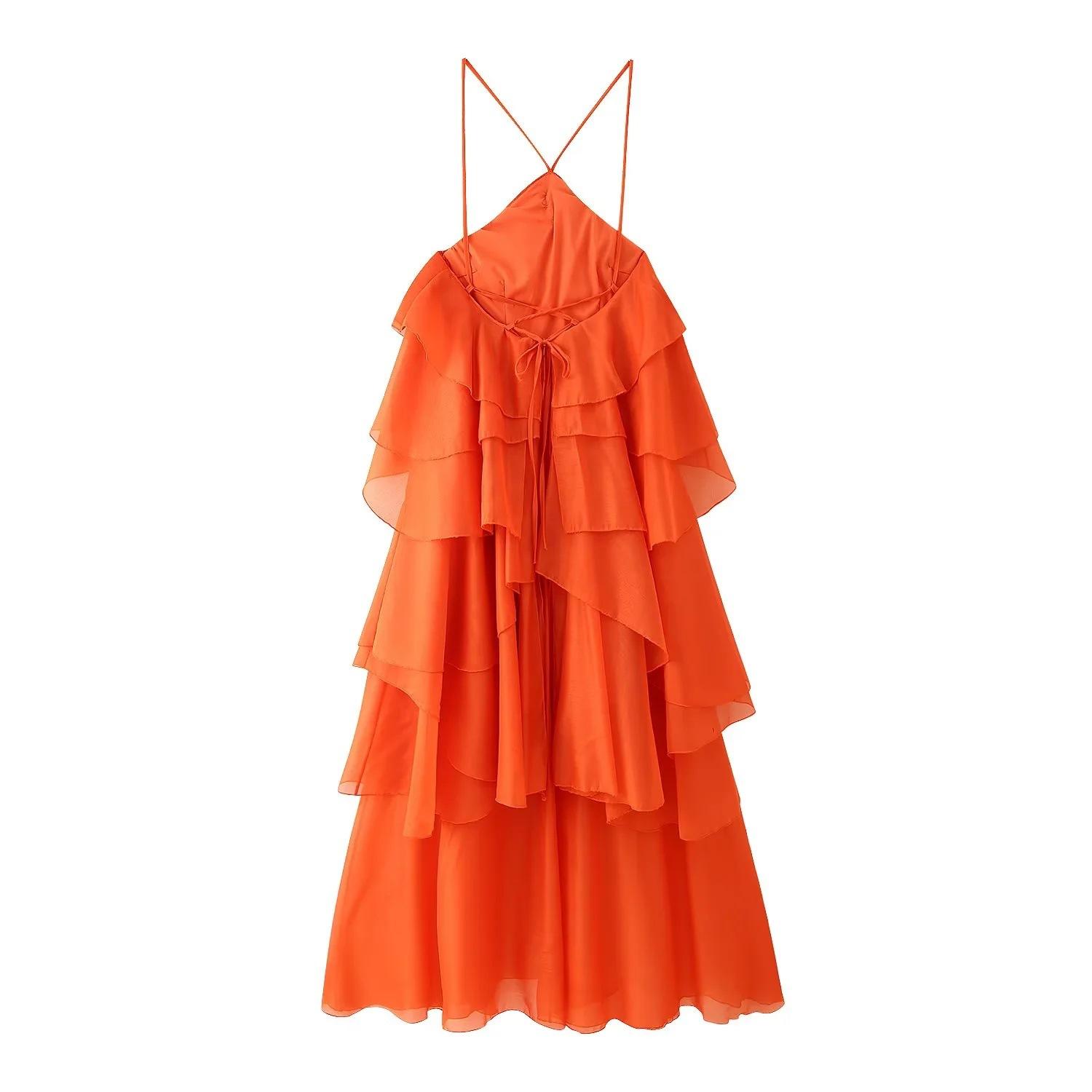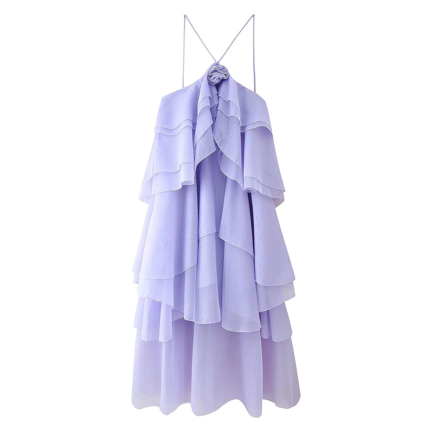 Ropa de Mujer Estilo Europeo y Americano Comercio Exterior Transfronterizo Tendencia de Moda Popular Fiesta Multicolor Cuello Halter Volantes Vestido Pomposo