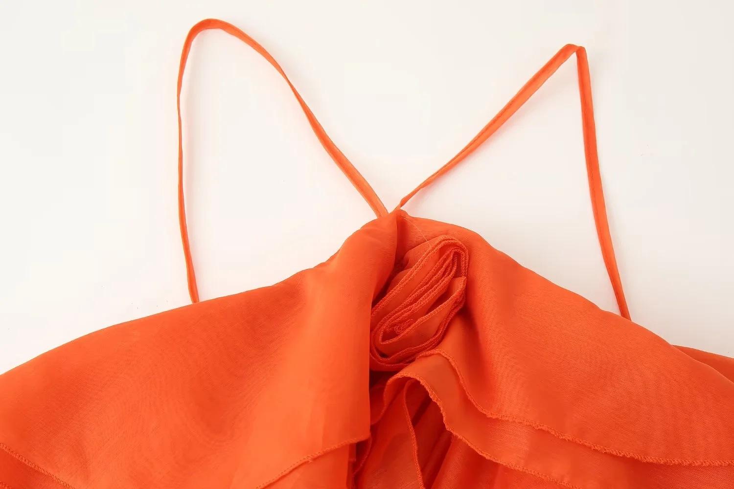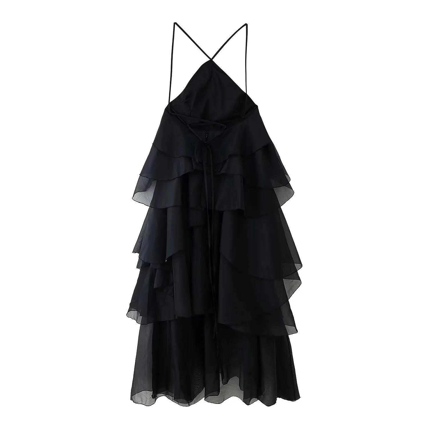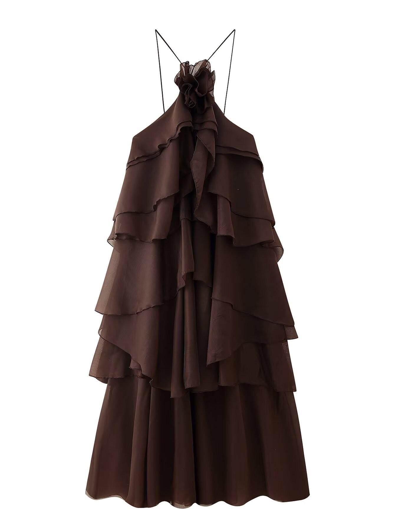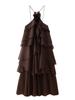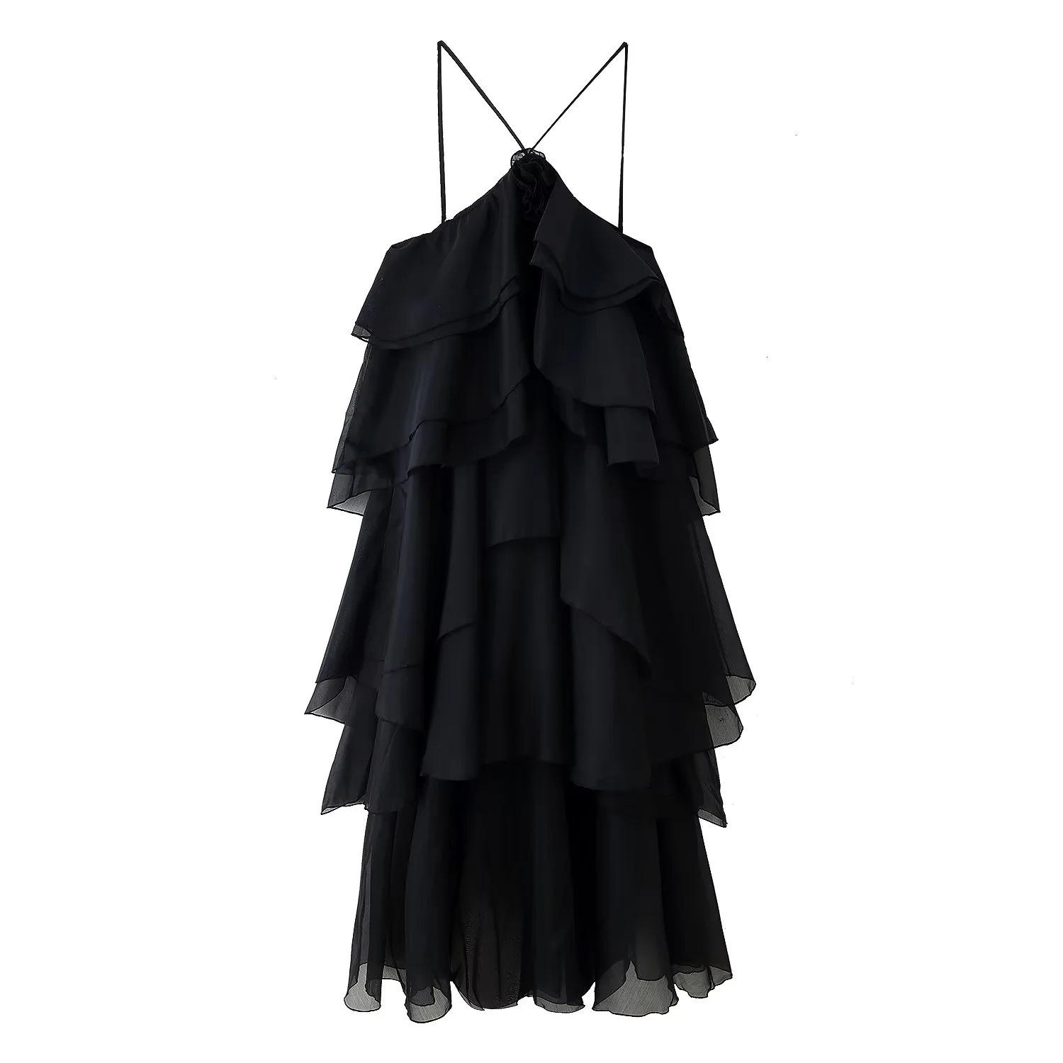 Ropa de Mujer Estilo Europeo y Americano Comercio Exterior Transfronterizo Tendencia de Moda Popular Fiesta Multicolor Cuello Halter Volantes Vestido Pomposo