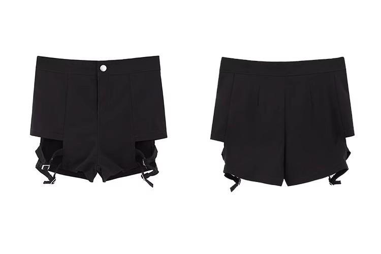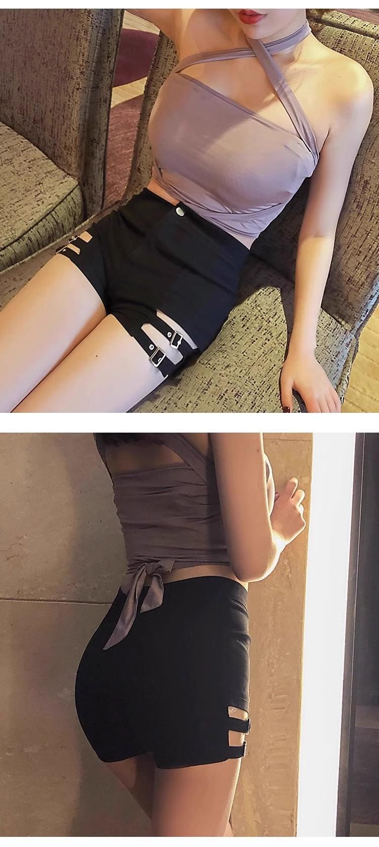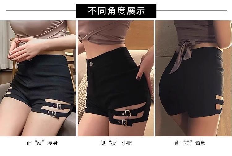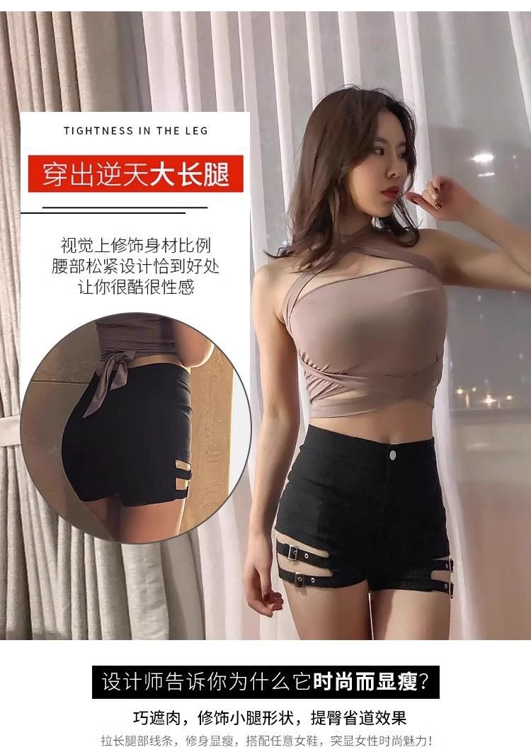Europeas y Americanas Ins Shorts Ajustados Sexy para Mujer Moda Primavera y Verano Leggings con Recortes y Tirantes de Cintura Alta Pantalones Cortos Elásticos que Cubren la Cadera