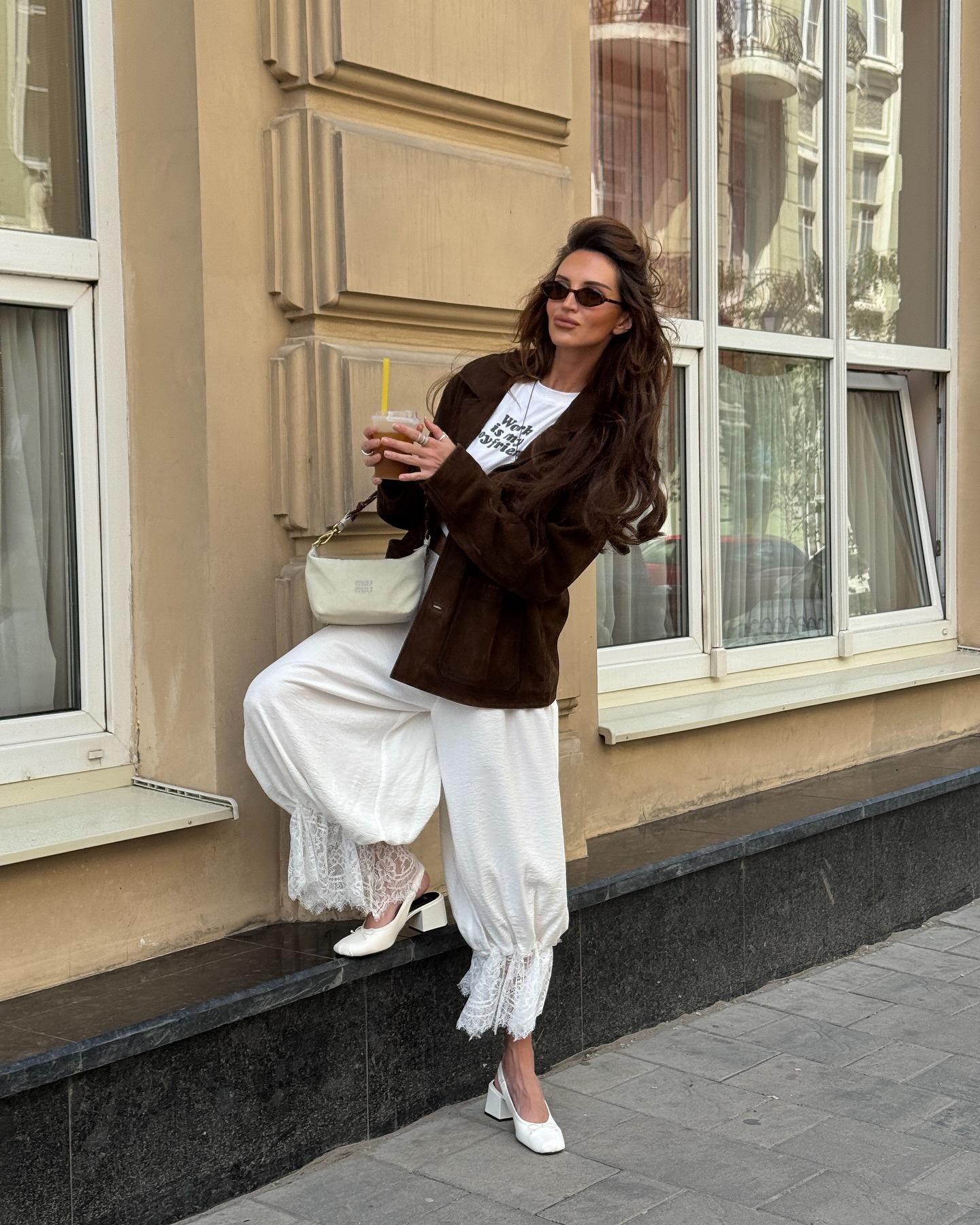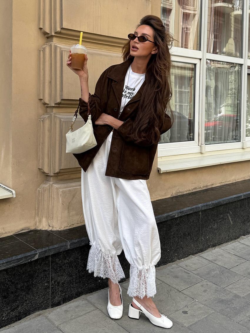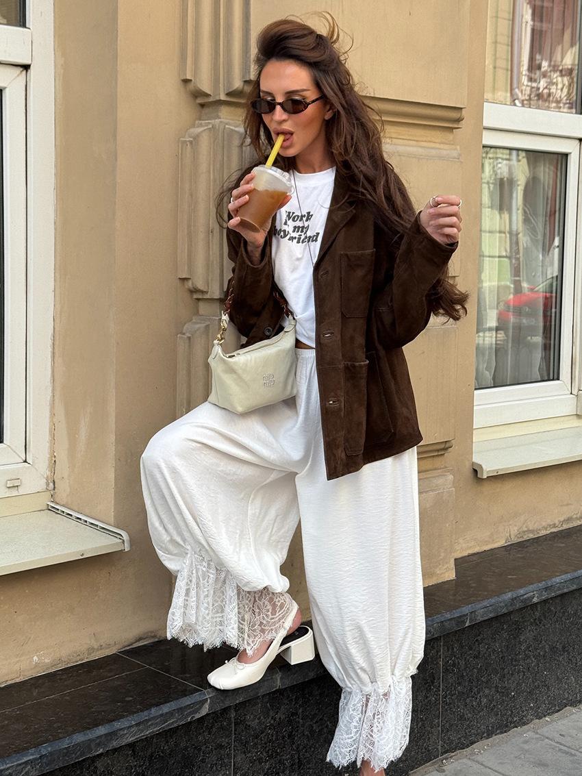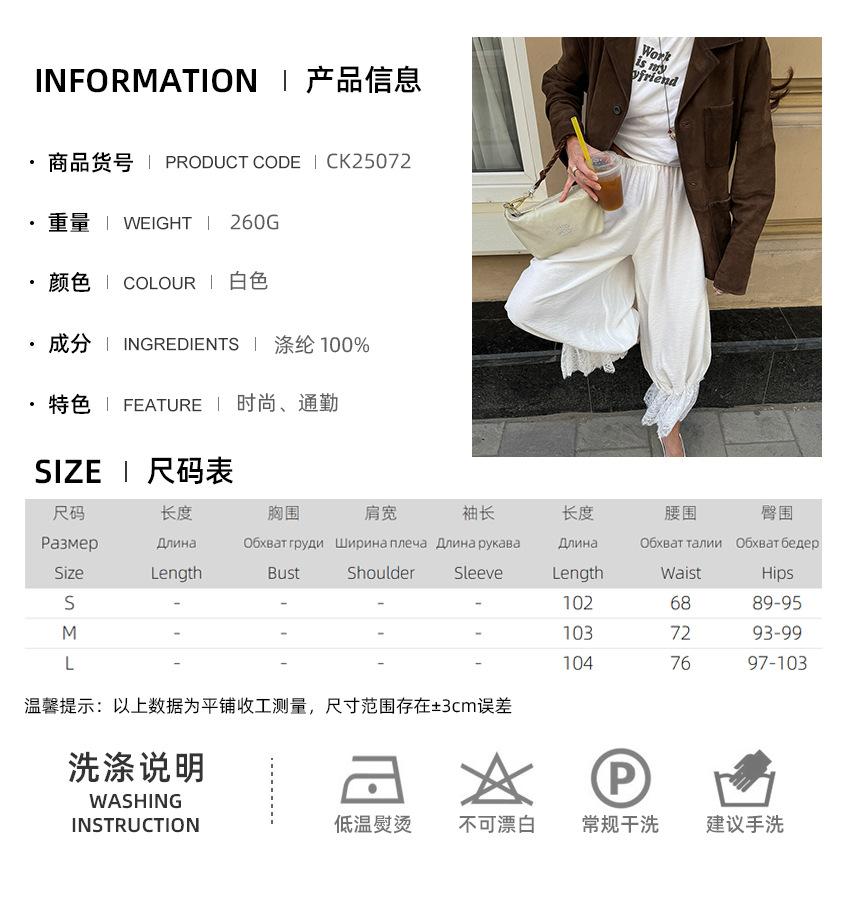 Otoño Nuevo Pantalón Largo Blanco de Encaje Suelto para Mujer con Sentido del Diseño, Elegante y Casual para Traslados Transfronterizos 2025