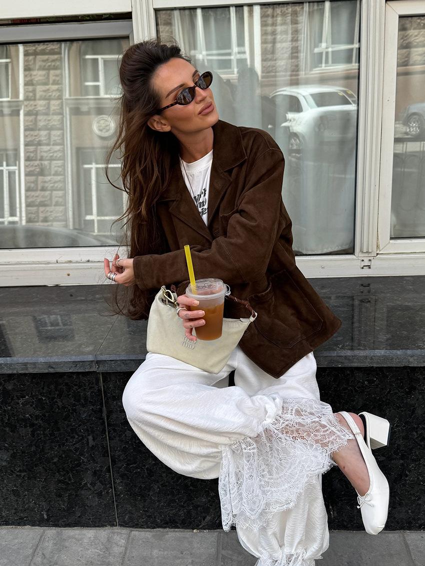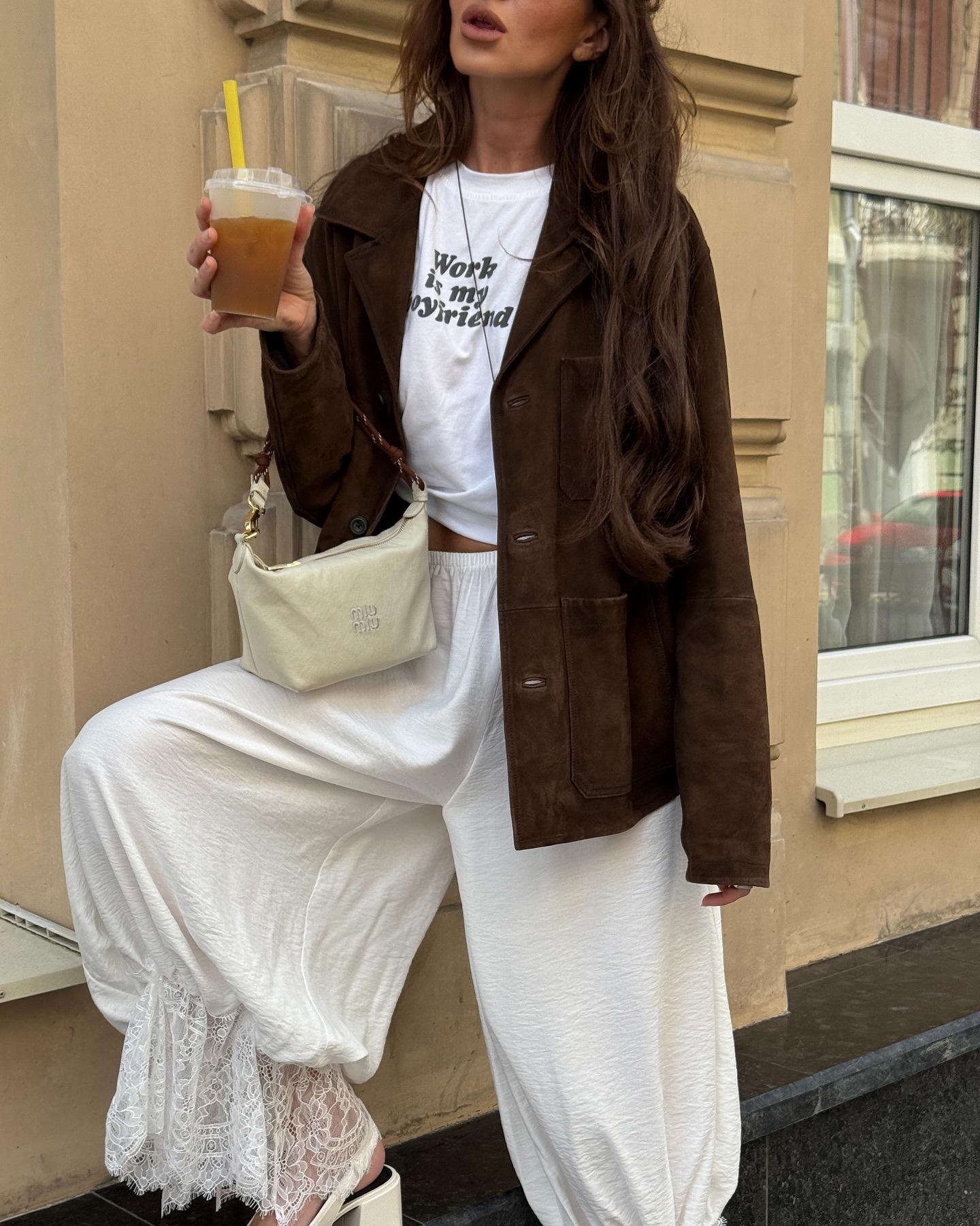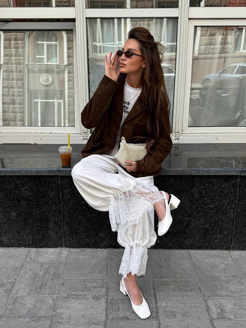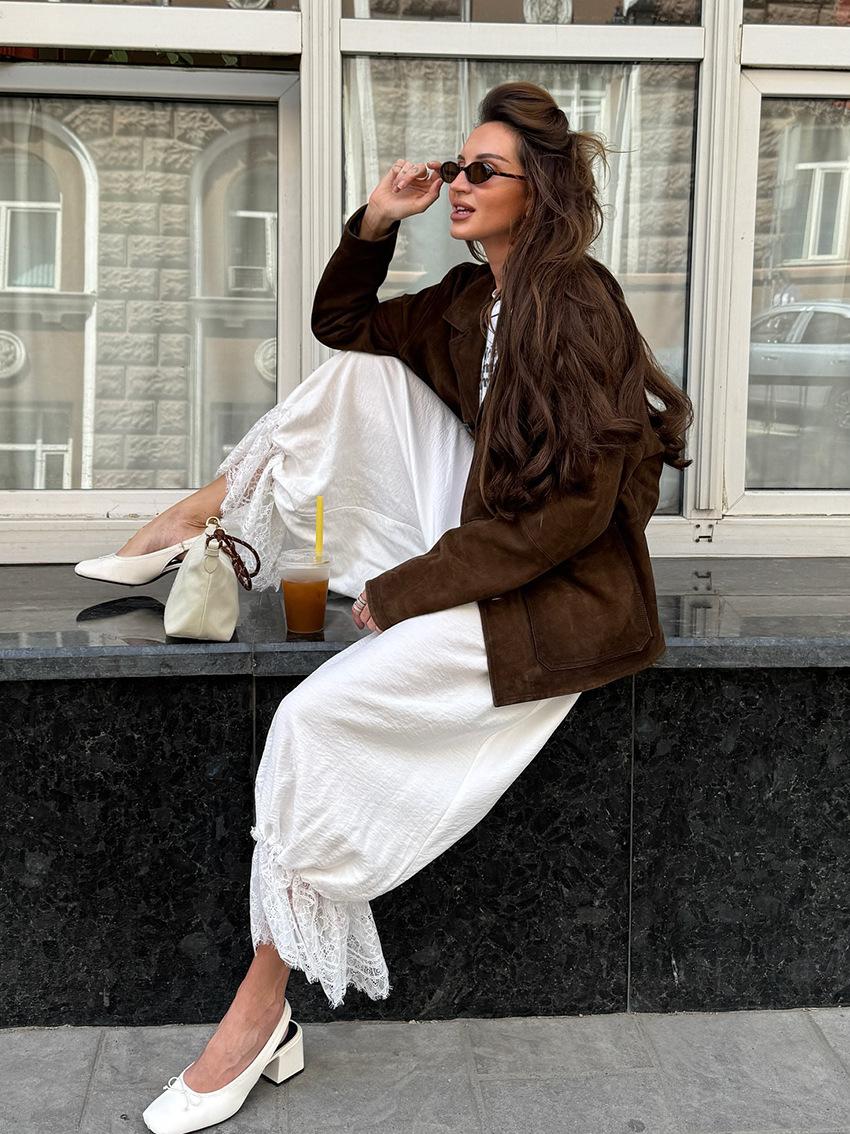Otoño Nuevo Pantalón Largo Blanco de Encaje Suelto para Mujer con Sentido del Diseño, Elegante y Casual para Traslados Transfronterizos 2025