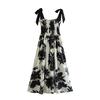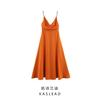2025 Nueva Ropa de Verano para Mujer Estilo Europeo y Americano Moda Sencilla Cintura Sexy Espalda Descubierta Falda Larga