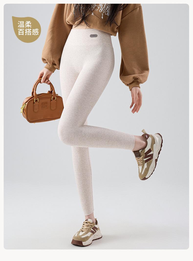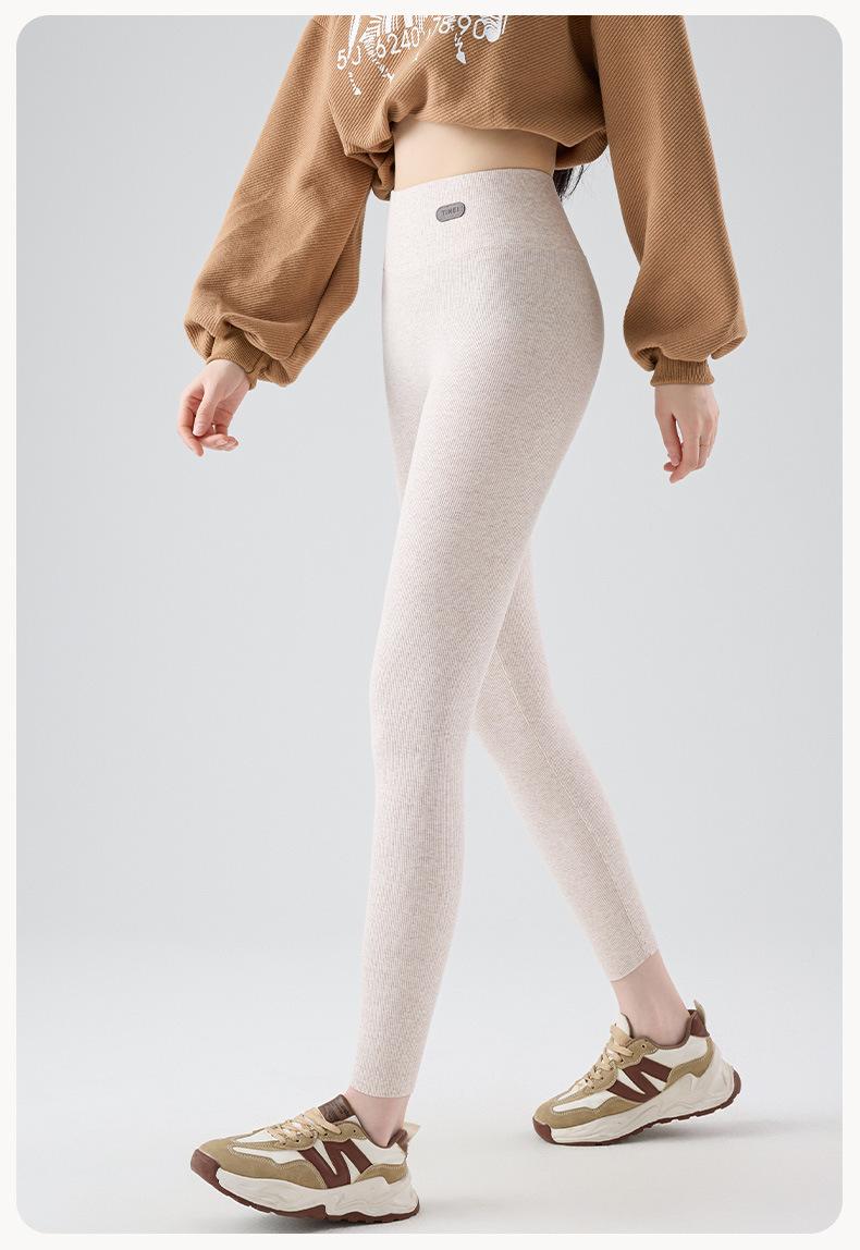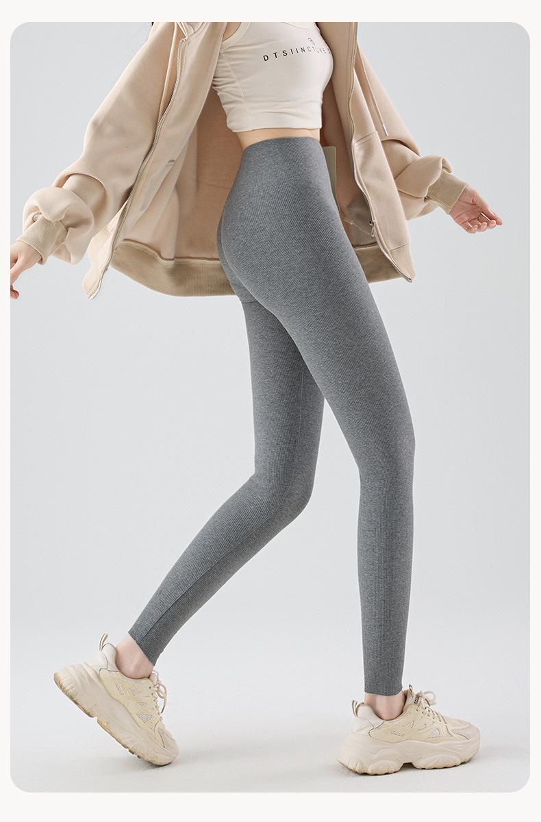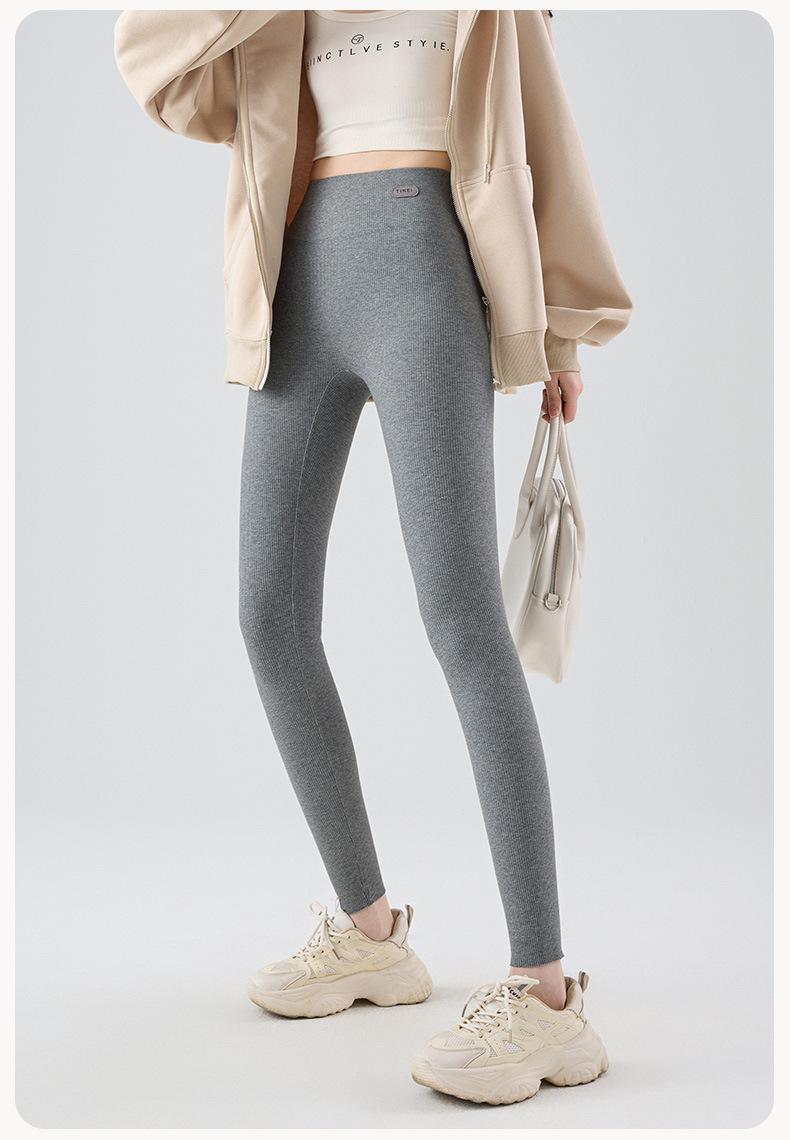 Leggings Delgados de Primavera y Otoño para Mujer, Cintura Alta, Sin Costuras, Pantalones Nueve Puntos Acanalados de Algodón Puro, Talla Grande, Adelgazantes y Elásticos