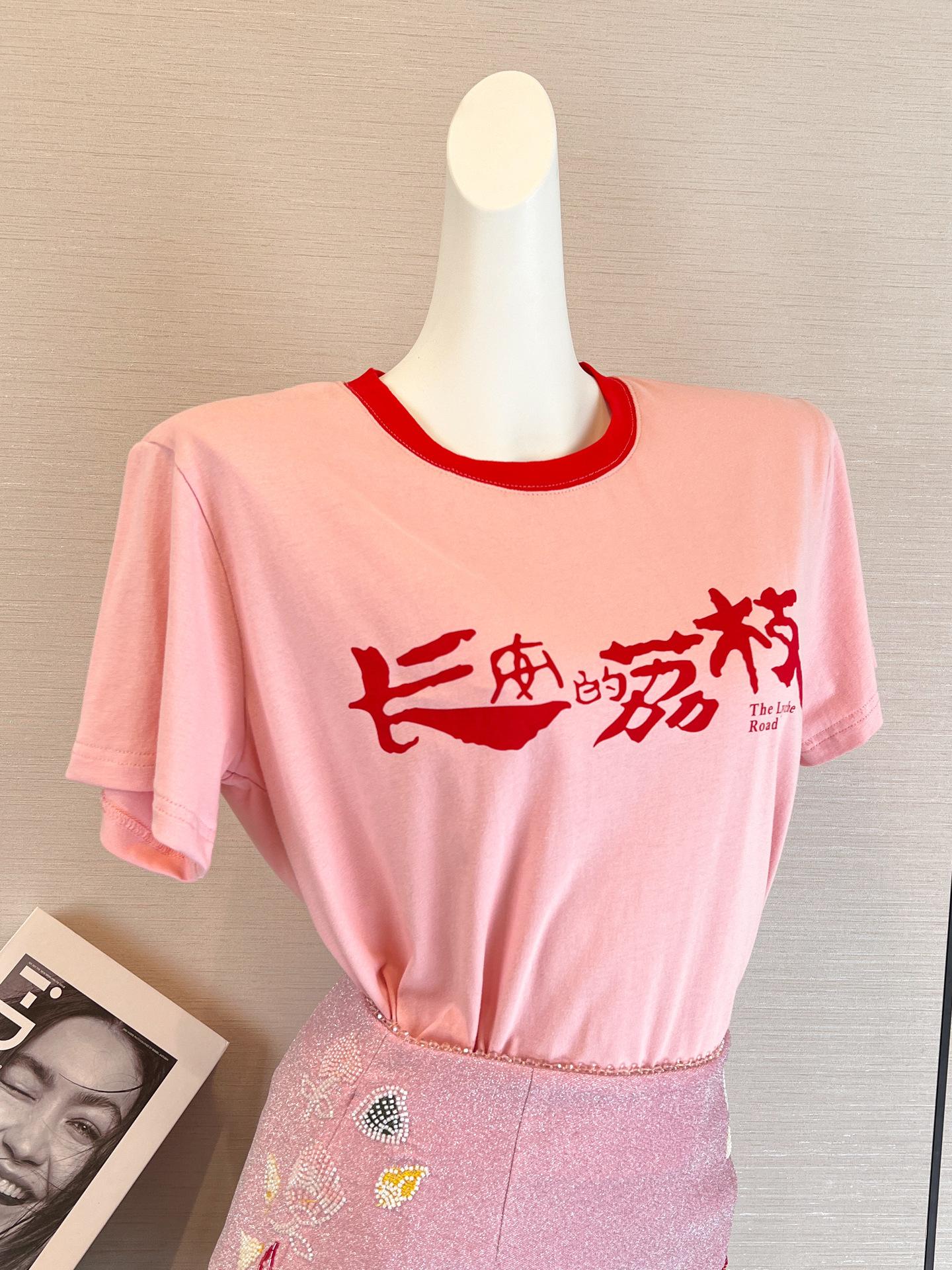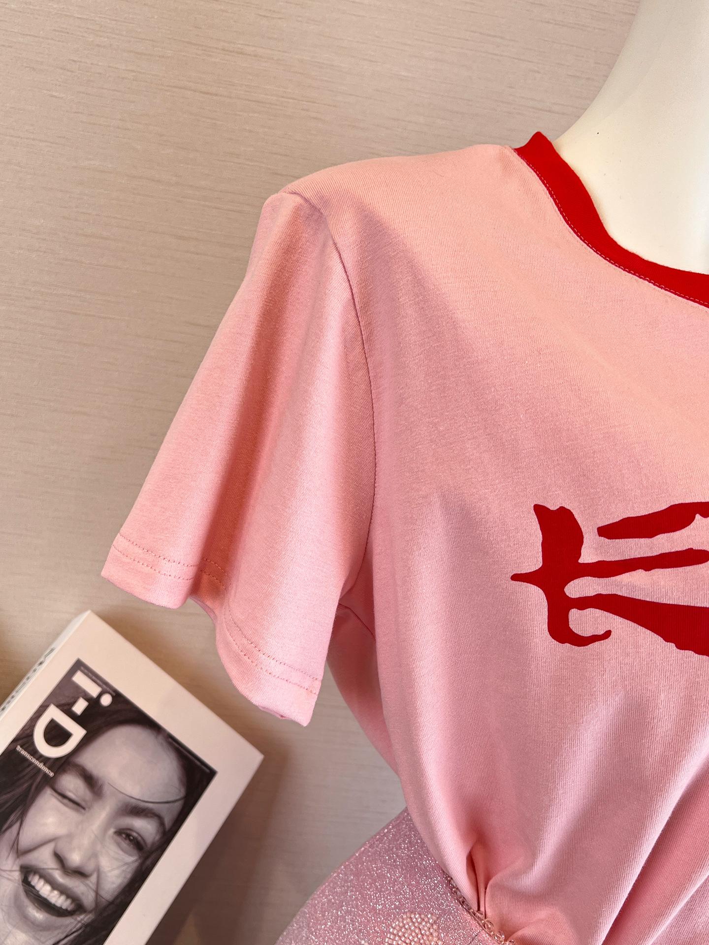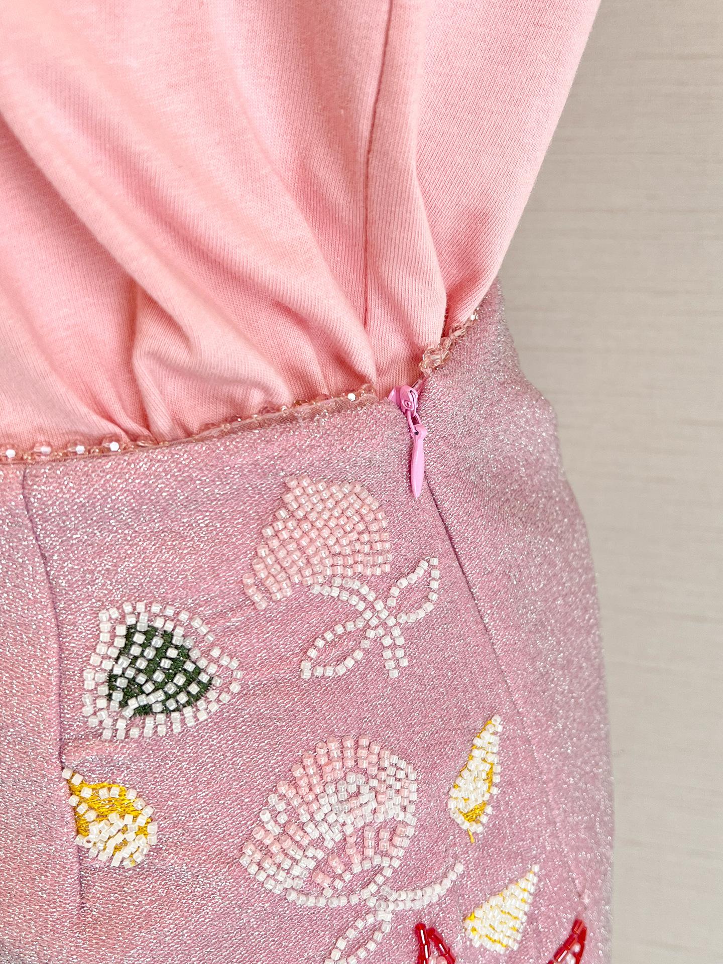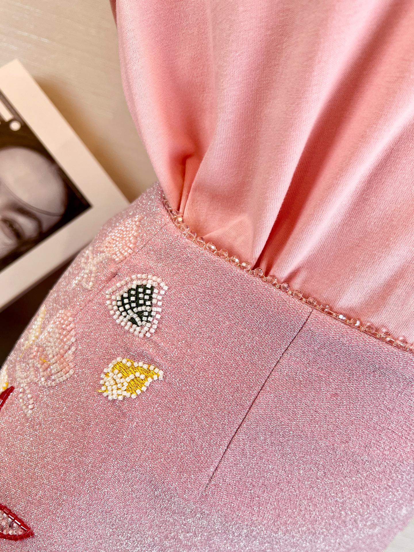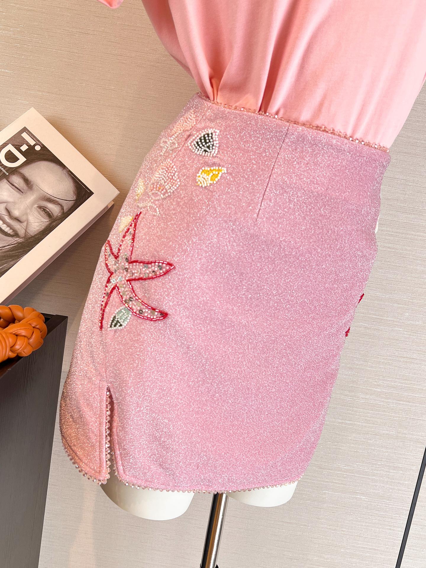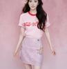 ATB70213-Pink T-shirt, ATB70213-Pink Embroidered Half Skirt, ATB70213-Plain T-shirt