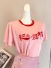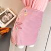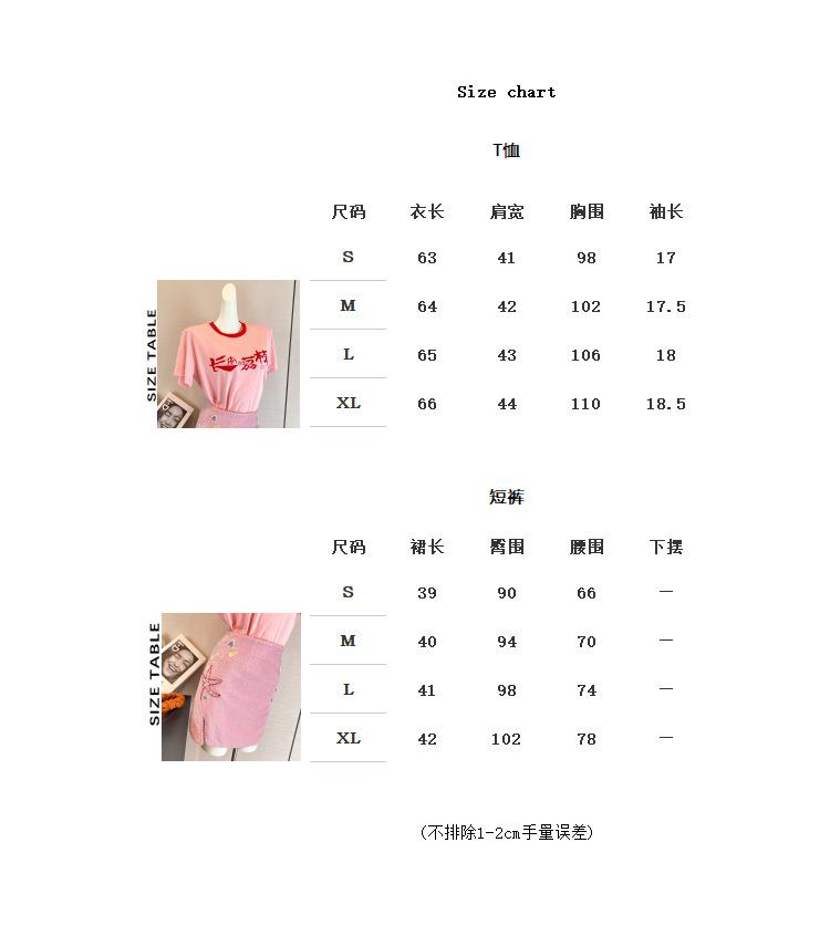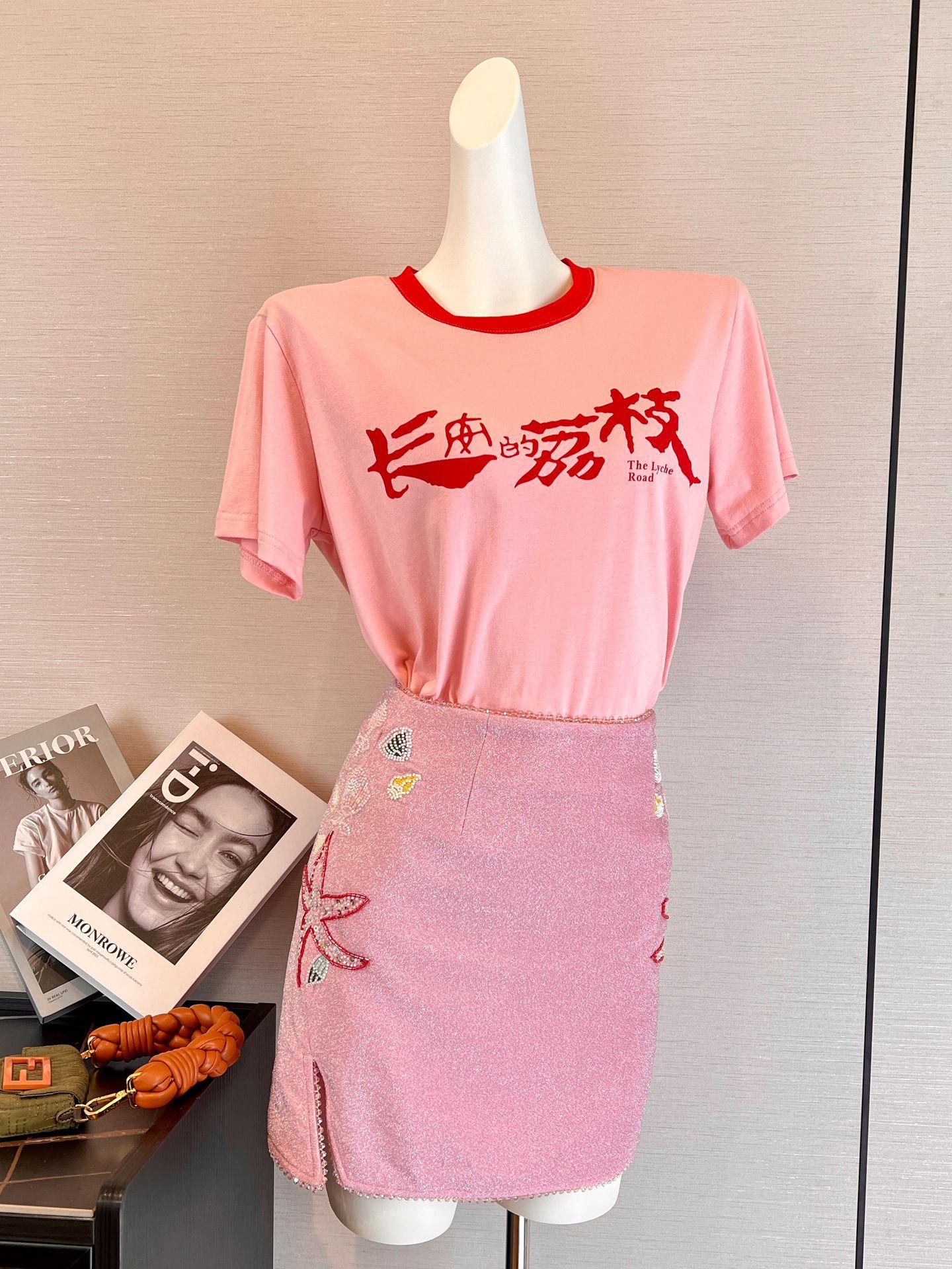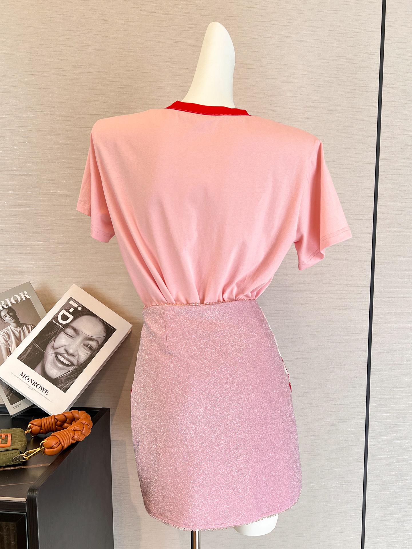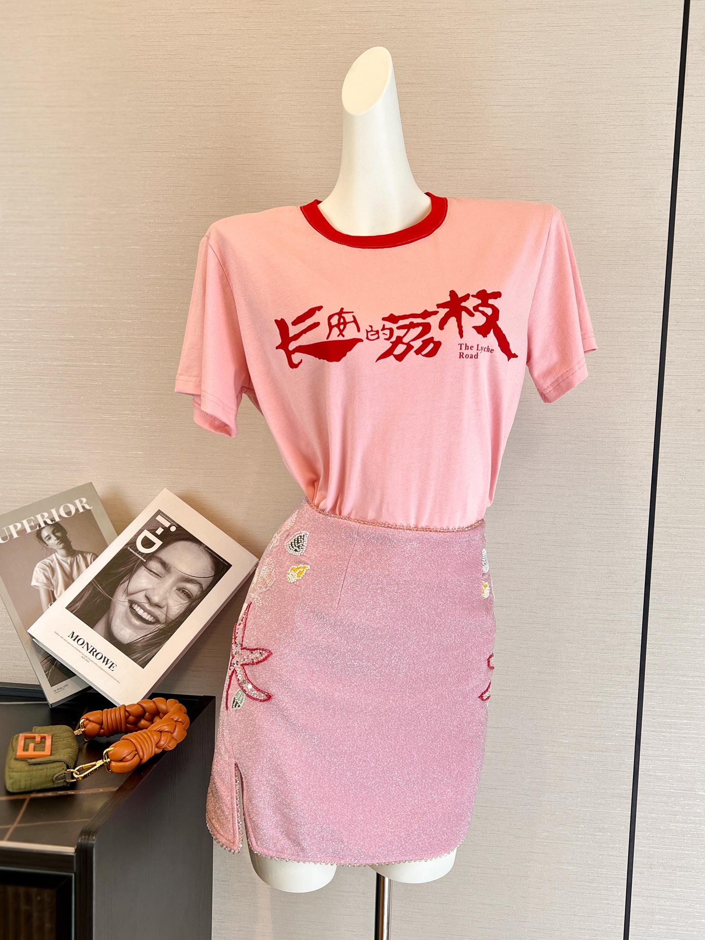 2025 Nuevo Verano Rosa Lichi Cuello Redondo Dopamina Camiseta Media Falda Algodón Puro Manga Corta Casual Versátil Set