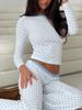 Traje Europeo y Americano Transfronterizo Floral Blanco de Manga Larga y Pantalón Casual y Cómodo Nuevo Encaje Cintura Baja Pantalón Ajustado Traje