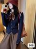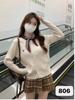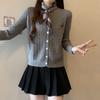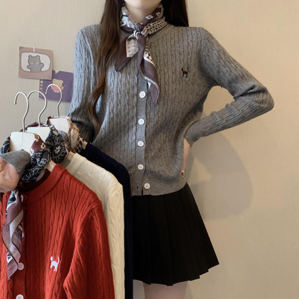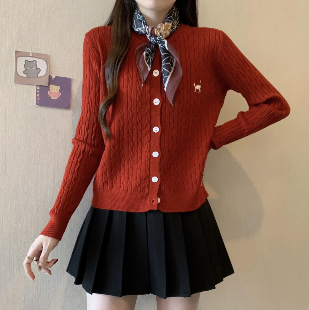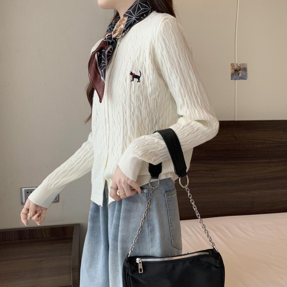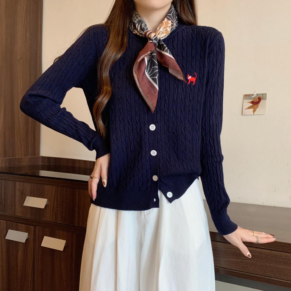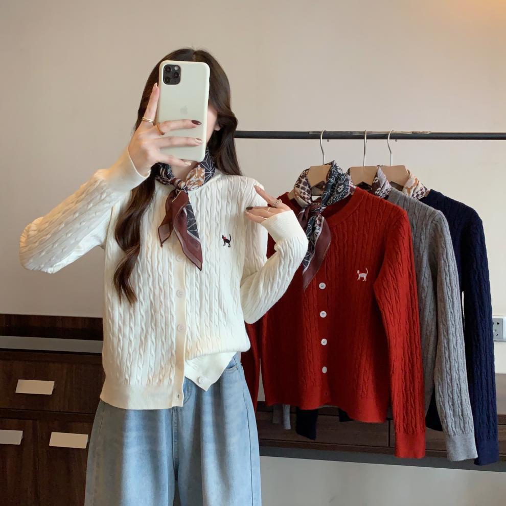 Foto Real de Cárdigan de Punto Trenzado Exquisito Bordado Versátil Casual Elegante de Otoño Talla Grande para Mujer con Bufanda de Seda a la Moda