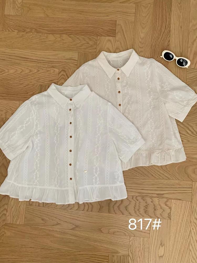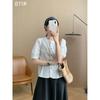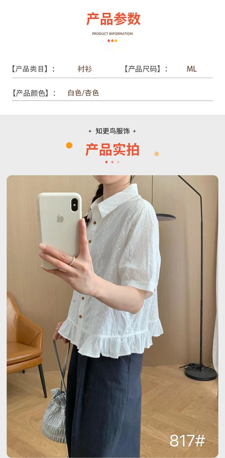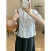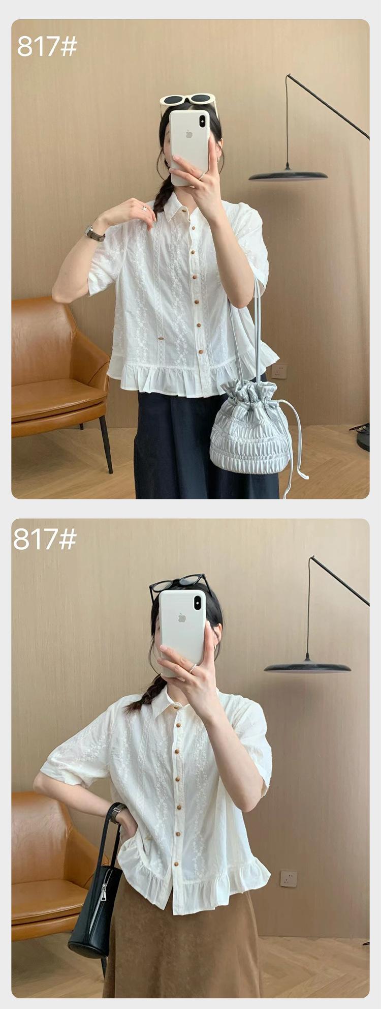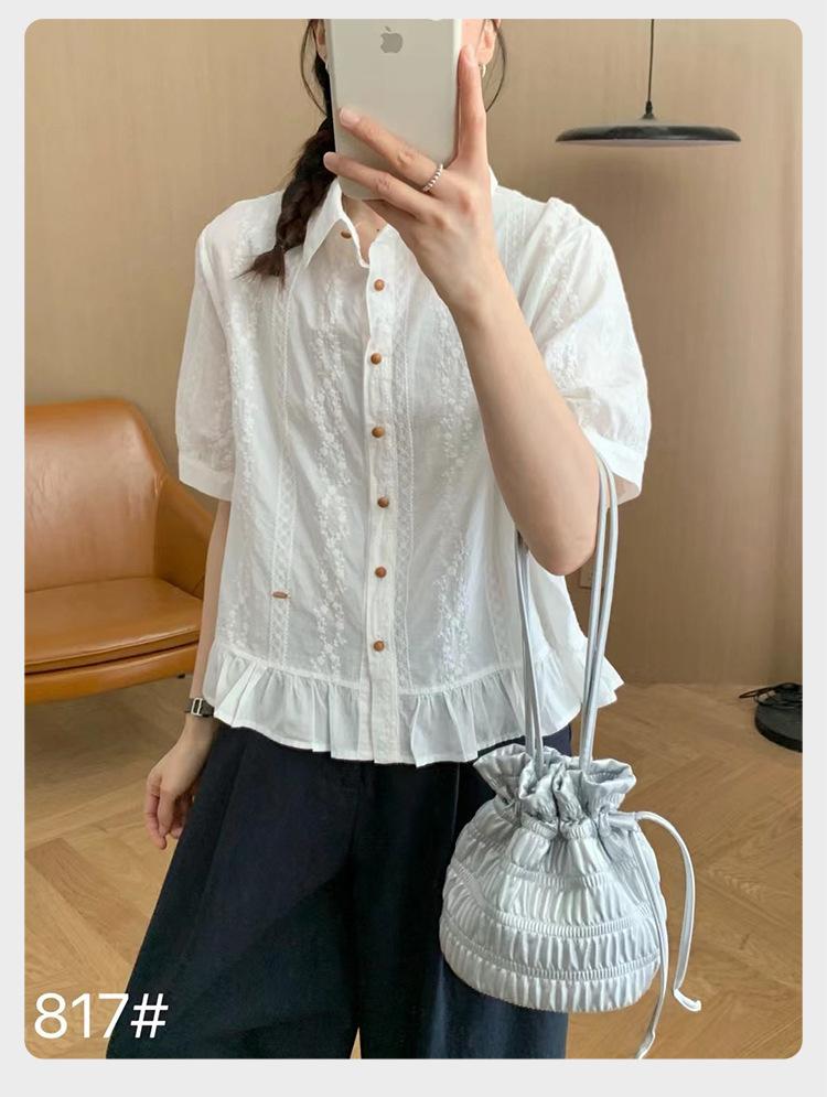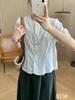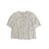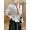 Arte Romántico Francés ~ Sentido del Diseño Nicho Camisa Floral para Mujer Manga Burbuja Hombro Algodón Fresco Camisa de Manga Corta