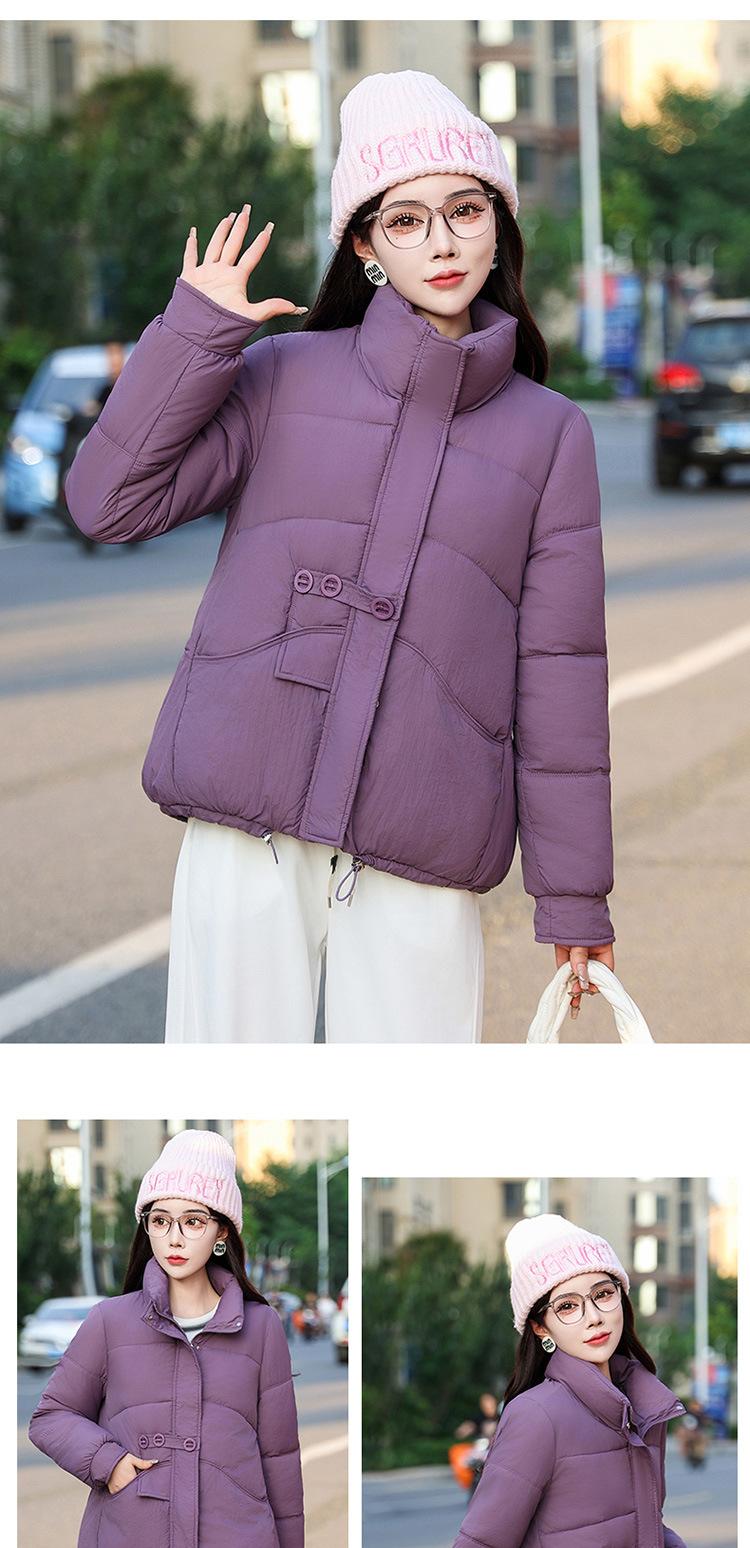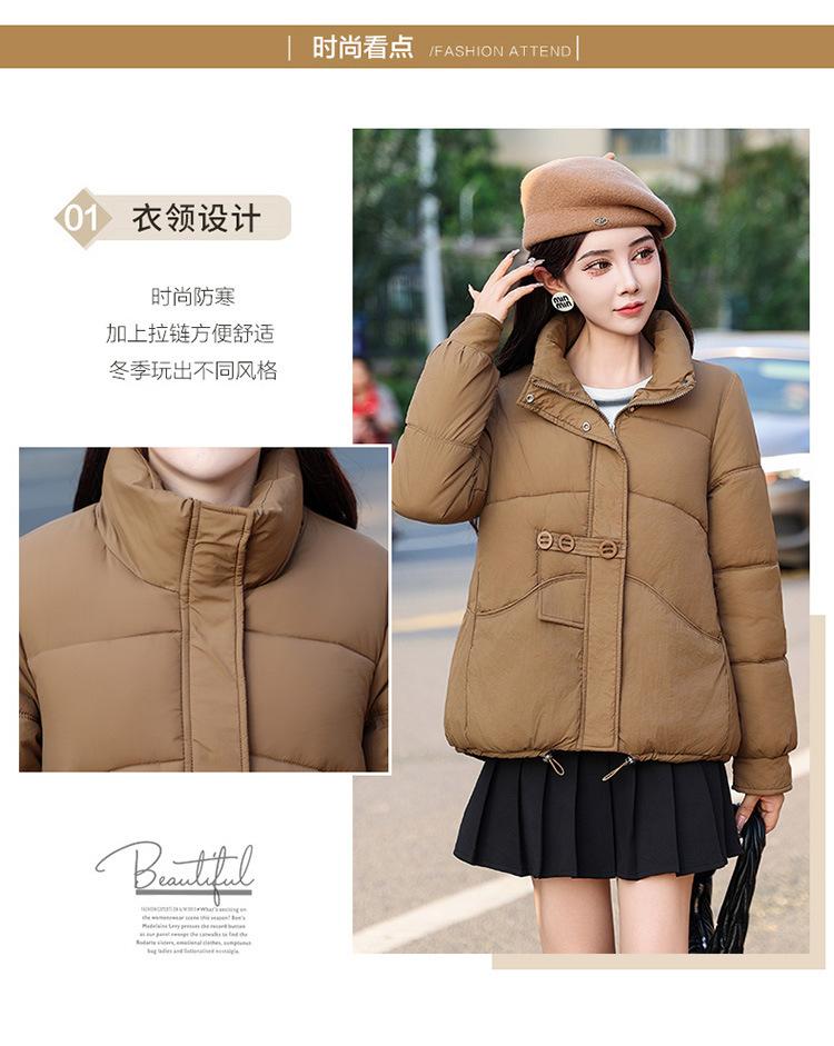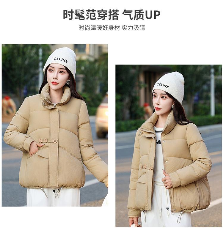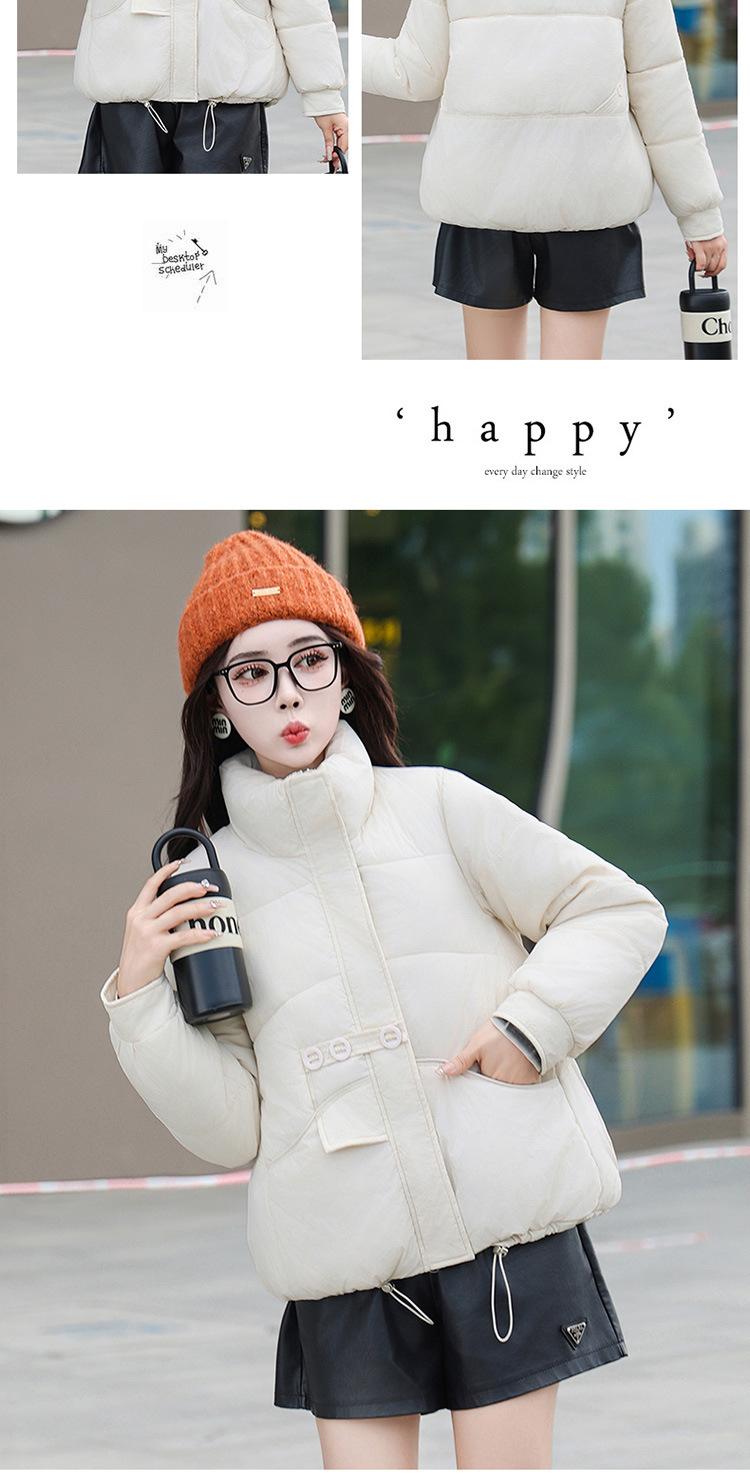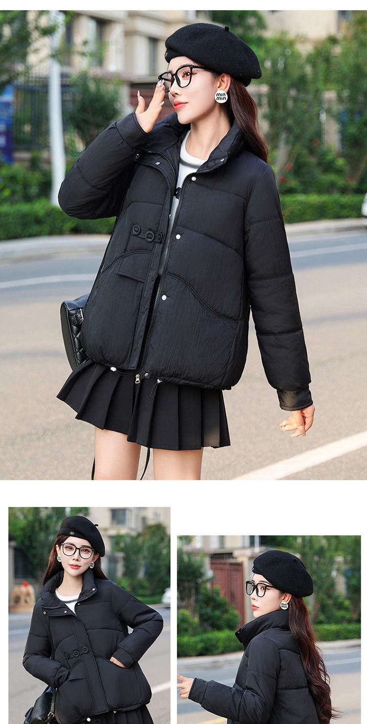 Chaqueta de Algodón Plumón Transfronteriza para Mujer, Corta de Alta Gama Popular Invierno Nueva Moda Cuello Alto Tres Botones Cálida Chaqueta Acolchada, Moderna