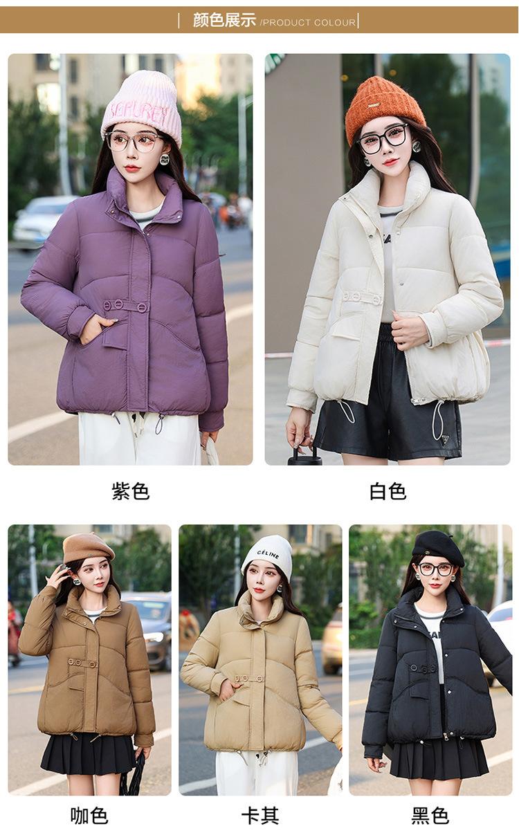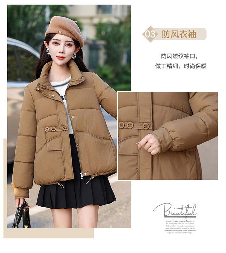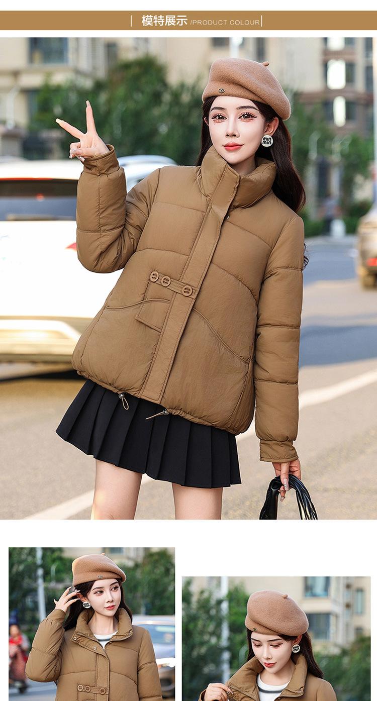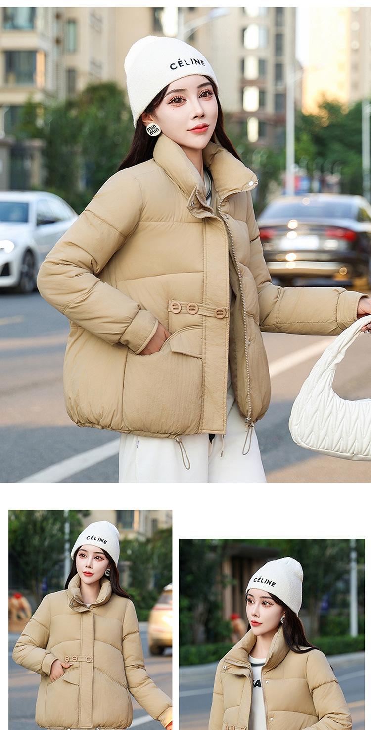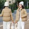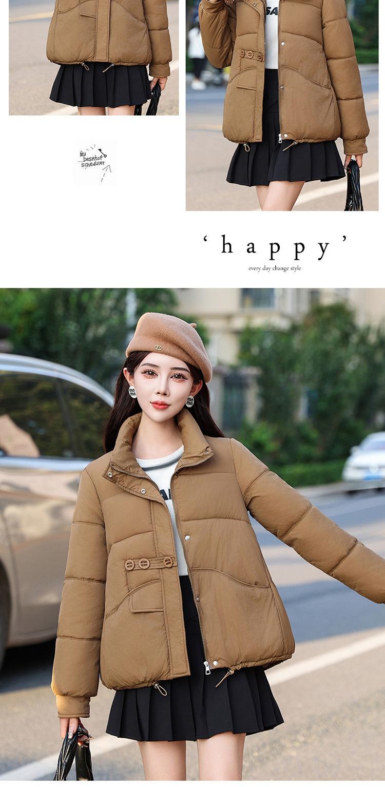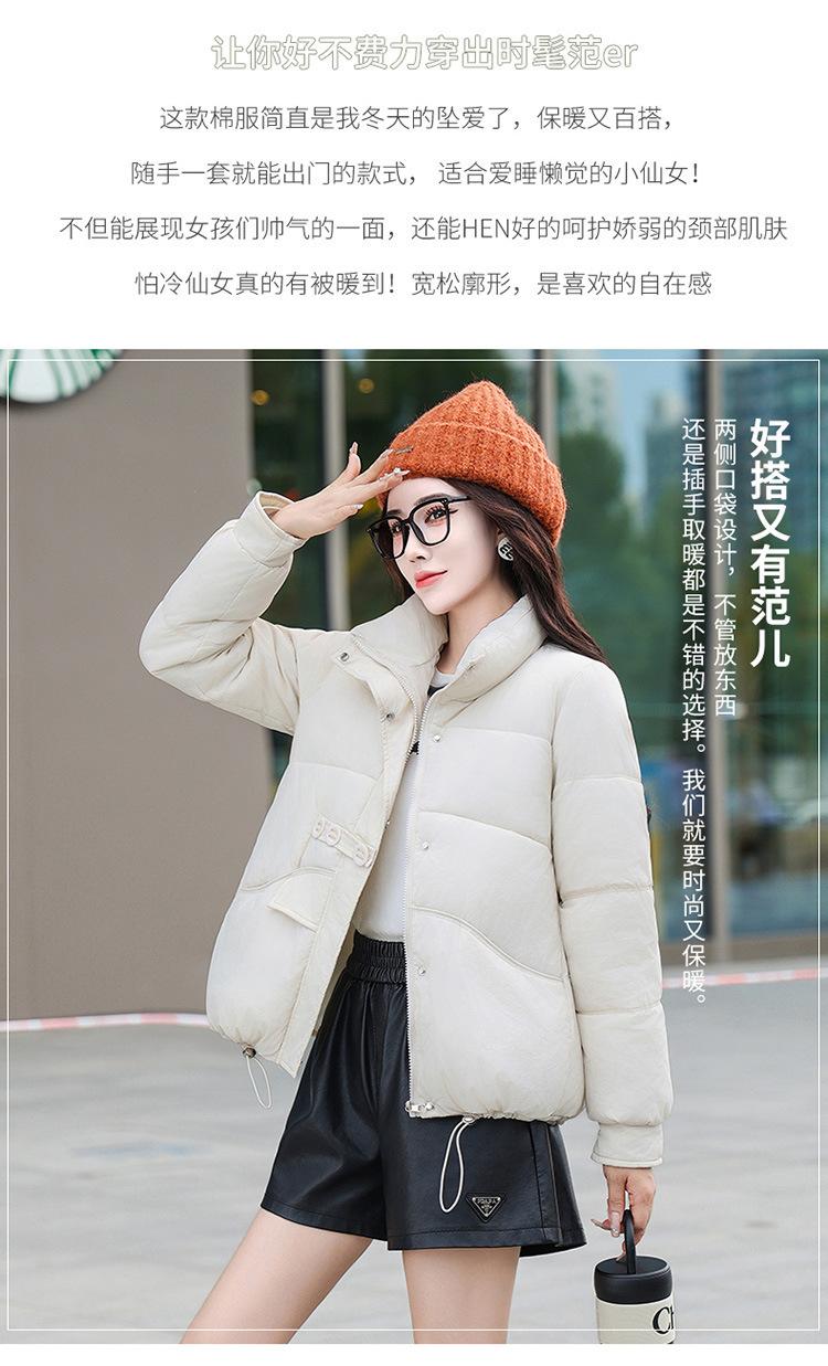 Chaqueta de Algodón Plumón Transfronteriza para Mujer, Corta de Alta Gama Popular Invierno Nueva Moda Cuello Alto Tres Botones Cálida Chaqueta Acolchada, Moderna