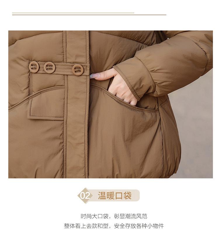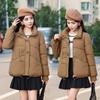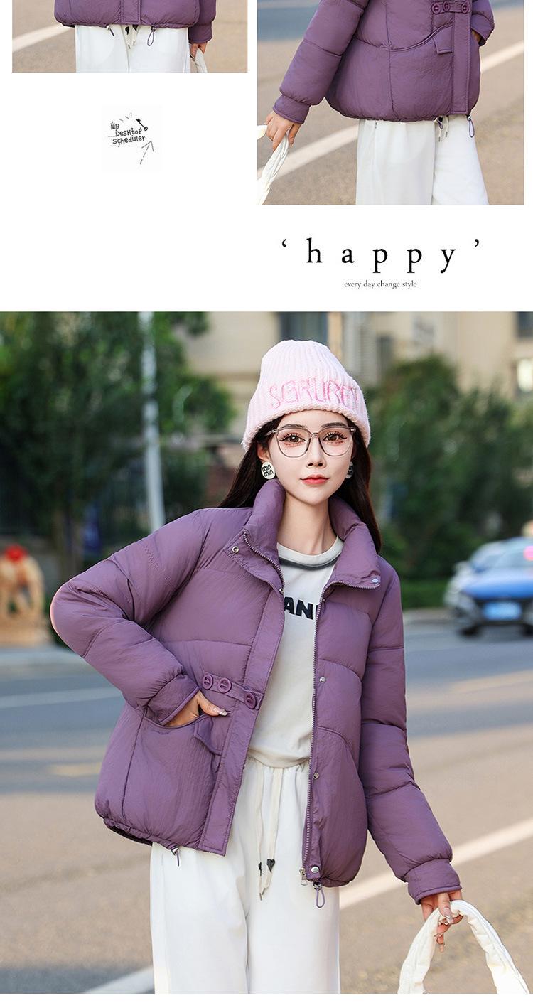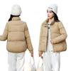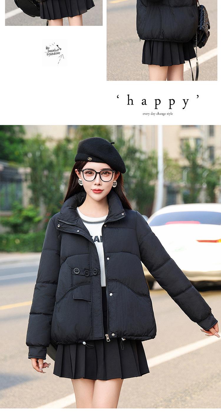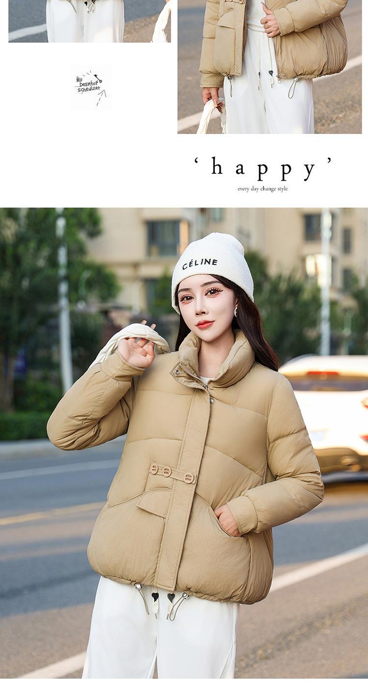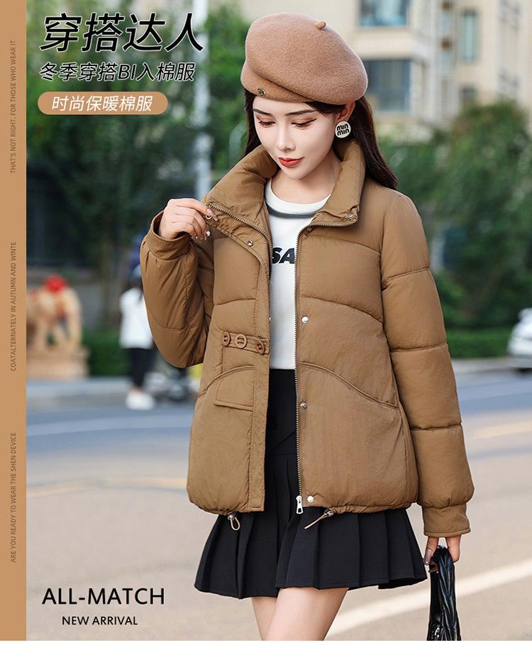 Chaqueta de Algodón Plumón Transfronteriza para Mujer, Corta de Alta Gama Popular Invierno Nueva Moda Cuello Alto Tres Botones Cálida Chaqueta Acolchada, Moderna