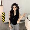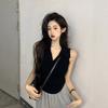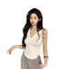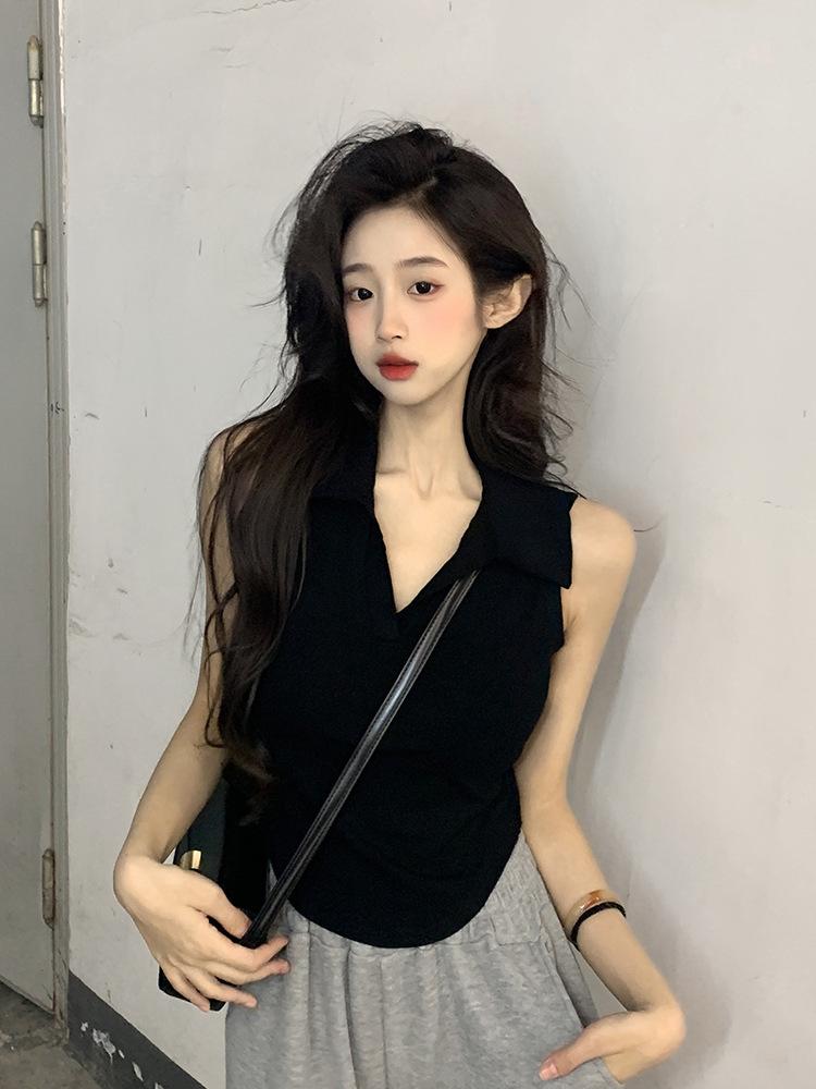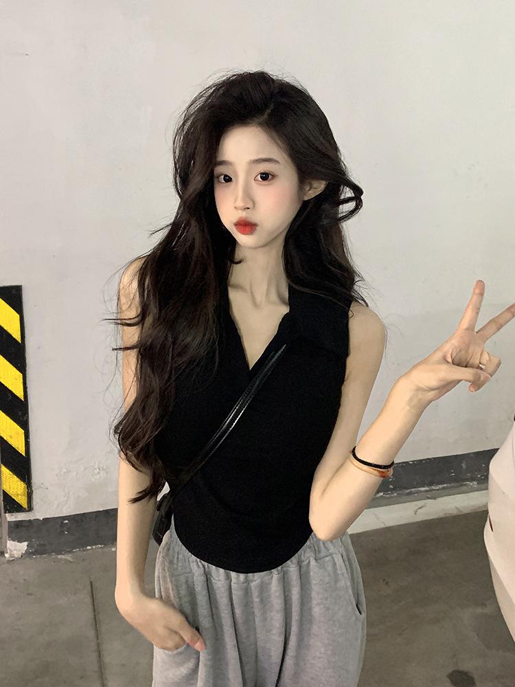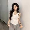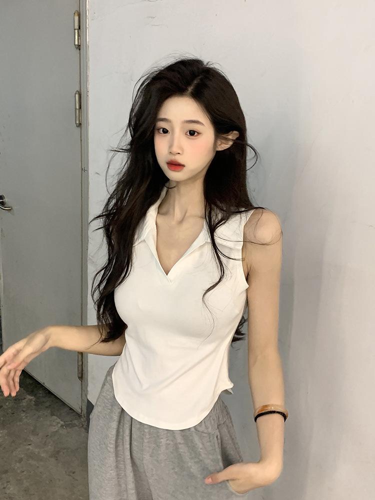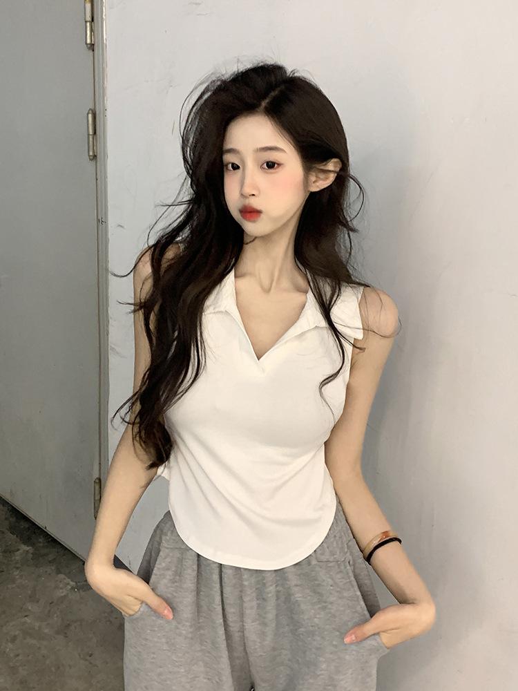 Polo sin mangas con cuello, chaleco corto, camiseta de verano para mujer, diseño nuevo y sexy, top blanco ajustado para llevar debajo