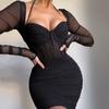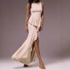 Vestido Sexy Estilo Europeo y Americano, Nueva Moda Sexy Cuello U Sin Mangas Cubre Cintura Ajustado Cubre Caderas Falda con Abertura Trasera