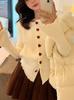 Cárdigan de Punto con Botones de Corazón de Estilo Suave para Mujer Top Estilo Coreano Cuello Redondo Color Puro Suave y Ceroso Chaqueta Suéter Ropa de Mujer