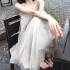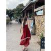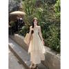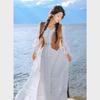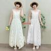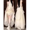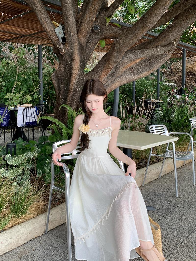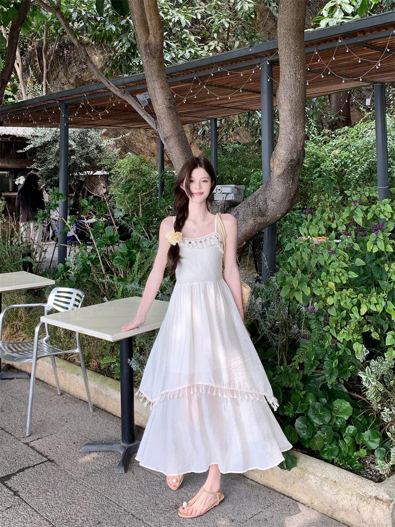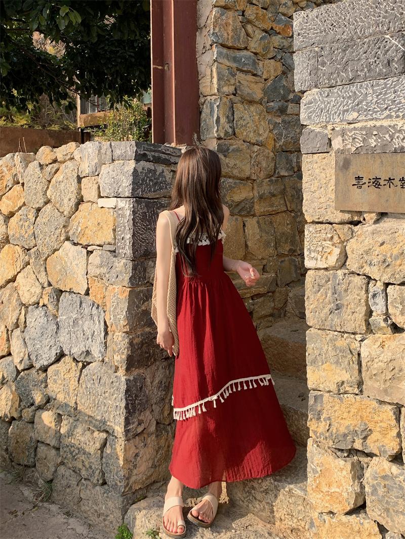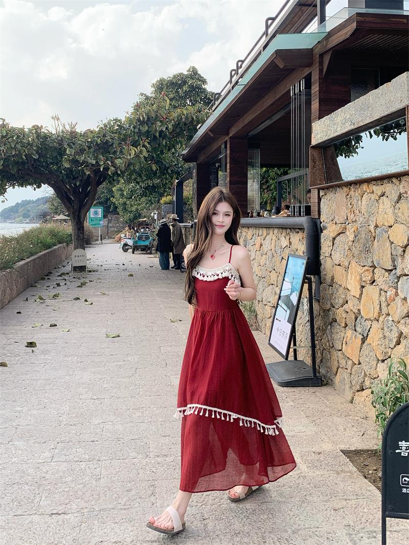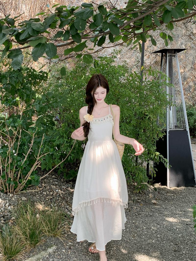 Vestido de Tirantes con Flecos y Empalme Vacaciones en la Playa Verano 2025 Nuevo Diseño Falda Larga Asimétrica