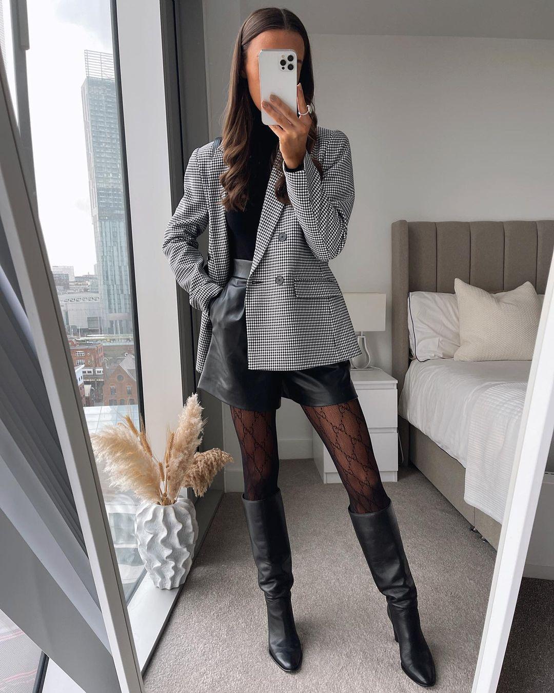 Ropa Europea y Americana Transfronteriza Chaqueta de Traje de Pata de Gallo Bicolor de Moda Popular de Aliexpress