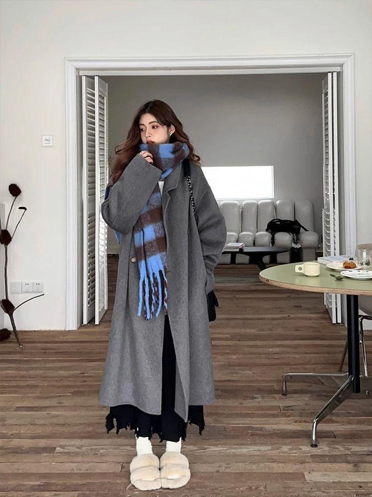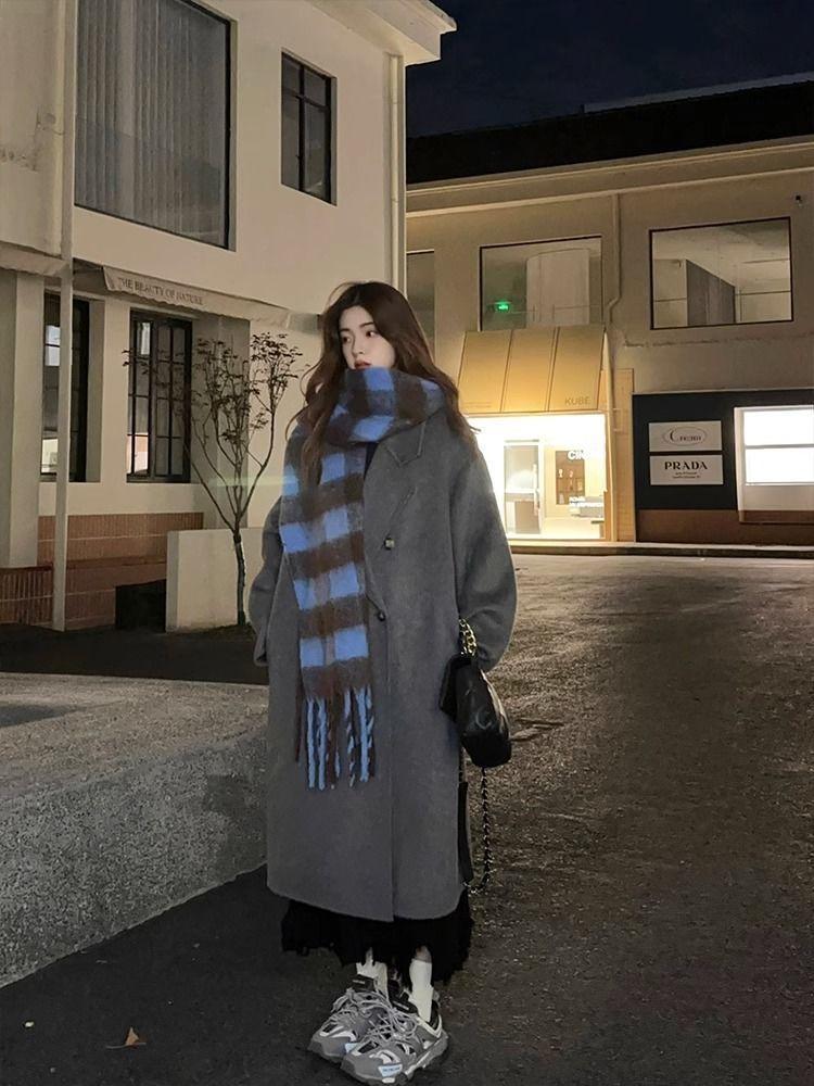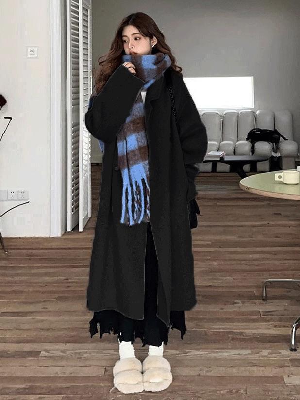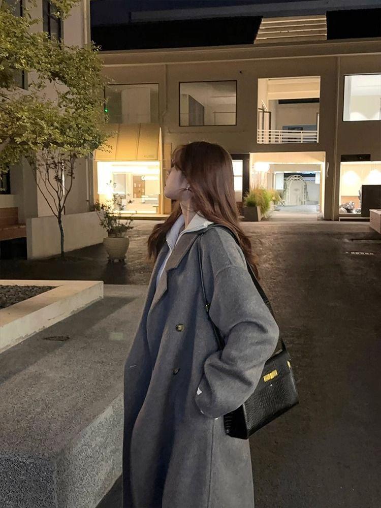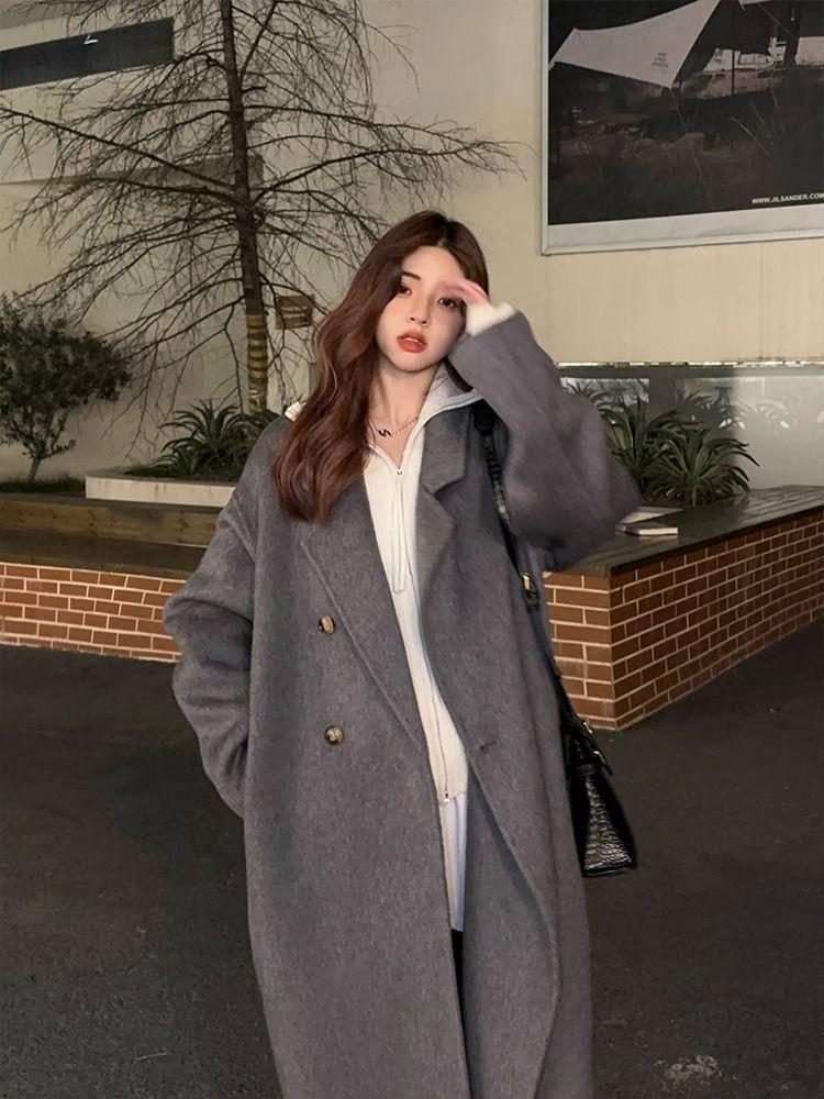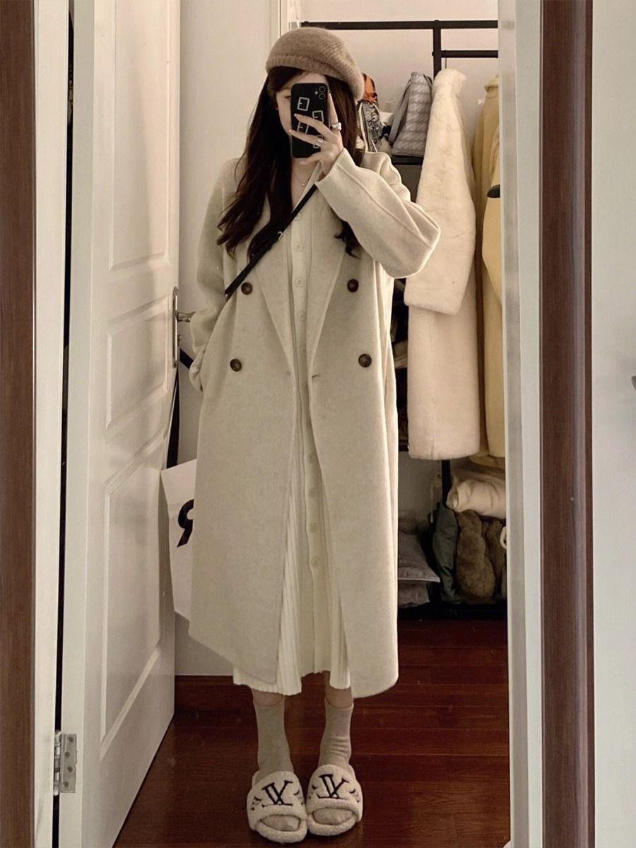 Abrigo de Lana para Mujer 2025 Otoño e Invierno Nuevo Melad Estilo Coreano Petite Estilo Hepburn Chaqueta Gruesa de Lana