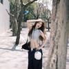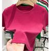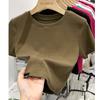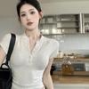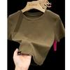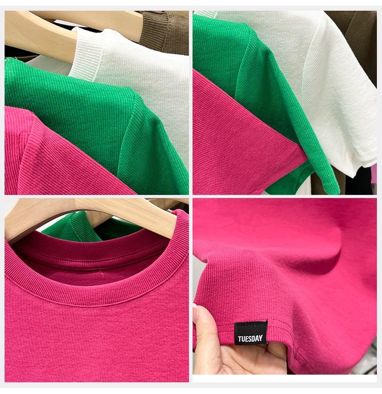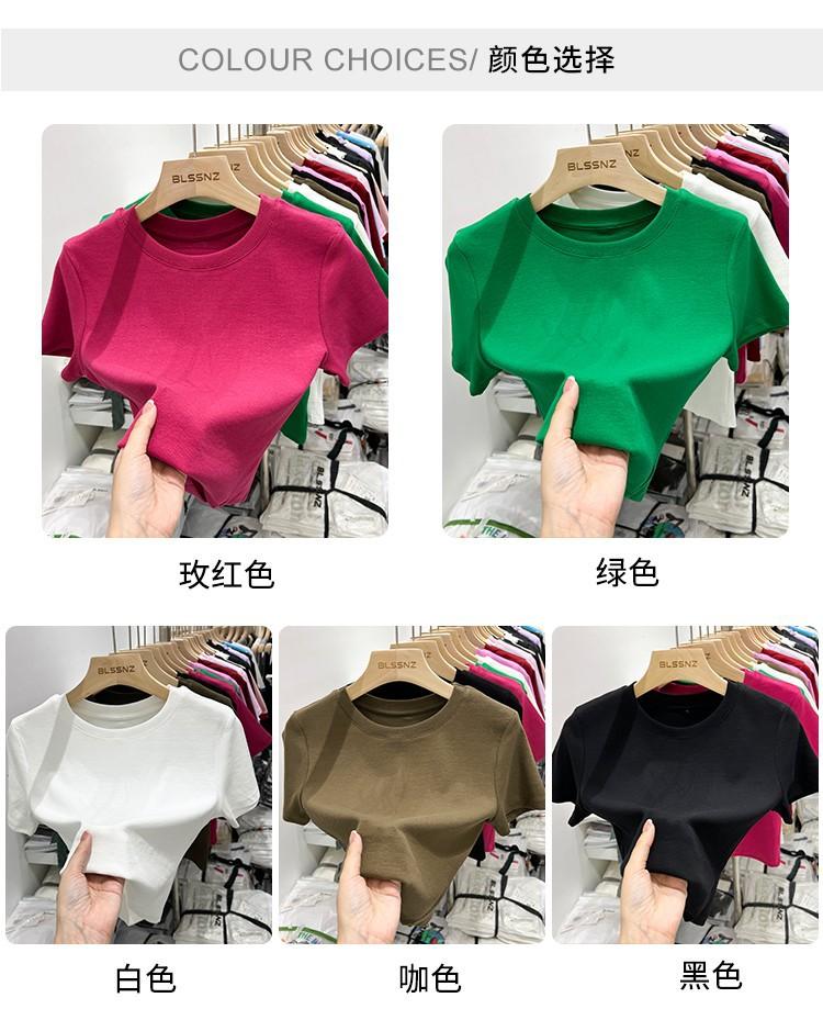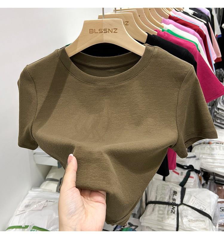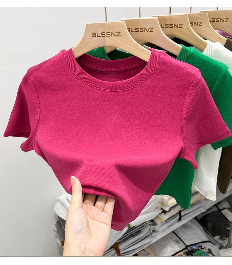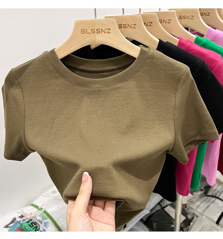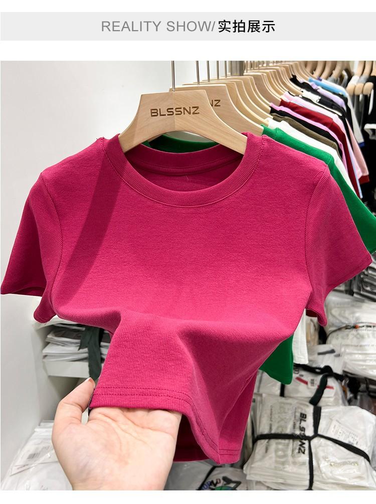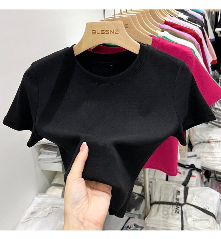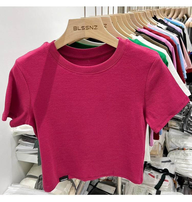 Camiseta Europea de Hombro Derecho Alto-Bajo para Mujer de Manga Corta Verano Aspecto Adelgazante Sexy de Cintura Alta para Usar Debajo Top de Color Puro