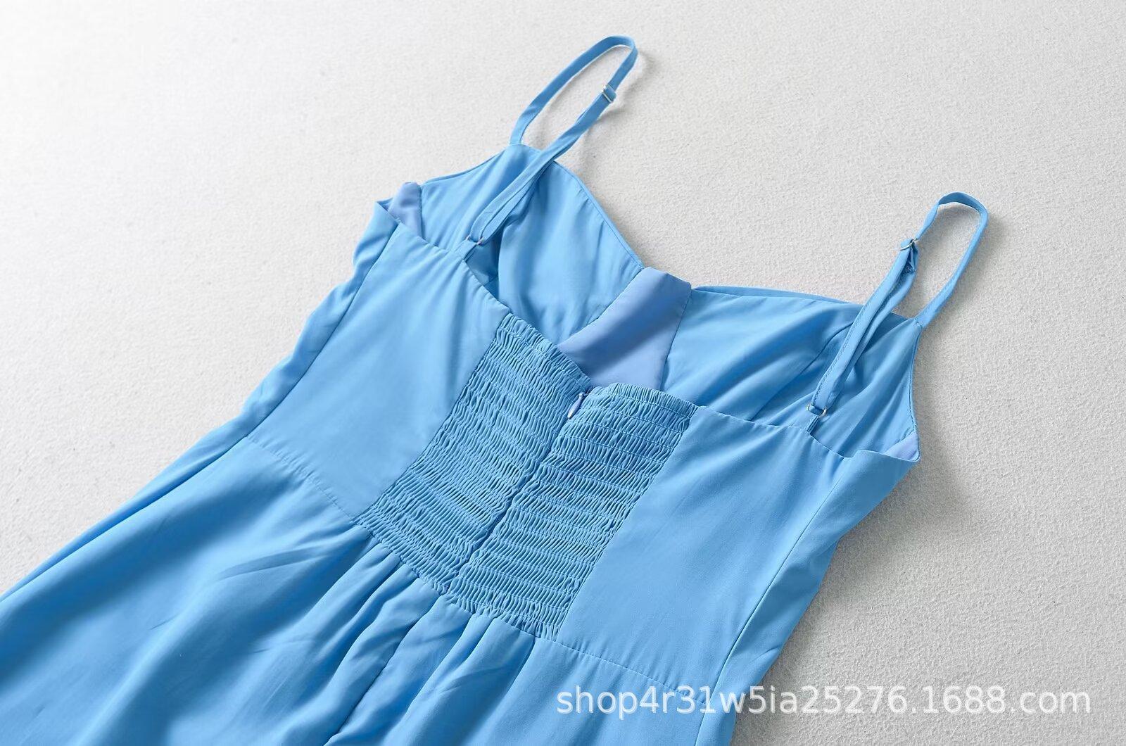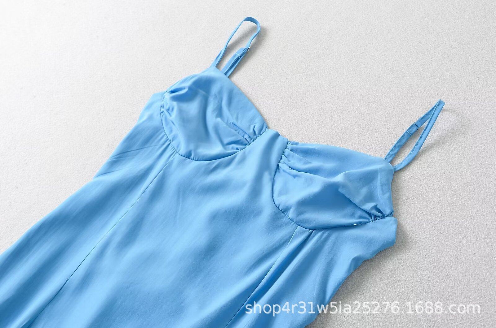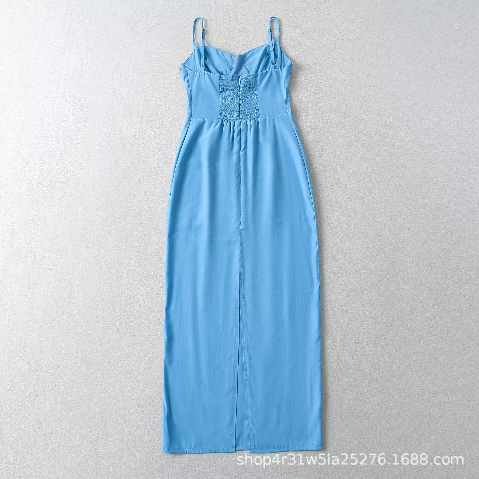Ropa de Verano para Mujer Europea y Americana 2024 Vestido de Tirantes Estilo Corsé con Abertura Trasera de Color Sólido Retro Francés al por Mayor