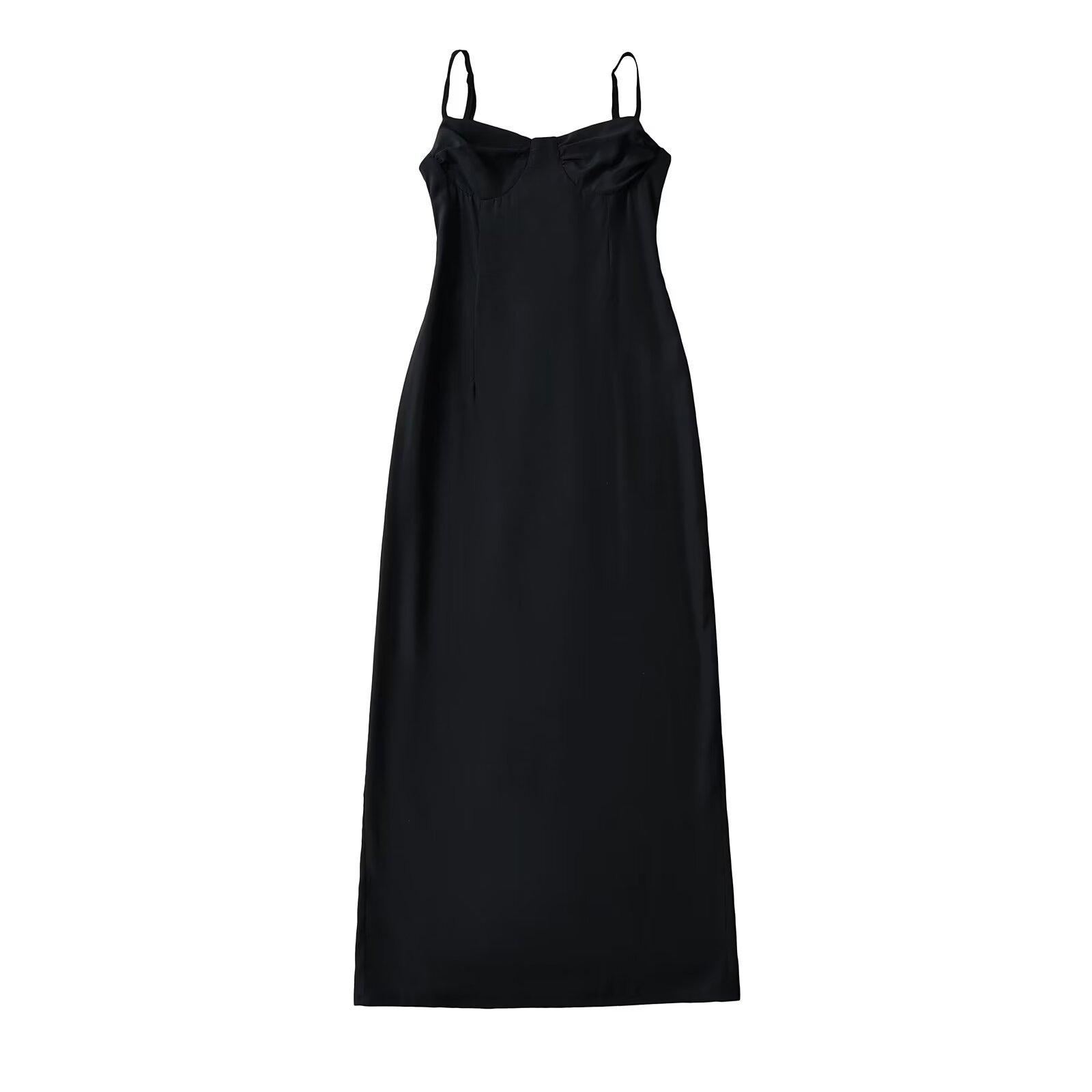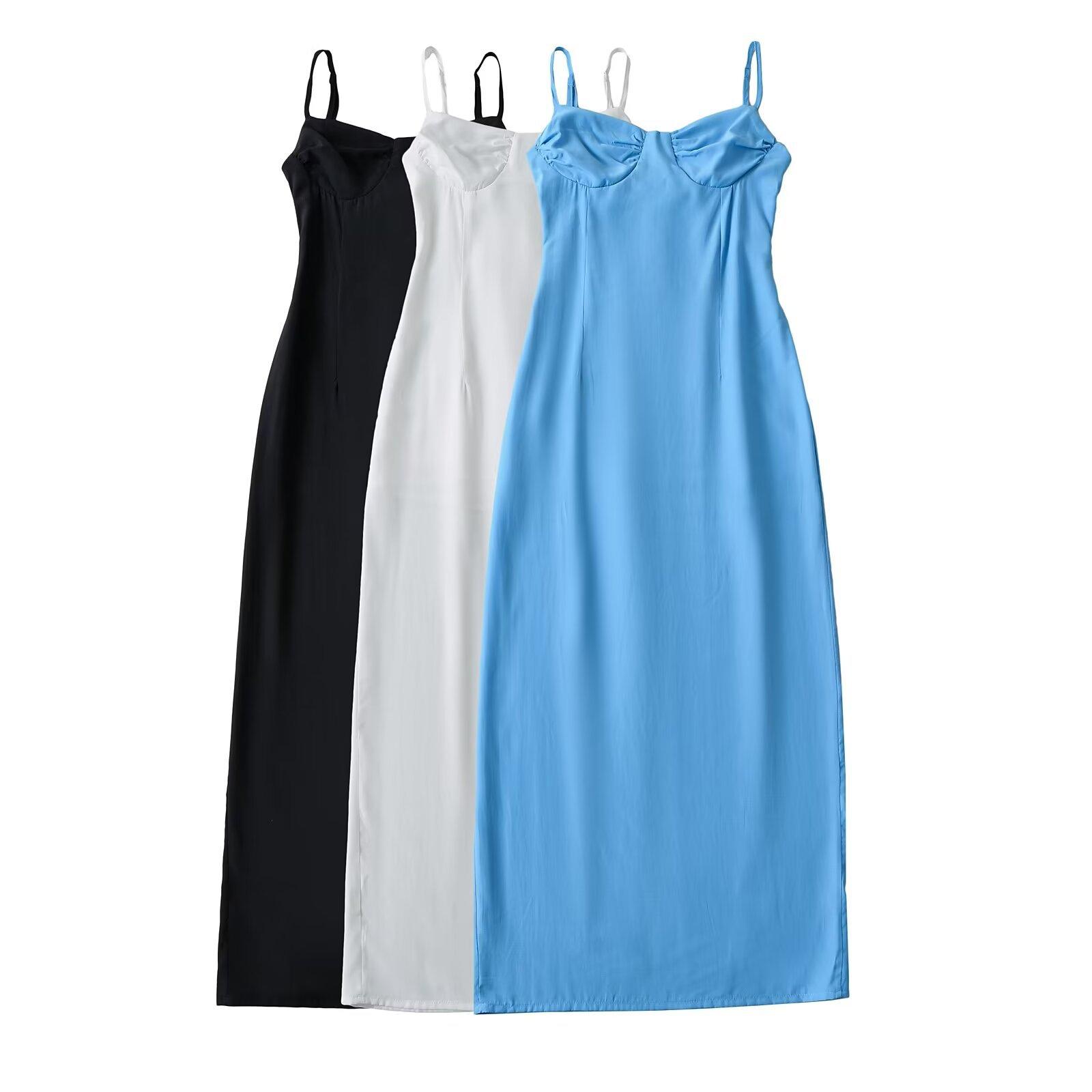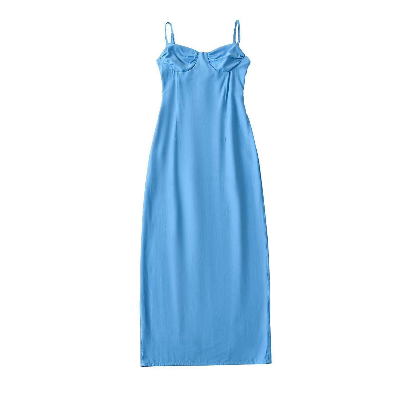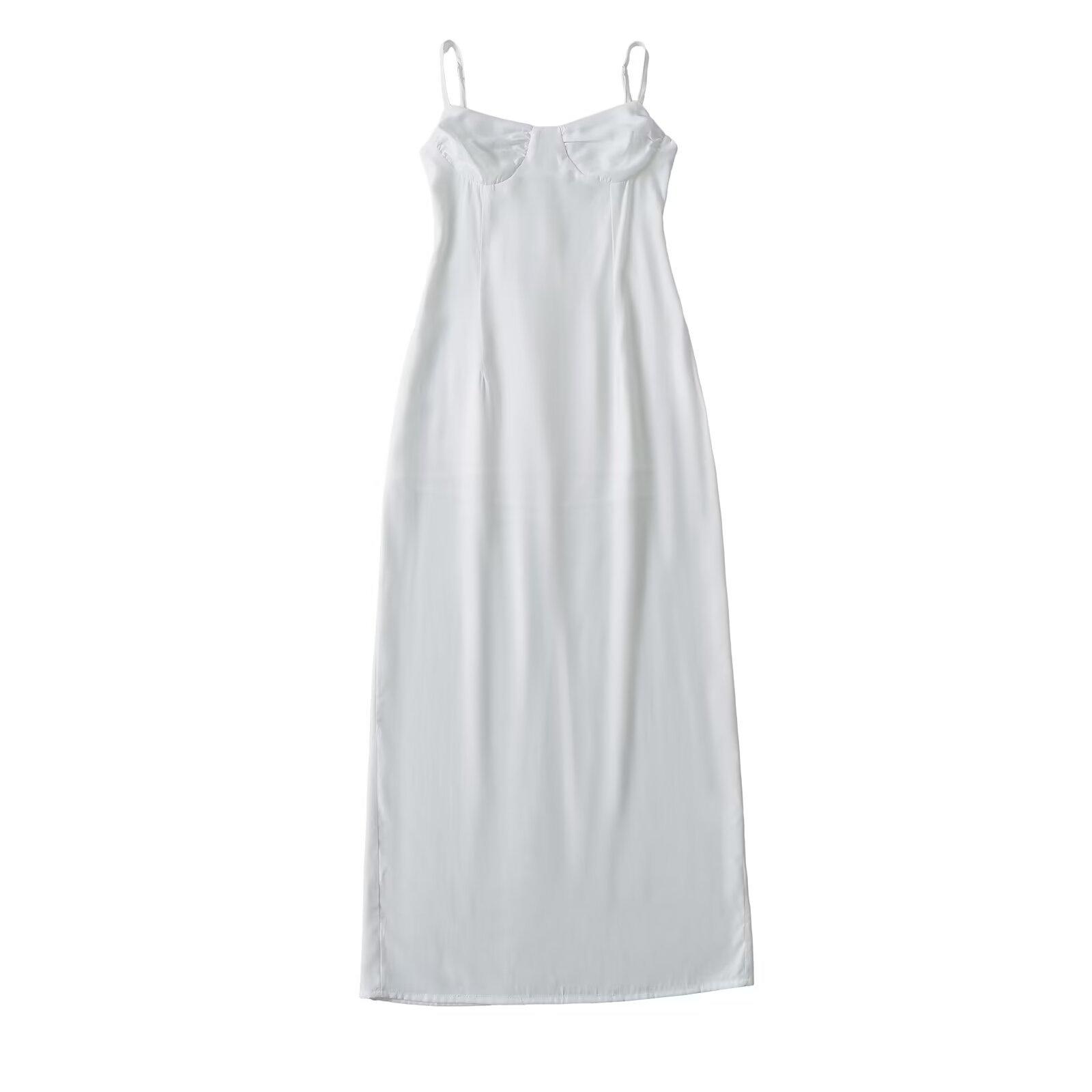 Ropa de Verano para Mujer Europea y Americana 2024 Vestido de Tirantes Estilo Corsé con Abertura Trasera de Color Sólido Retro Francés al por Mayor