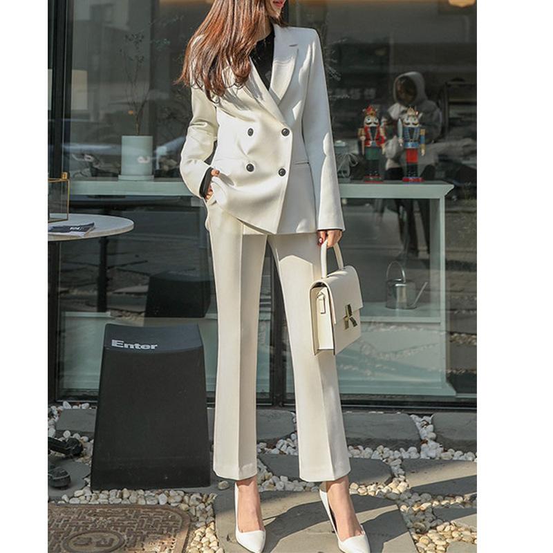 Traje estilo coreano para mujer Primavera y otoño Nuevo temperamento Top de traje blanco Set profesional de dos piezas