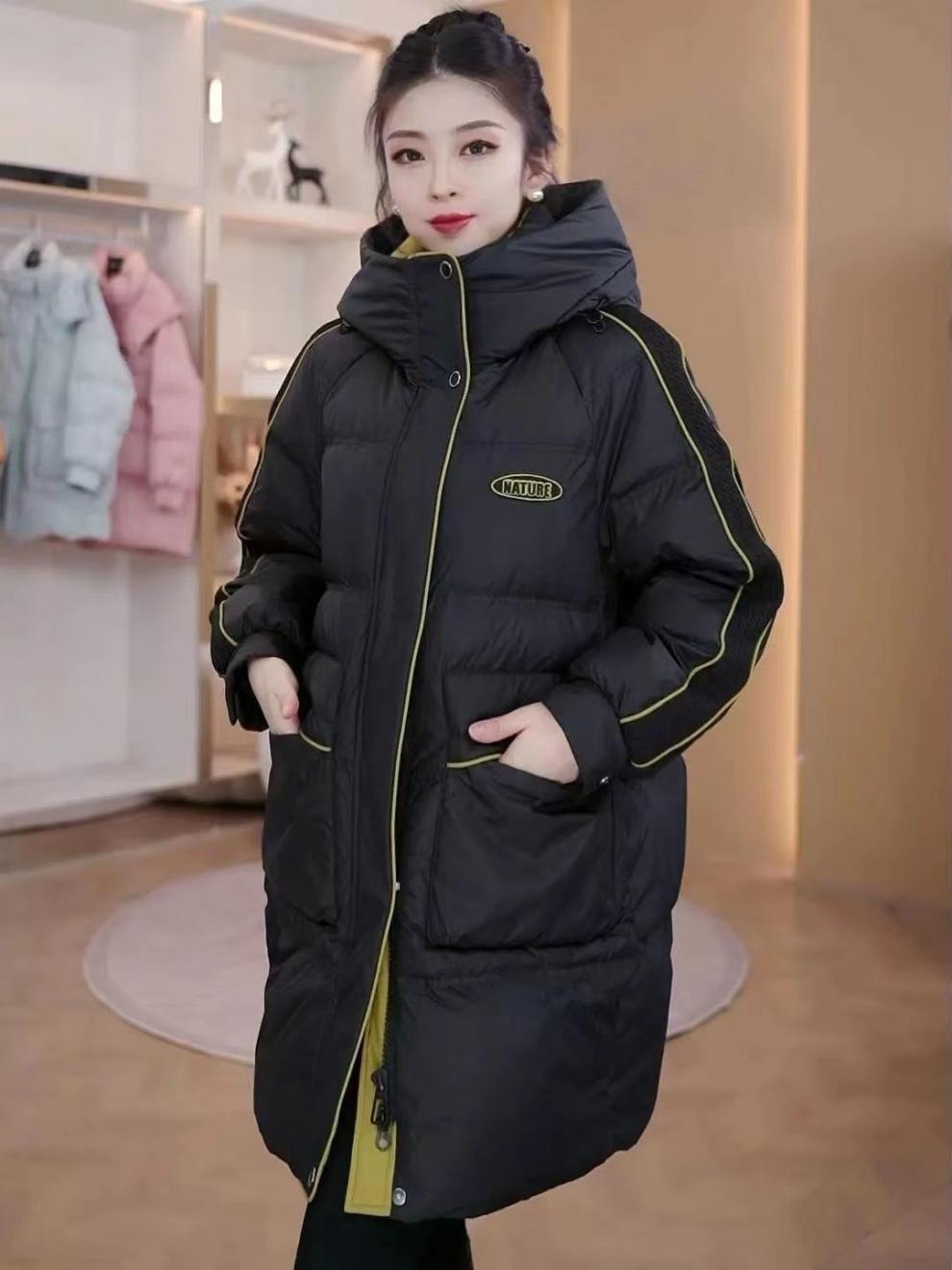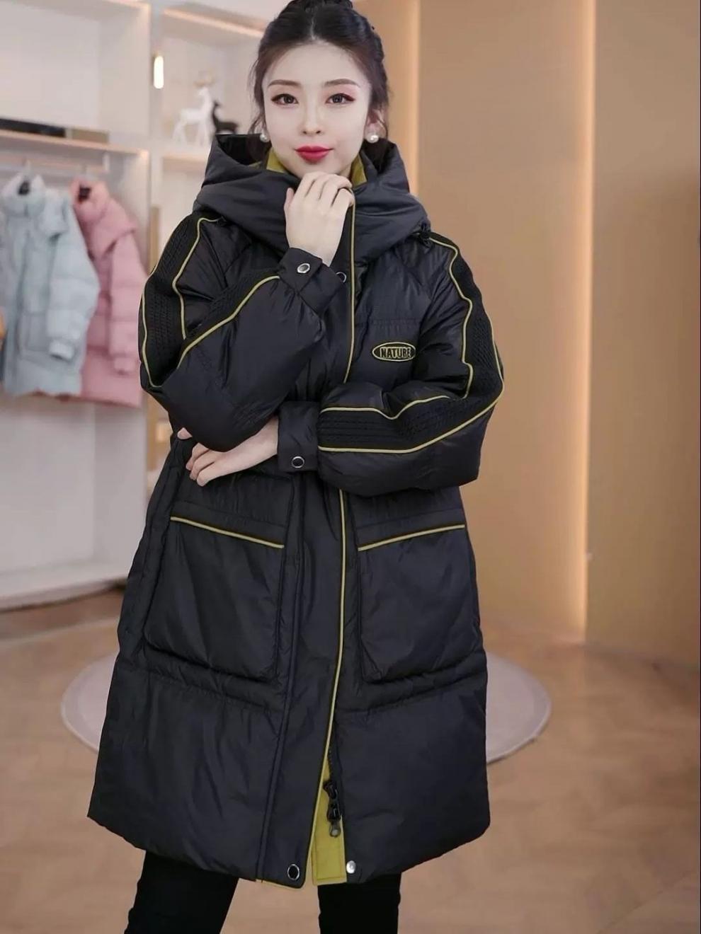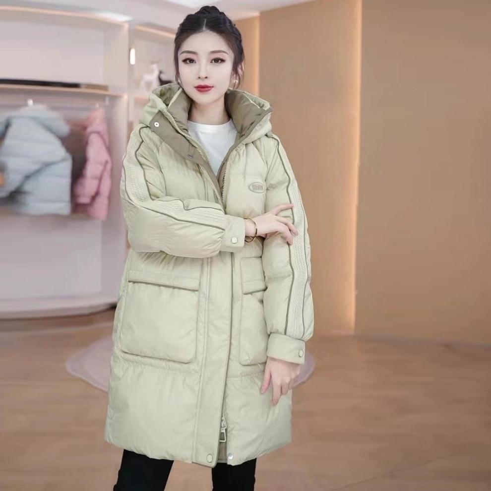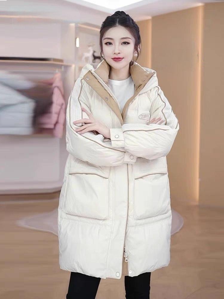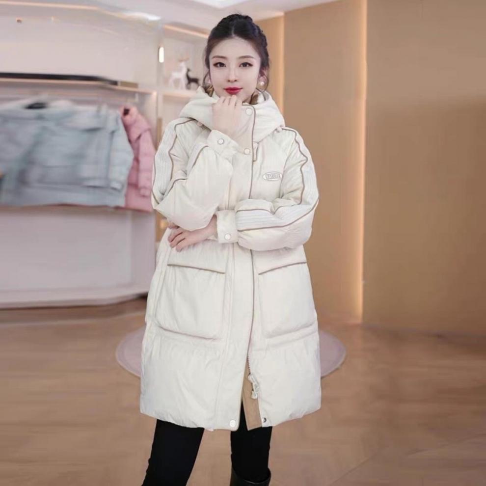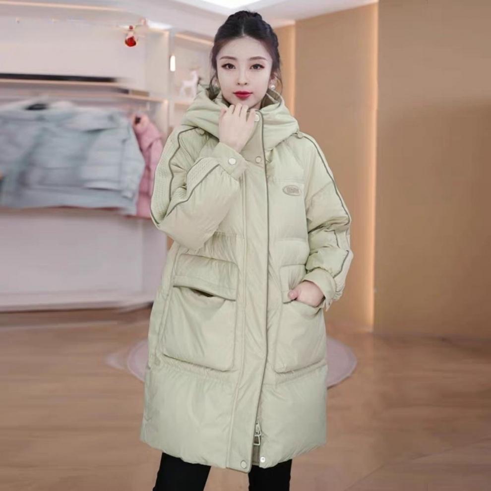 Chaqueta de plumón de longitud media para mujer, gruesa y holgada, nuevo abrigo de algodón popular de alta gama para invierno 2024, elegante chaqueta acolchada de algodón