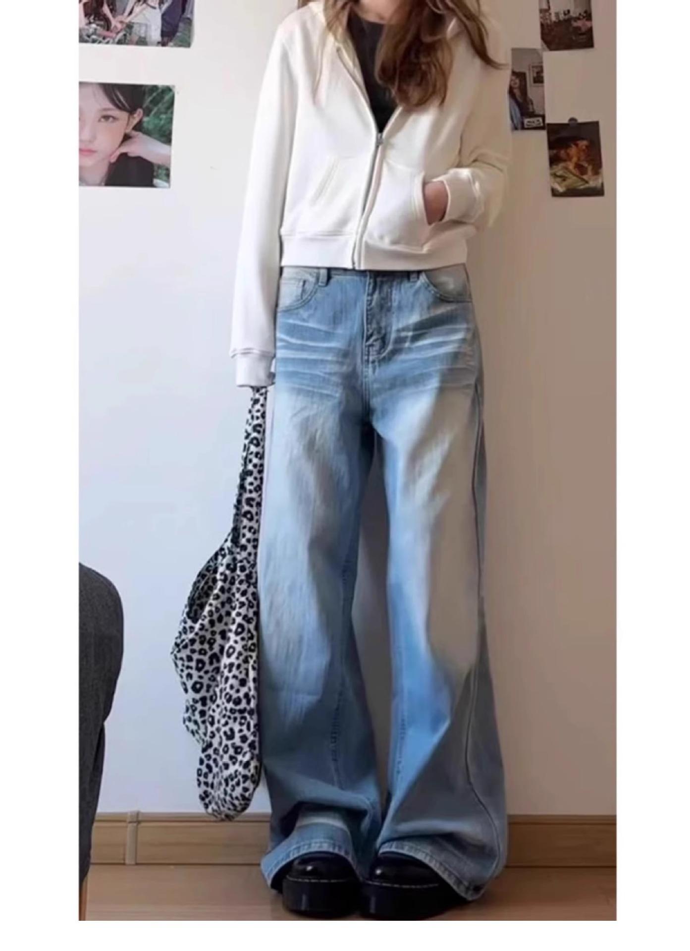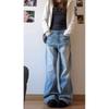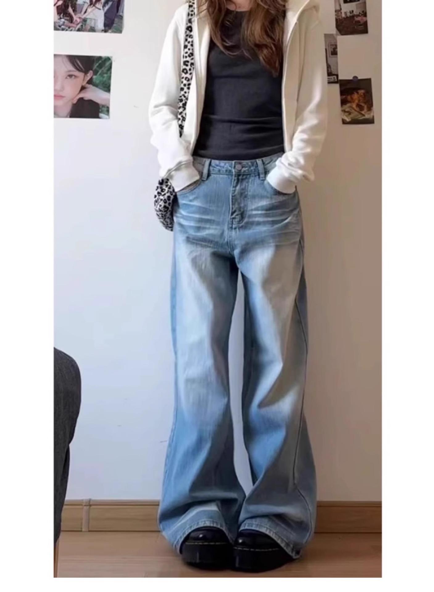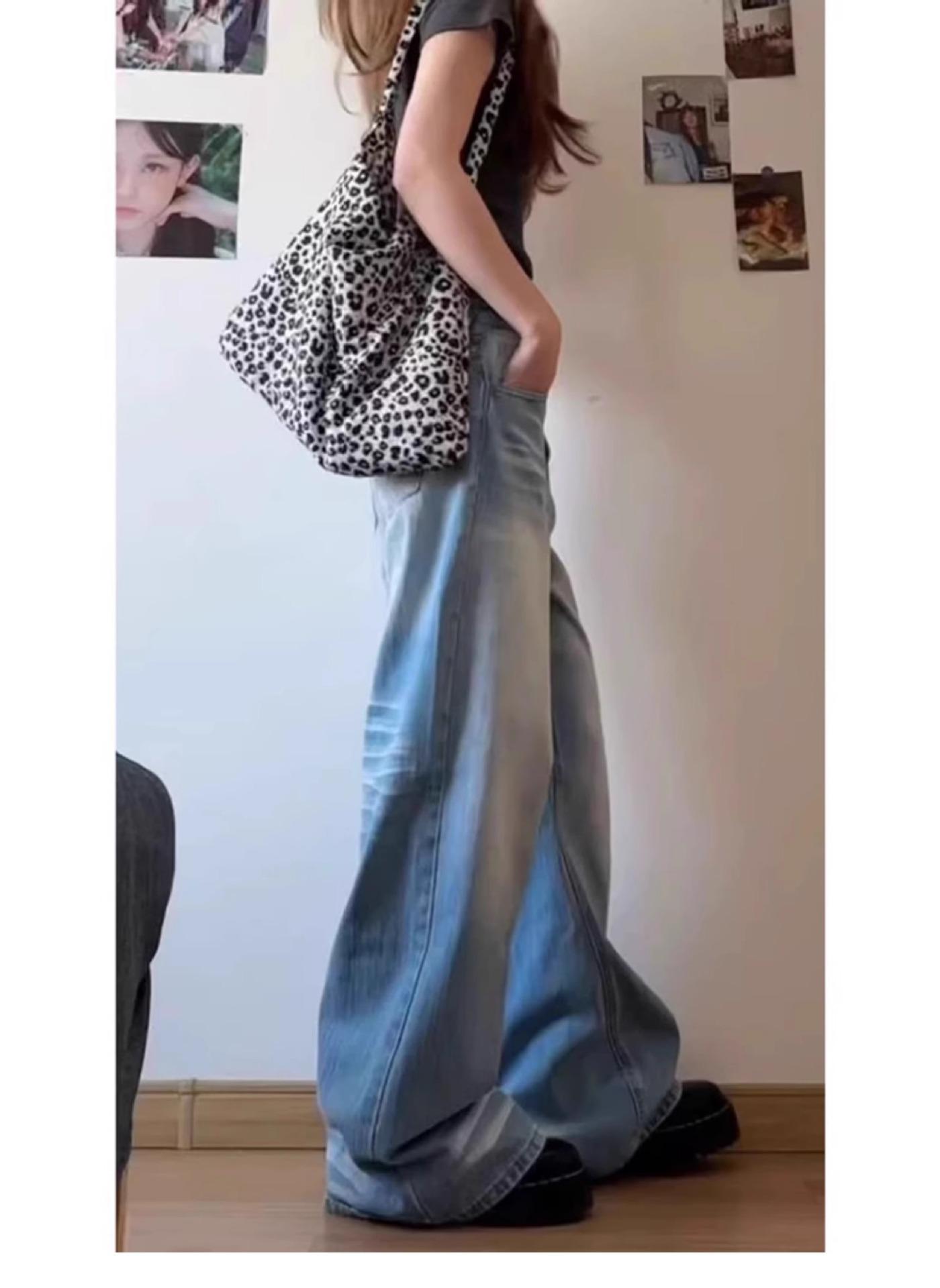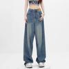 Jeans rectos americanos de talla grande para mujer en verano, cuerpo con forma de pera mm gordo, look holgado adelgazante, pantalones de pierna ancha de talle alto hasta el suelo