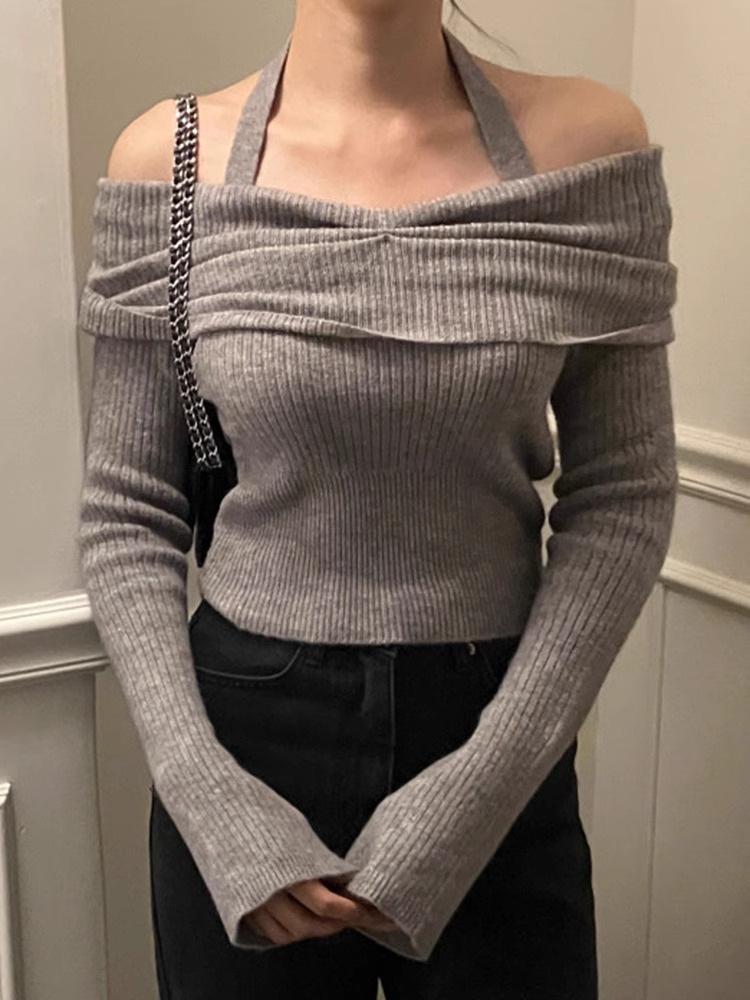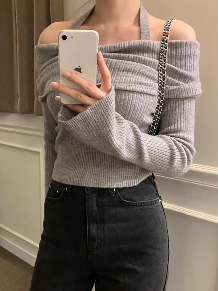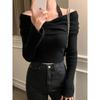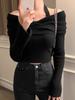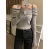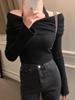 Otoño Estilo Deseo Puro Colgante Cuello Hombro Descubierto Manga Larga Camiseta Nuevo Estilo Spice Girls Ajustado Adelgazante Hombro Descubierto Top Nicho Ins Mujeres