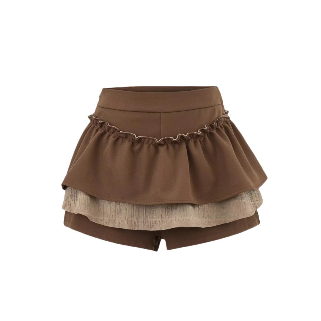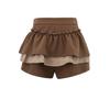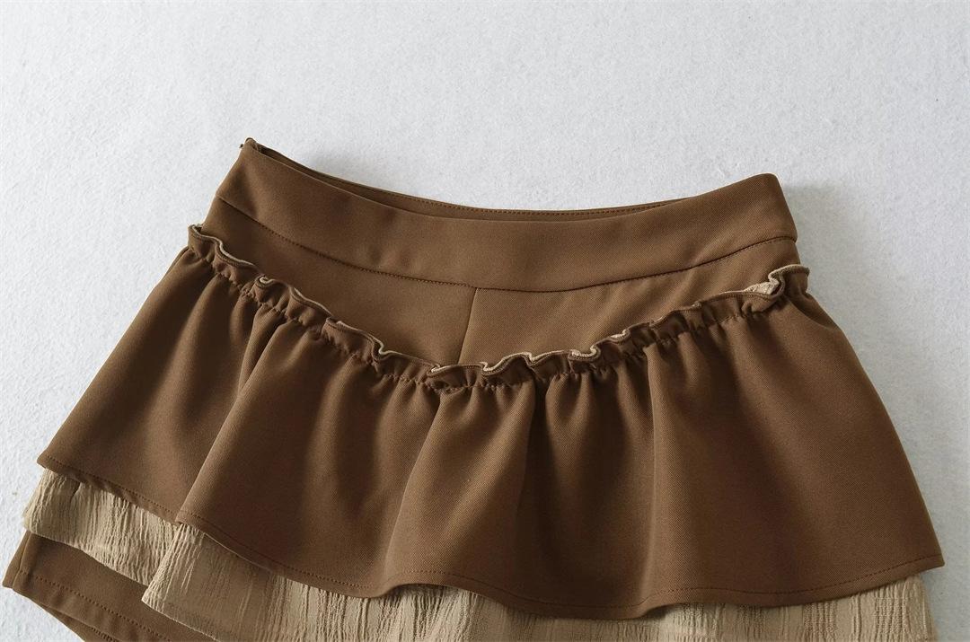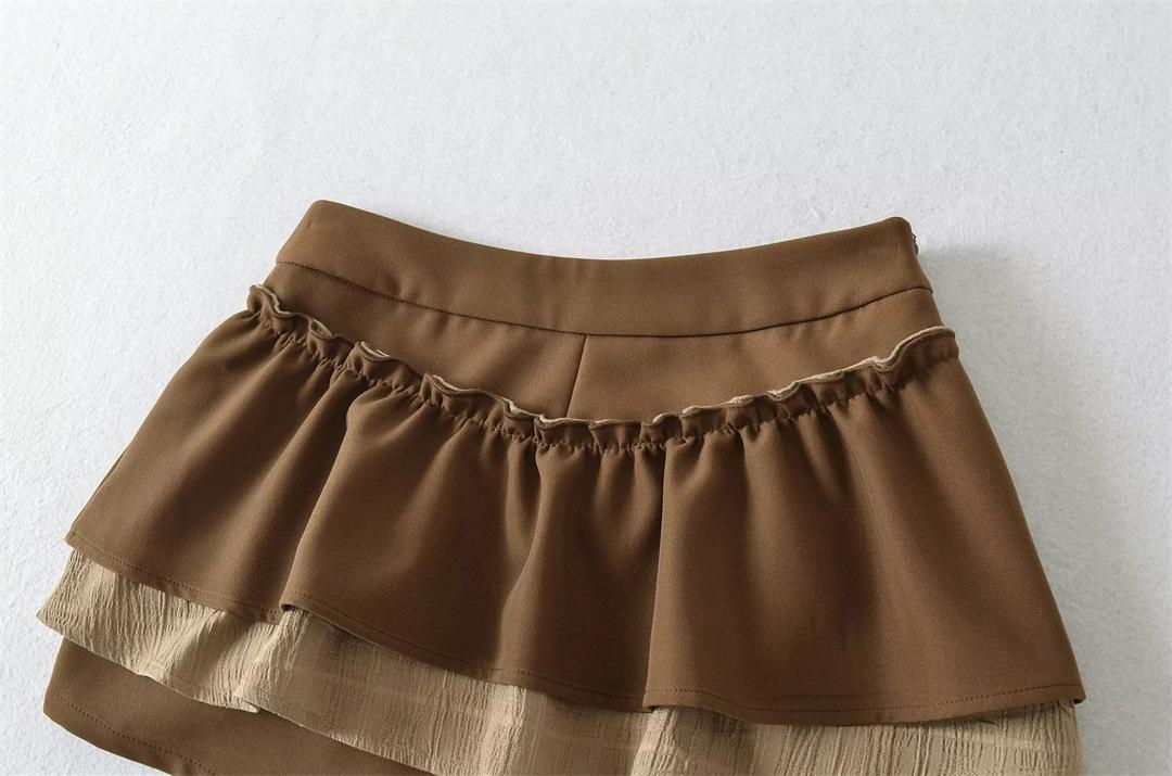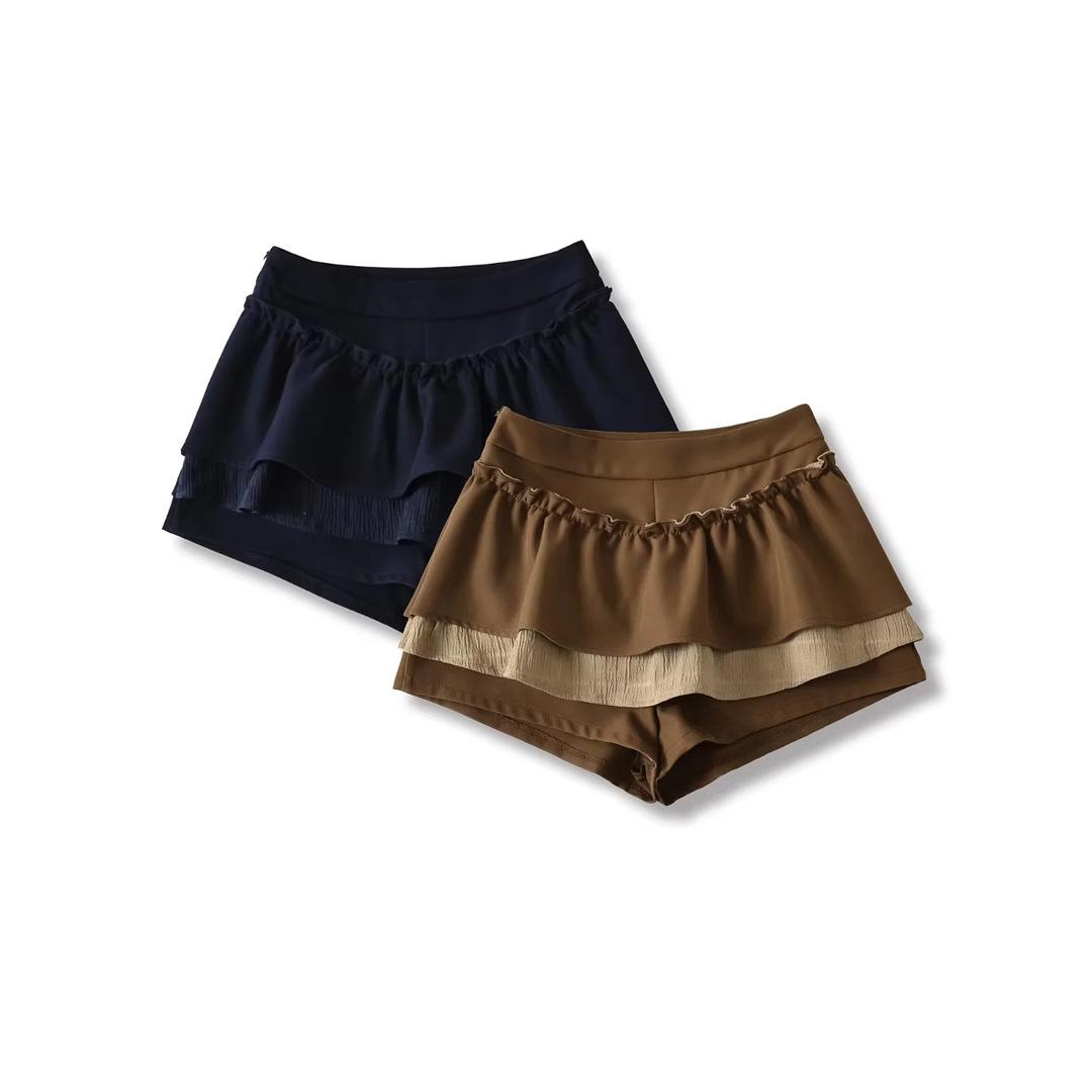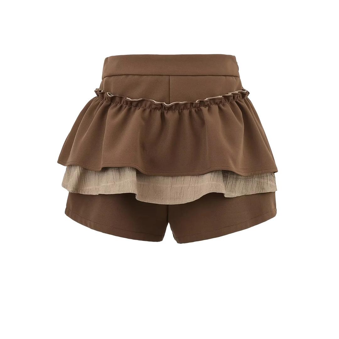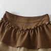 Dulce Falda de Tres Capas Retro Cintura Alta Volante Plisada Abullonada Falda Corta Mujer Anti-Exposición Empalmada Bloque de Color Media Falda