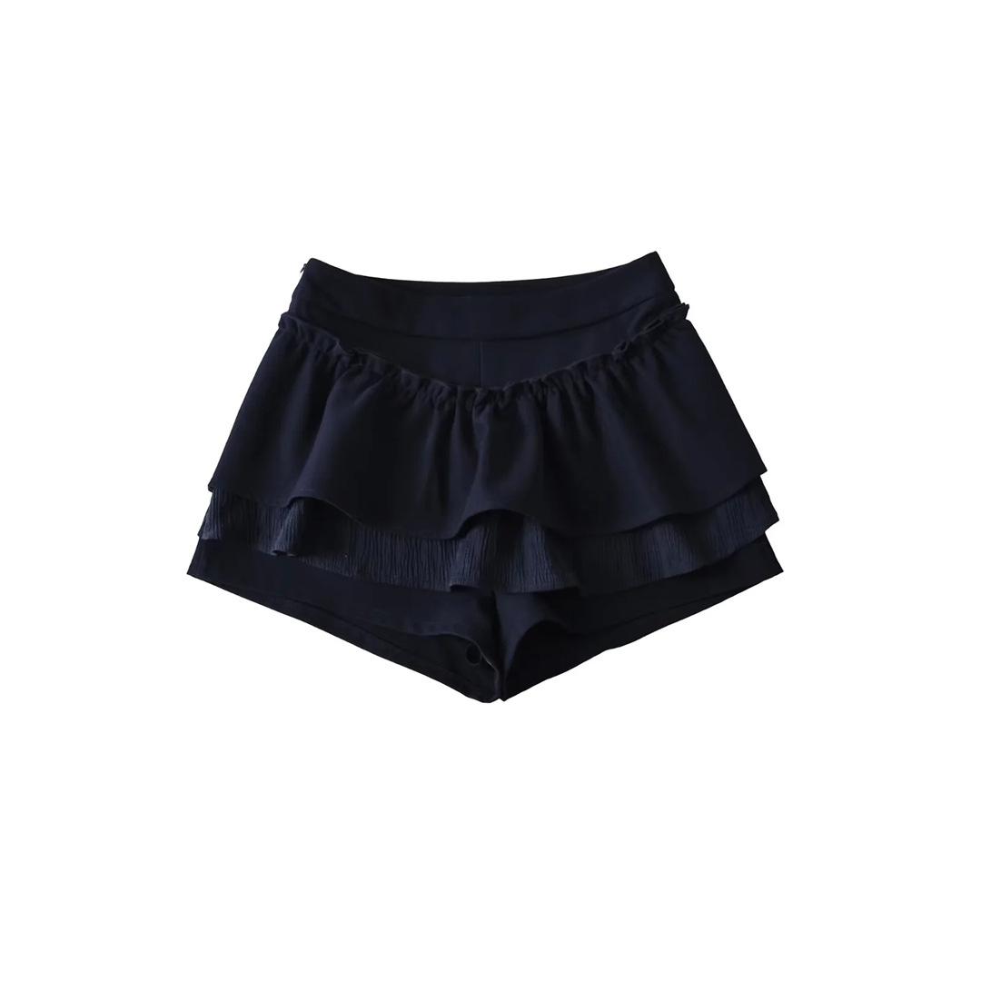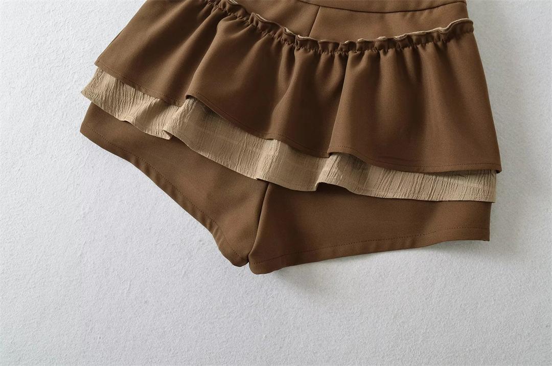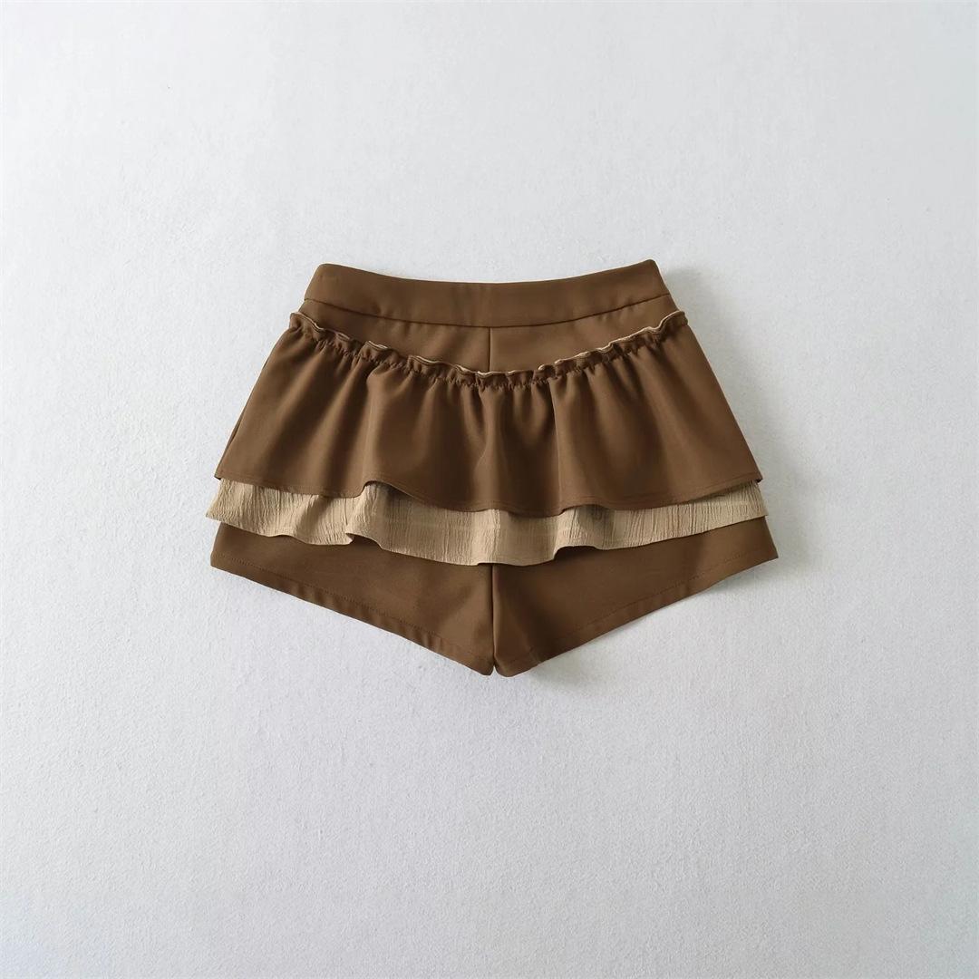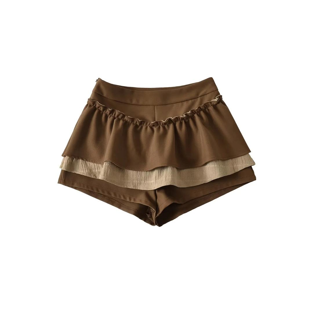 Dulce Falda de Tres Capas Retro Cintura Alta Volante Plisada Abullonada Falda Corta Mujer Anti-Exposición Empalmada Bloque de Color Media Falda